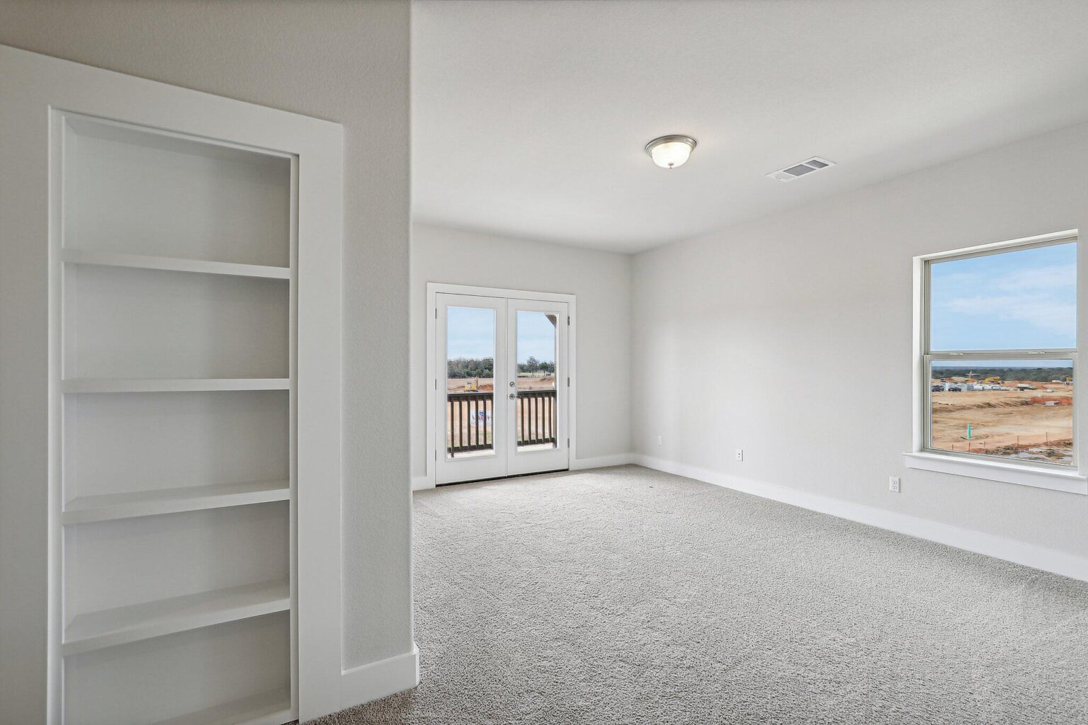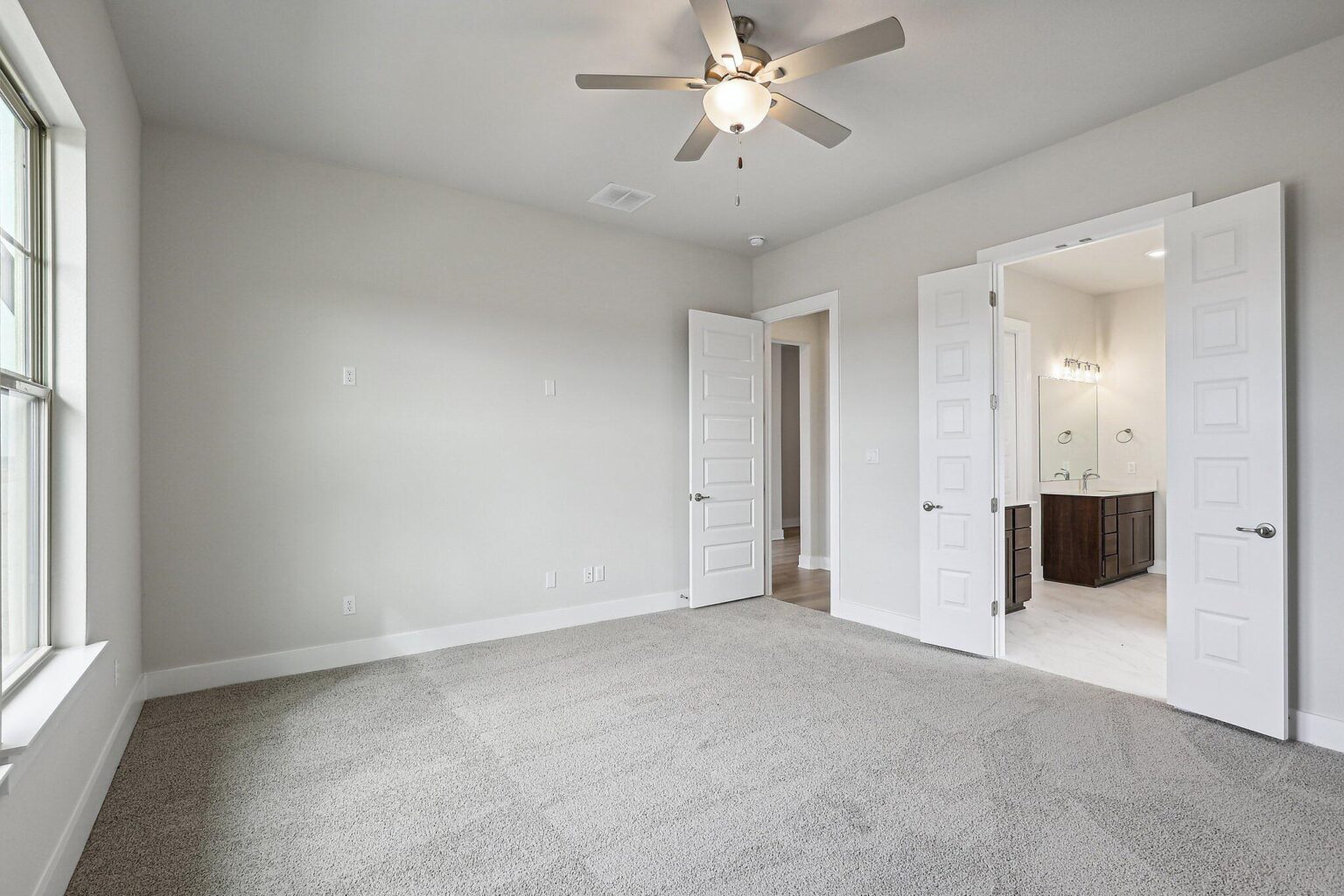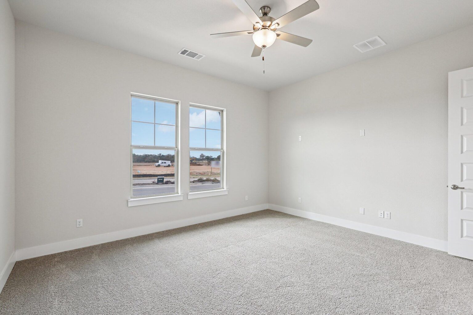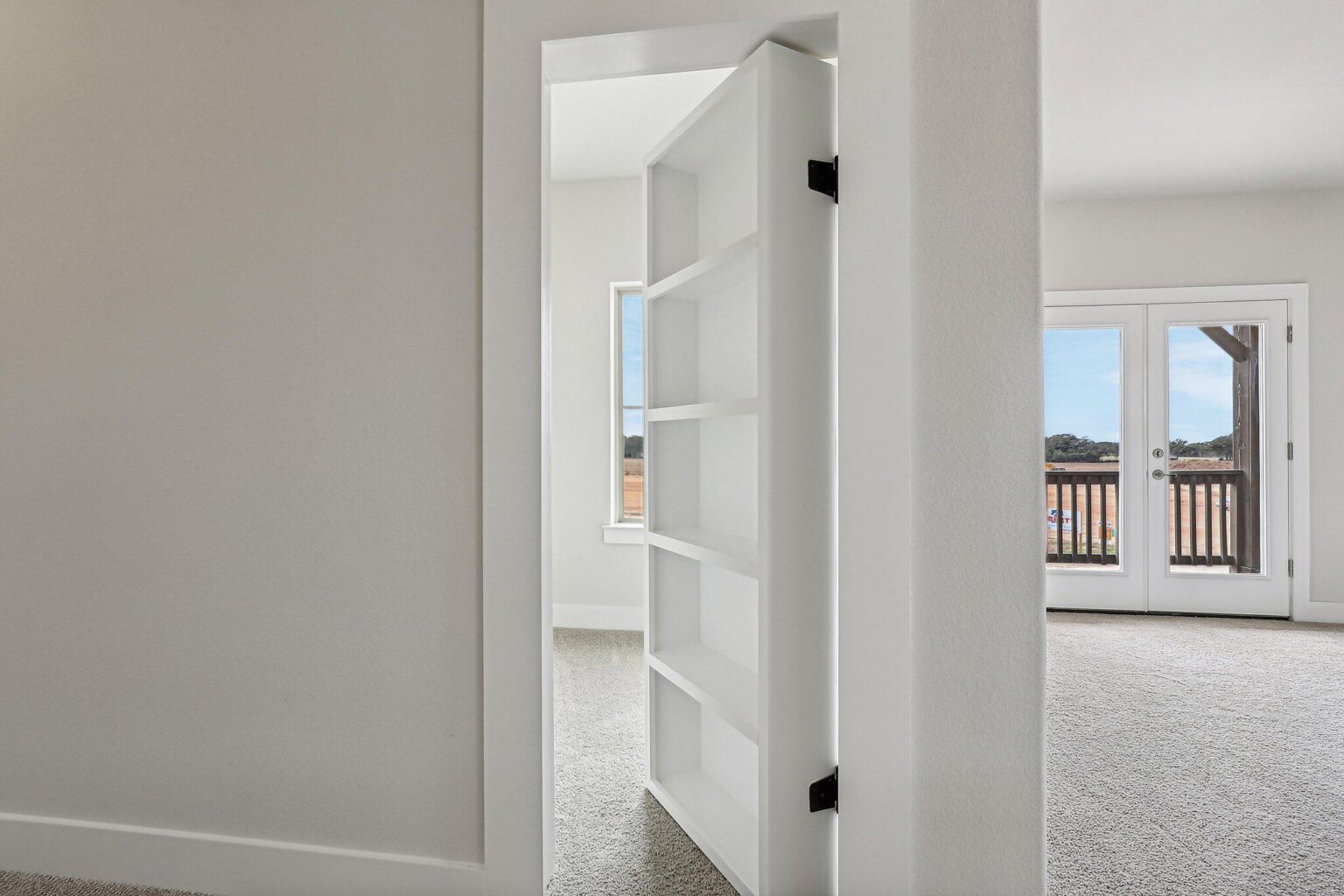 Introducing the Pecos floor plan, crafted with the modern homebuyer in mind. As you enter, you’re welcomed by a study, perfect for a home office or library. The entryway flows seamlessly into the open-concept kitchen, dining, and family room, with 10-foot ceilings and 8-foot doors enhancing the spacious feel. Huge windows flood the space with natural light, while included blinds provide privacy. The kitchen boasts built-in appliances, sleek finishes, and a refrigerator, making it both functional and stylish. The main floor also includes a primary bedroom, featuring a luxurious ensuite and a walk-in closet. For added convenience, a pre-plumb for a water softener is included. Ascend to the second floor to find a charming loft area and two additional bedrooms, each equipped with their own walk-in closets. A secret room behind a bookcase offers a hidden gem in this unique home, while a gas drop to the patio adds future-ready functionality. The Pecos is designed for comfort, style, and versatility, making it the perfect place to call home.