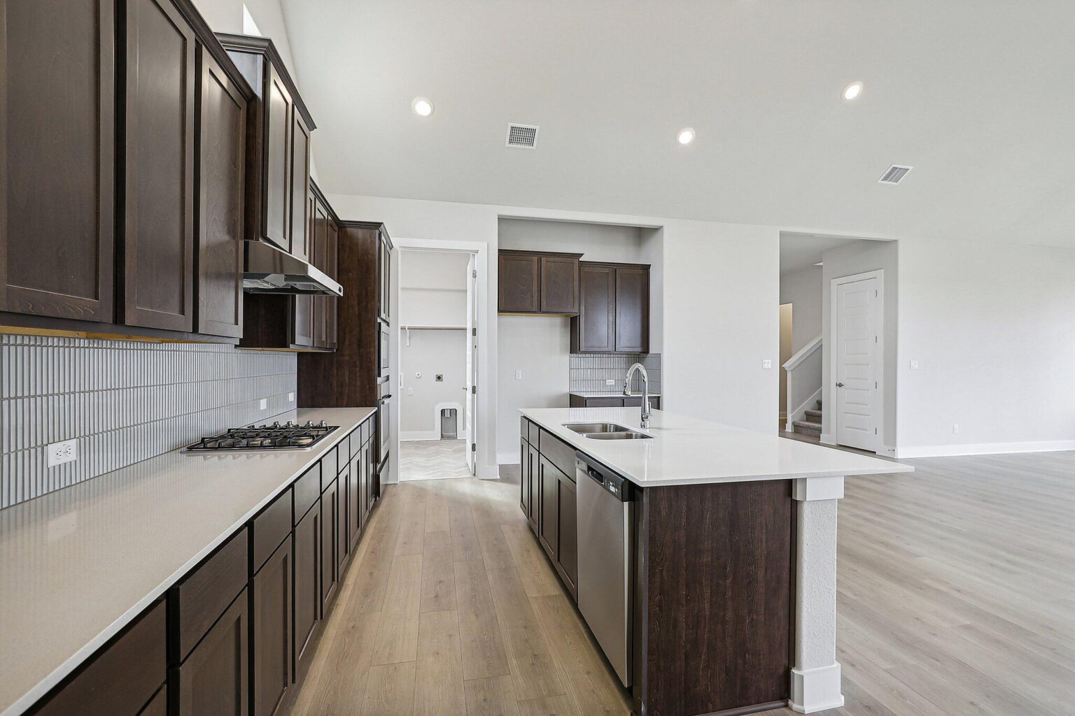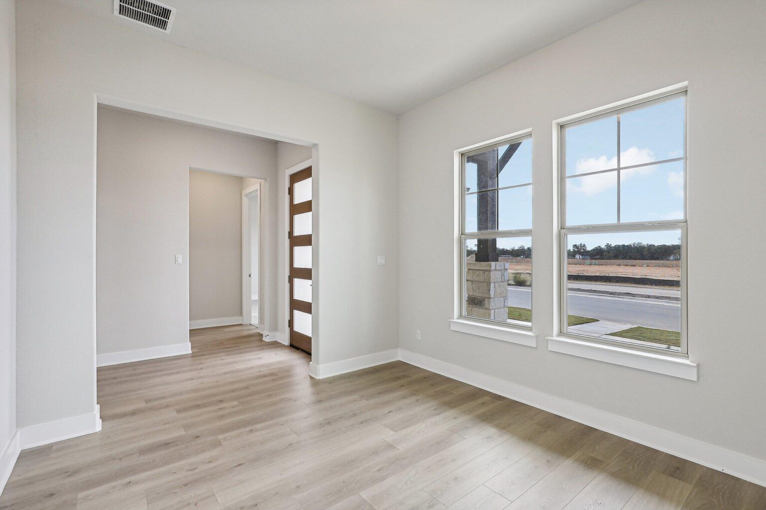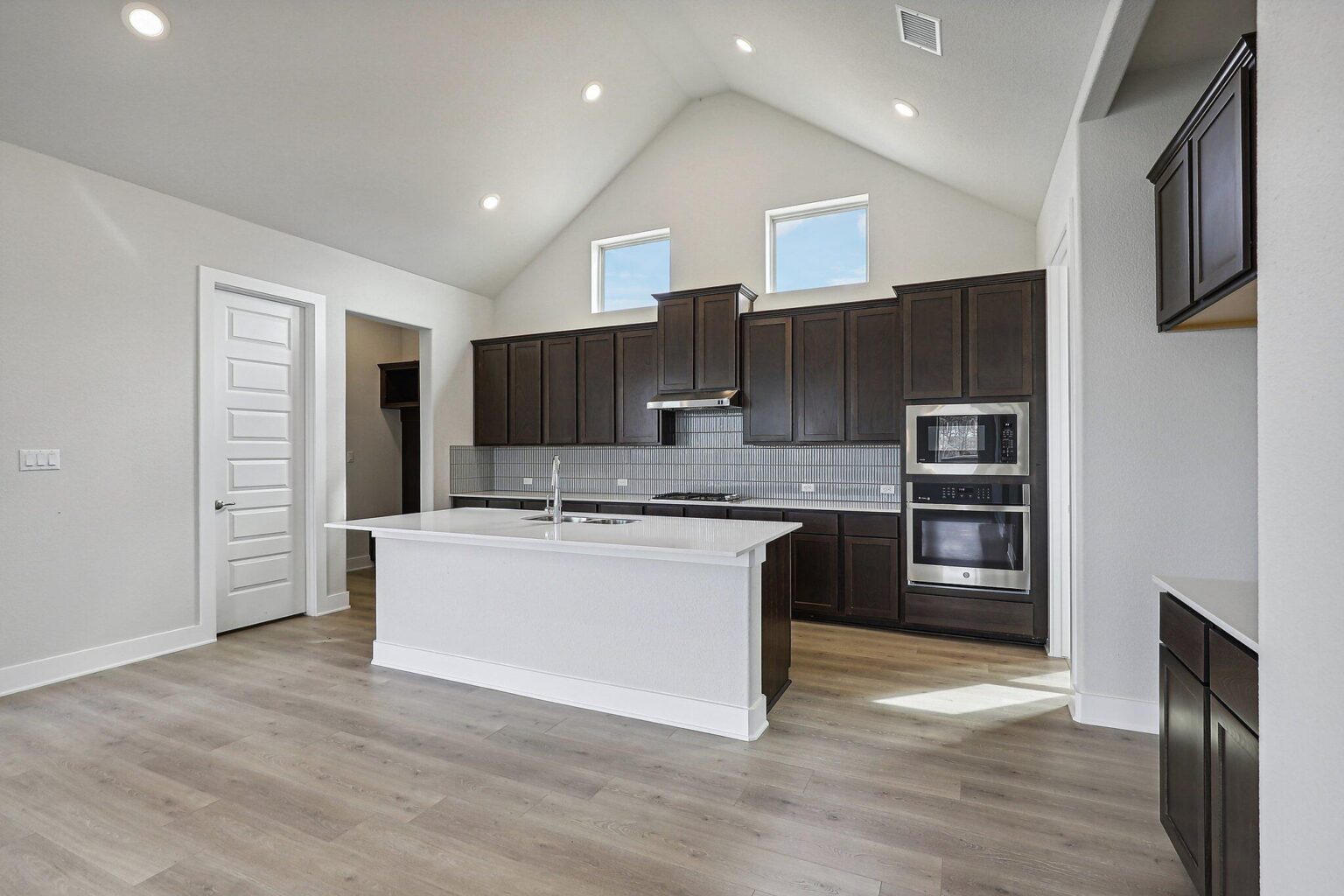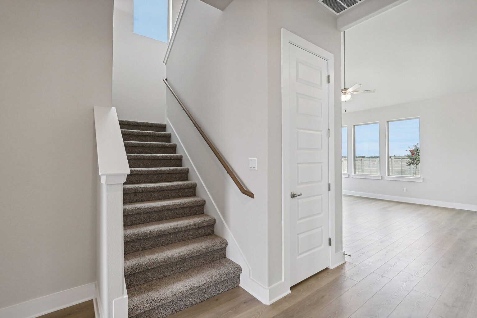 Introducing the Pecos floor plan, crafted with the modern homebuyer in mind. As you enter, you’re welcomed by a study, perfect for a home office or library. The entryway flows seamlessly into the open-concept kitchen, dining, and family room, with 10-foot ceilings and 8-foot doors enhancing the spacious feel. Huge windows flood the space with natural light, while included blinds provide privacy. The kitchen boasts built-in appliances, sleek finishes, and a refrigerator, making it both functional and stylish. The main floor also includes a primary bedroom, featuring a luxurious ensuite and a walk-in closet. For added convenience, a pre-plumb for a water softener is included. Ascend to the second floor to find a charming loft area and two additional bedrooms, each equipped with their own walk-in closets. A secret room behind a bookcase offers a hidden gem in this unique home, while a gas drop to the patio adds future-ready functionality. The Pecos is designed for comfort, style, and versatility, making it the perfect place to call home.