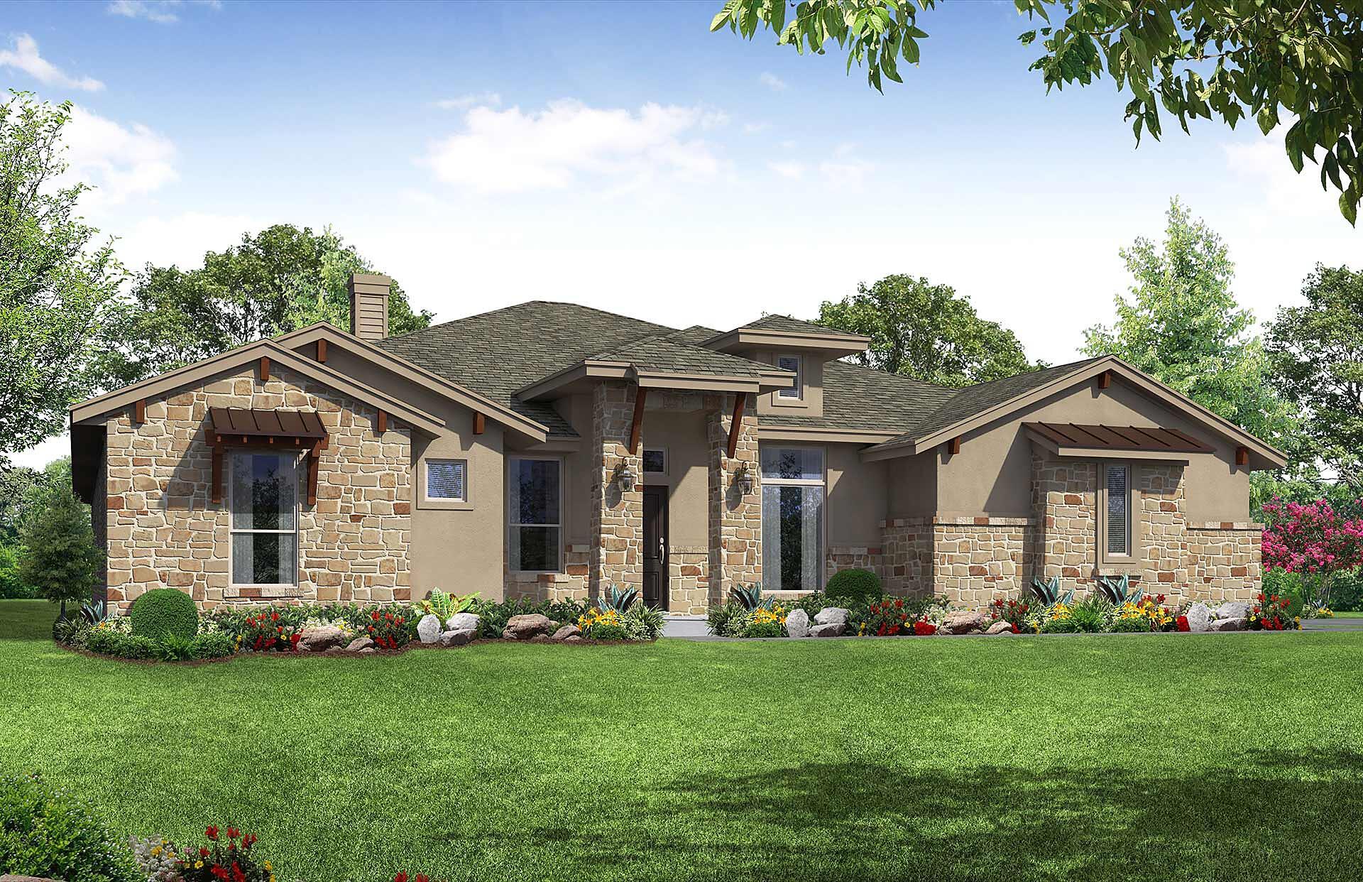 The Braunig plan is a functional floor plan that makes full use of its 4 bedrooms, featuring a private primary bedroom that promises relaxation and tranquility in the hustle and bustle of family life. Created with family in mind, this plan offers enough space for everyone to enjoy. As the heart of the home, the kitchen opens up to the breakfast and family room, with a covered patio just steps away.