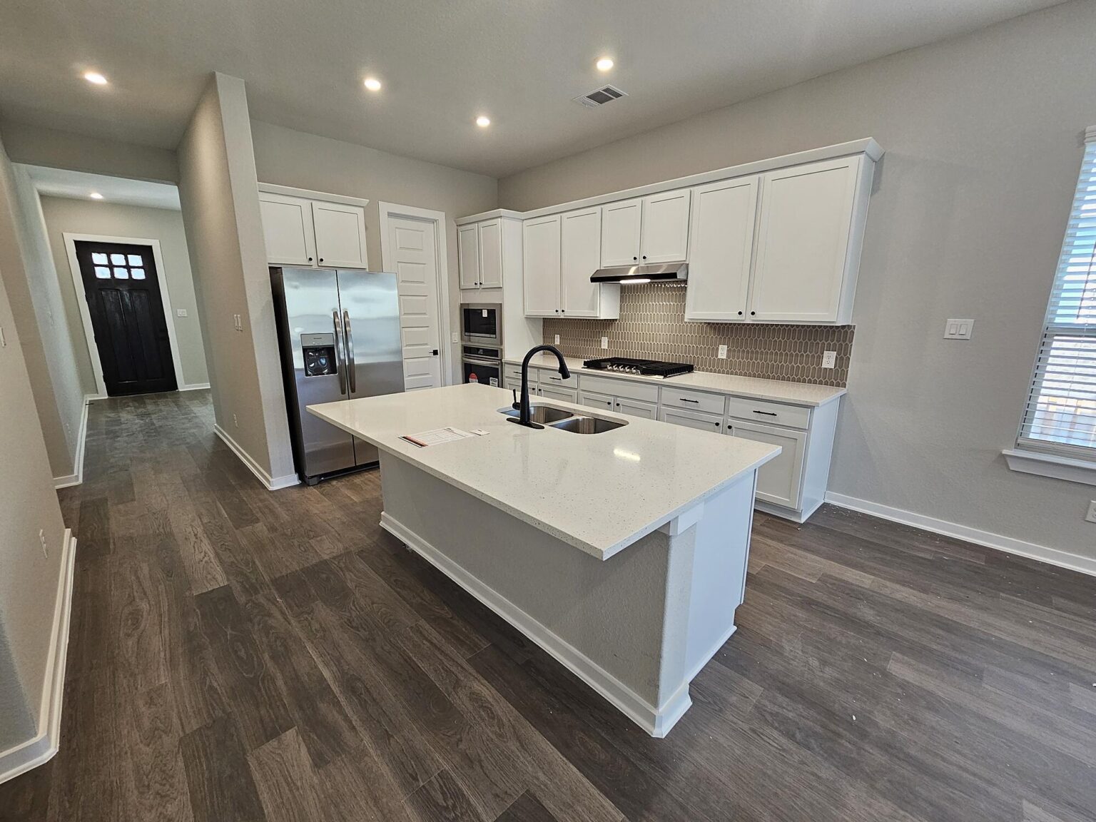 Stunning open concept 1 story home with 3 beds/ 2 baths plus private study. Tall ceilings and 8′ doors. Gorgeous kitchen with built in appliances and a large center island. Primary bedroom has extended option to make it extra spacious, primary bath with large walk in shower. This home sits on a beautiful greenbelt homesite.