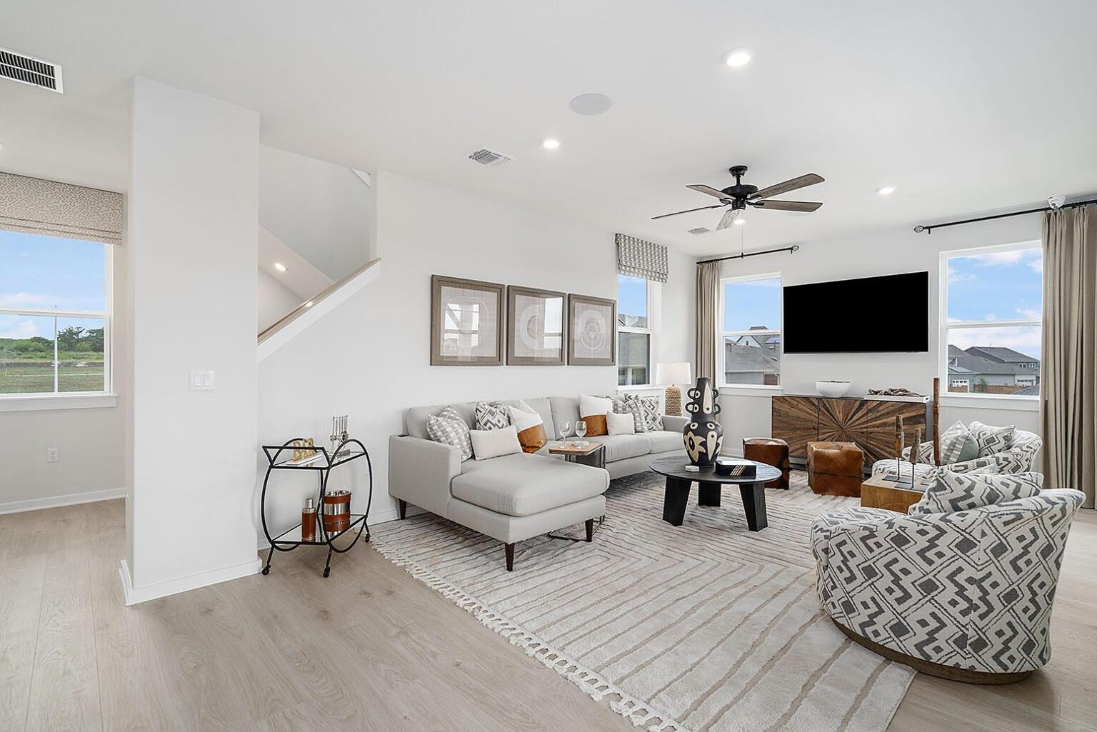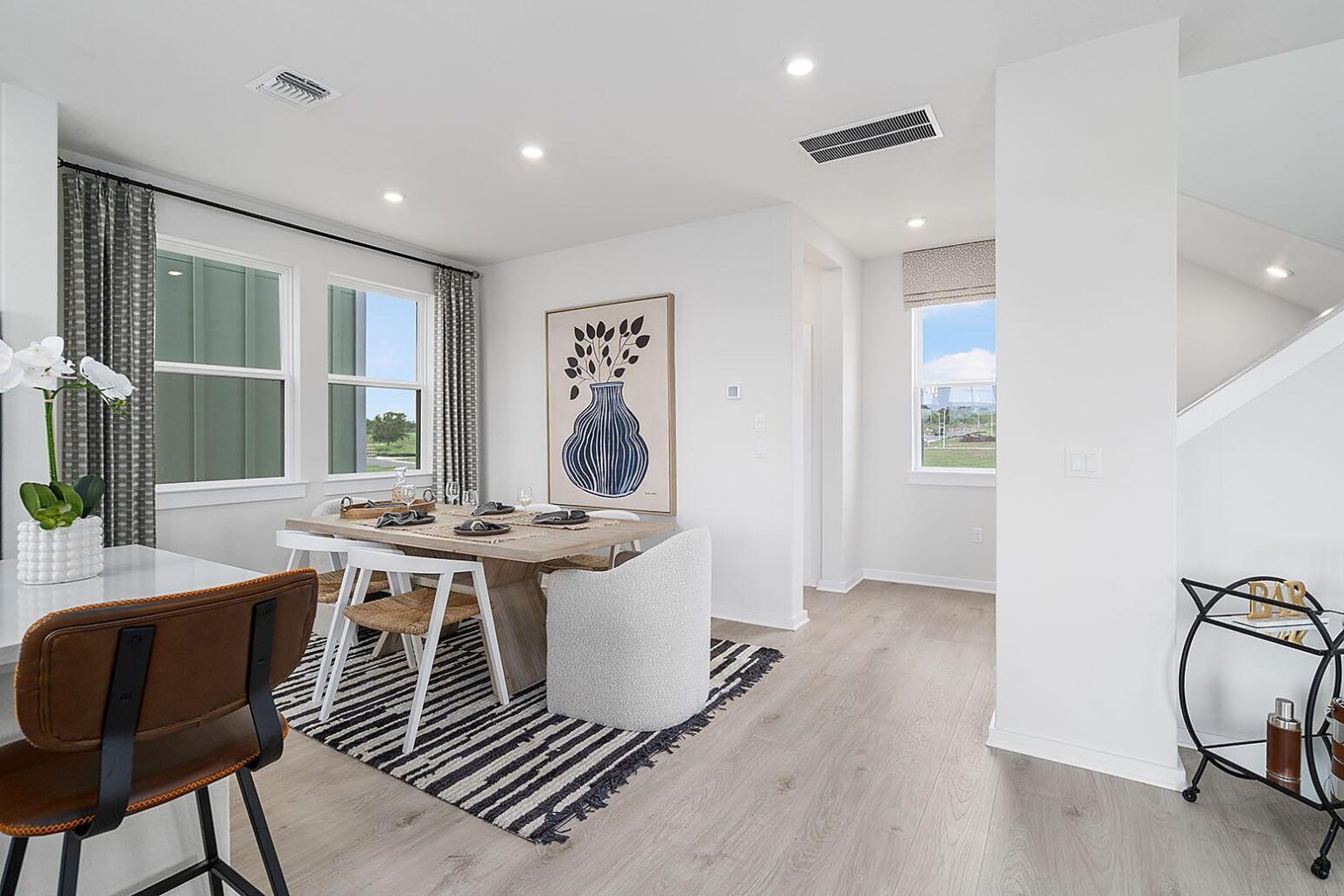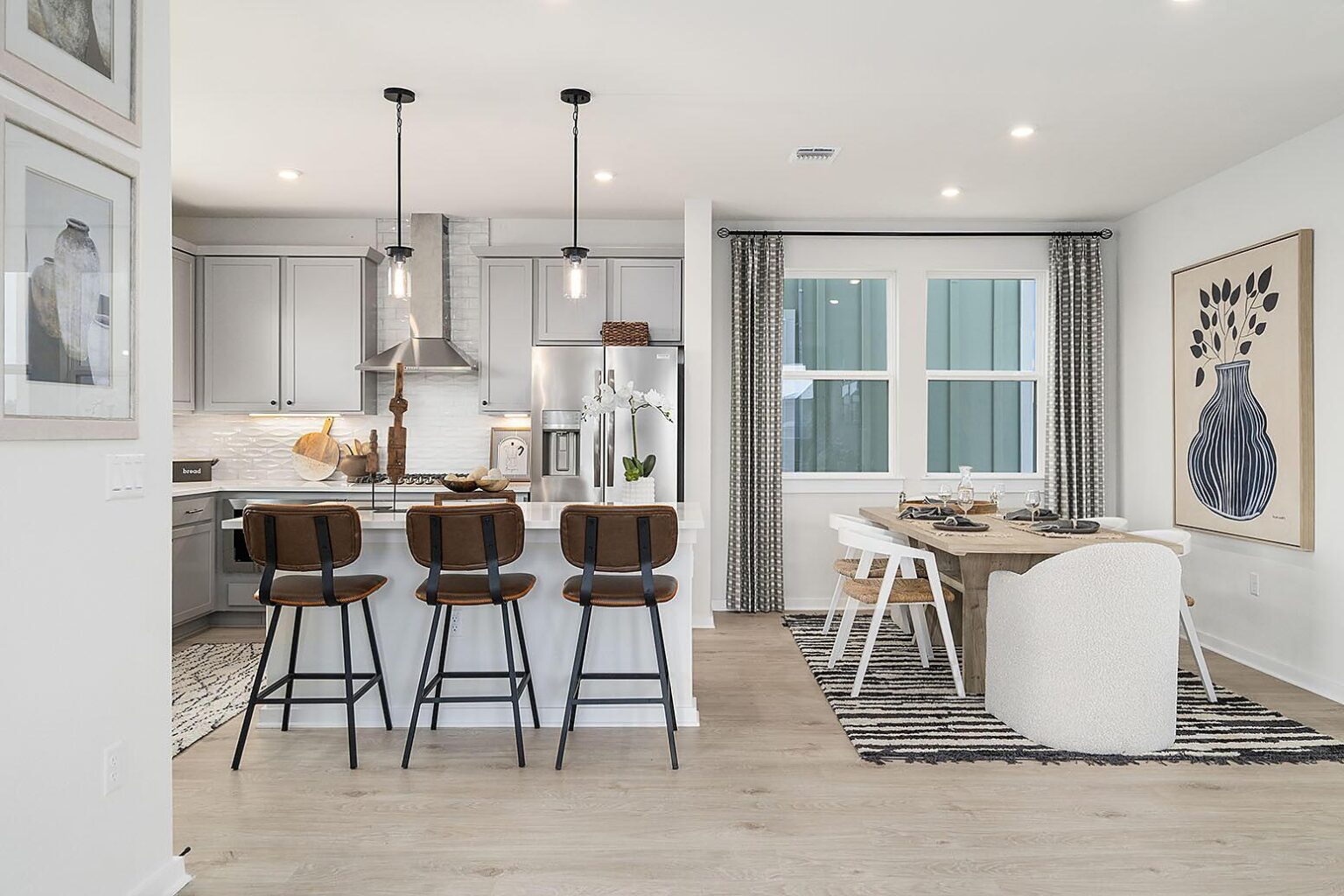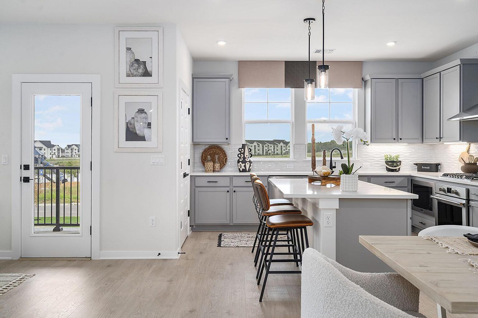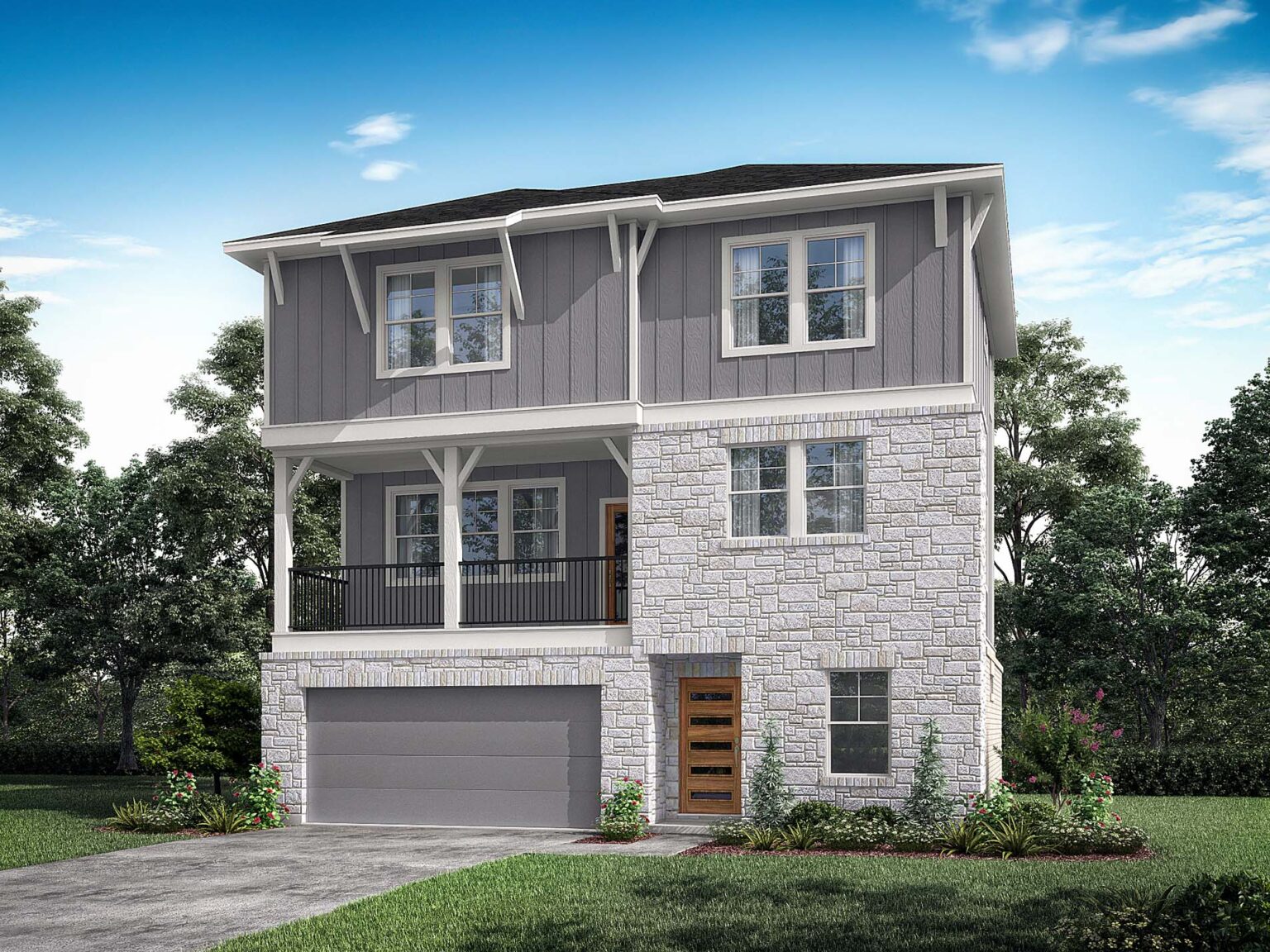 The Bullock is a unique 3-bedroom, 3.5-bathroom home spanning over 2,000 sq.ft. This 3-story home includes a luxe kitchen and dining area, with direct access to the spacious living room on the second floor. Ideal for families, this home is the perfect backdrop to make memories with a bedroom and full bath on the main level, in addition to a transformative flex space. If a dedicated outdoor space is a must-have in your future home, you’ll love this floor plan which has a second-floor deck to enjoy delicious meals al fresco. The third floor is where two of three bedrooms reside, including the primary suite which boasts double sinks and an impressive walk-in shower with a bench. A 2-car garage is located at the front of the house with ample room to house vehicles and meet all your storage needs.