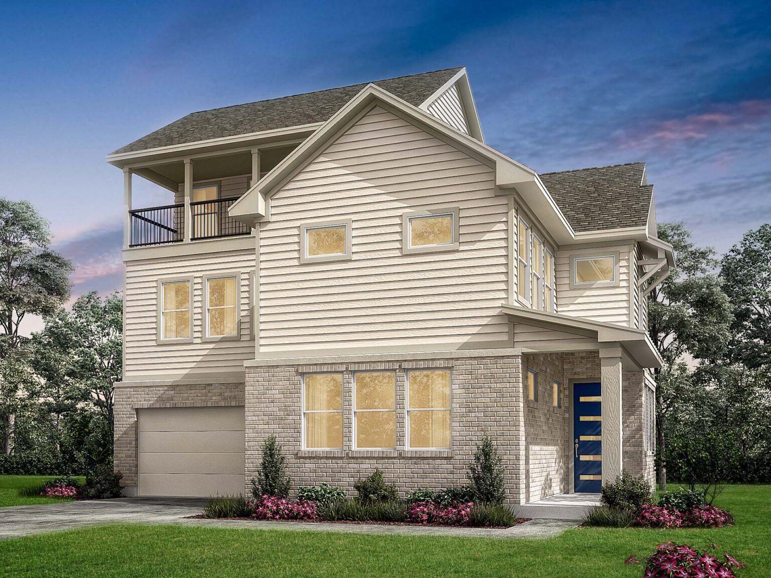 The Congress floorplan features a 3-story design, with 4-bedrooms, 3.5-bathroom, spanning 2,340 sq.ft. The main floor showcases an open concept living area, seamlessly connecting a luxurious kitchen to an oversized family room, with a powder bath, perfect for entertaining. The second level hosts the primary suite, complete with a spa-inspired bathroom and a generous walk-in closet, along with two secondary bedrooms and a full bathroom. The third level provides a third full bathroom either an additional bedroom 4 or you can use it as additional flex space creating a private retreat with access to the stunning balcony, ideal for enjoying outdoor views year-round.