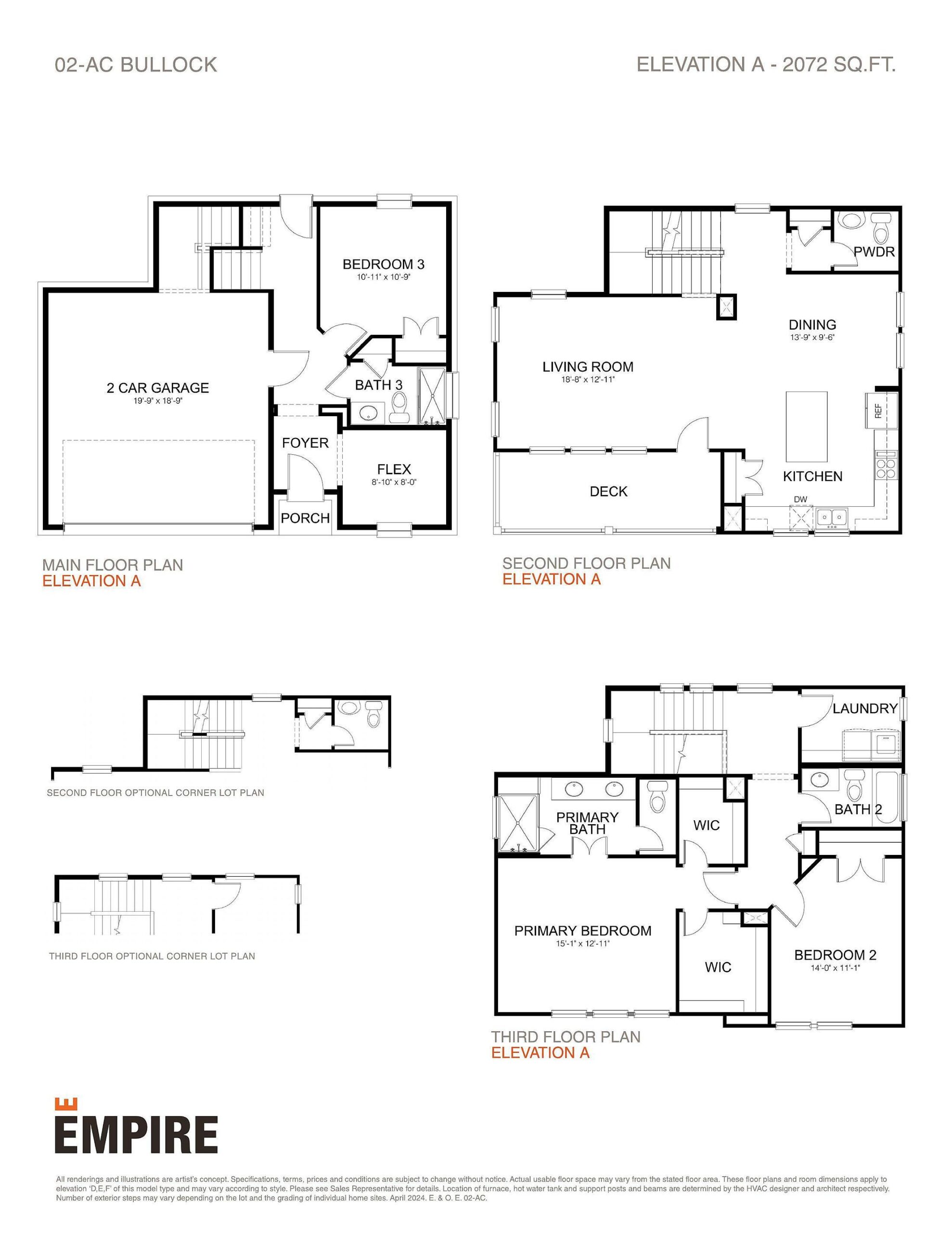 The Bullock is a unique 3-bedroom, 3.5-bathroom home spanning 2,050 sq.ft. This 3-story home includes a luxe kitchen and dining area, with direct access to the spacious living room. Ideal for families, this home is the perfect backdrop to make memories with a bedroom and full bath on the main level, in addition to a transformative flex space. If a dedicated outdoor space is a must-have in your future home, you’ll love this floor plan which has a second-floor deck to enjoy delicious meals al fresco. The third floor is where two of three bedrooms reside, including the primary suite which boasts double sinks and an impressive walk-in shower with a bench. A 2-car garage is located at the front of the house with ample room to house vehicles and meet all your storage needs.