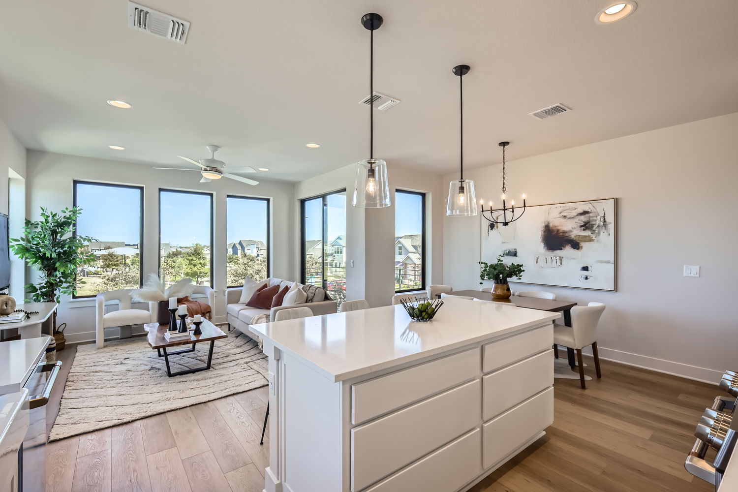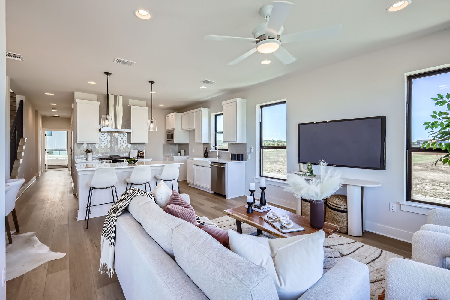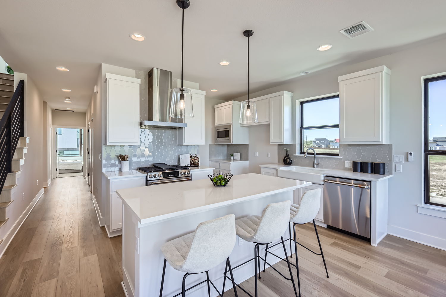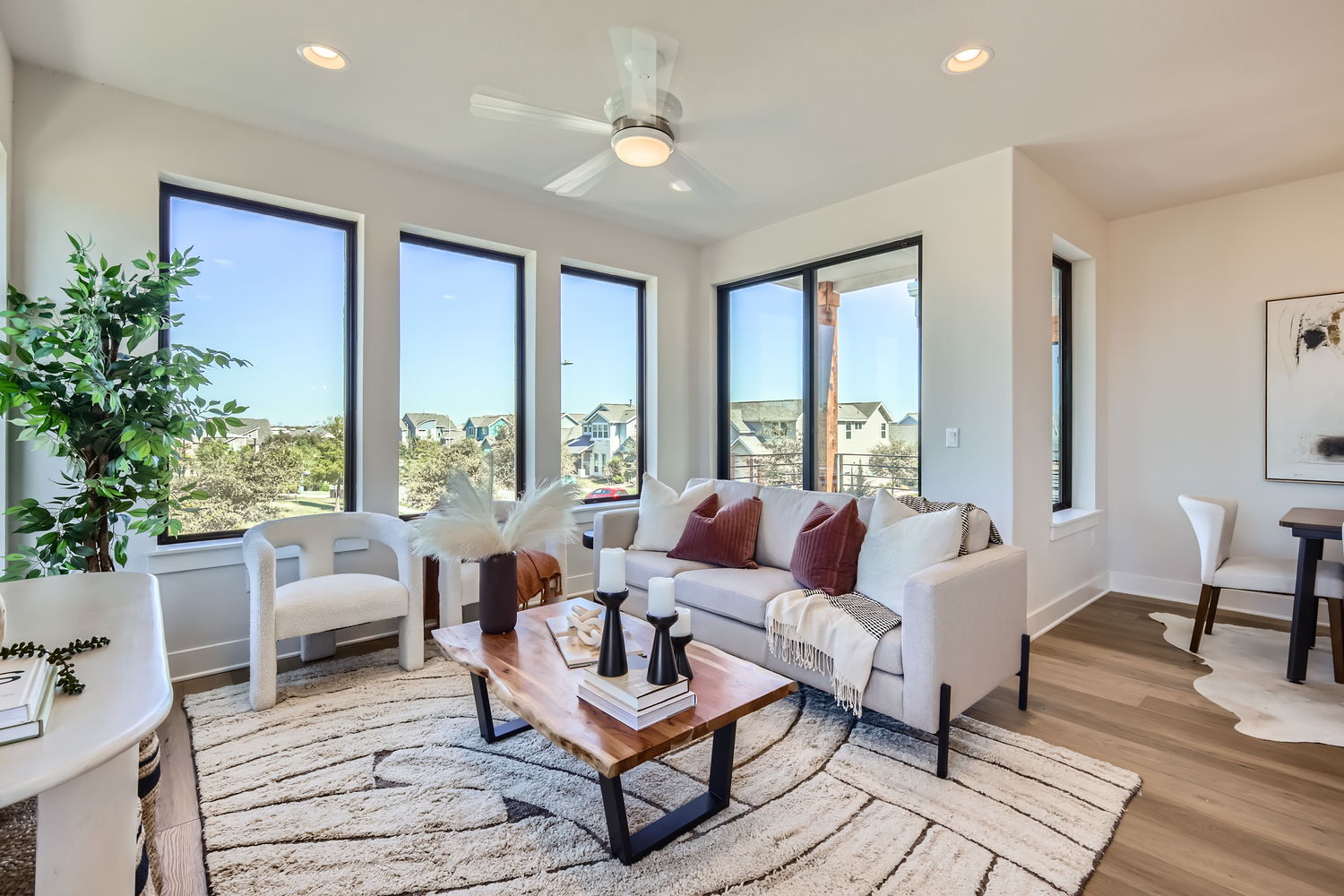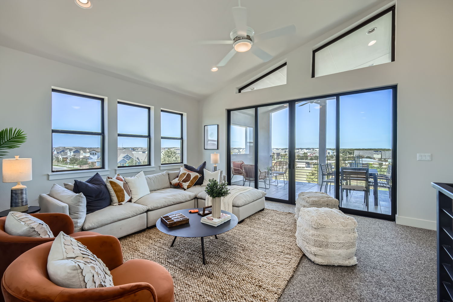 Step into this beautiful 3-bedroom, 3.5-bathroom home which boasts a 2-car garage and 2,443 sq.ft. of living space, featuring Downtown Austin skyline views from your third story balcony! On the main floor, you'll find two spacious bedrooms and large storage rooms to keep the home organized. The second level was designed with intimate areas to relax and unwind, and is where the home's open-concept kitchen, dining area and family room reside. An impressive primary bedroom can also be found on this floor, located at the front of the house. The third floor's exceptional game room and massive porch is ideal for entertaining parties of all sizes, complementing the 2-car garage which accommodates families with multiple vehicles.