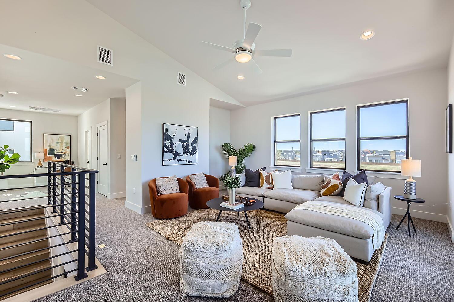 Step into this beautiful 3-bedroom, 3.5-bathroom home which boasts a 2-car garage and 2,443 sq.ft. of living space, featuring Downtown Austin skyline views from your third story balcony! On the main floor, you’ll find two spacious bedrooms and large storage rooms to keep the home organized. The second level was designed with intimate areas to relax and unwind, and is where the home’s open-concept kitchen, dining area and family room reside. An impressive primary bedroom can also be found on this floor, located at the front of the house. The third floor’s exceptional game room and massive porch is ideal for entertaining parties of all sizes, complementing the 2-car garage which accommodates families with multiple vehicles.