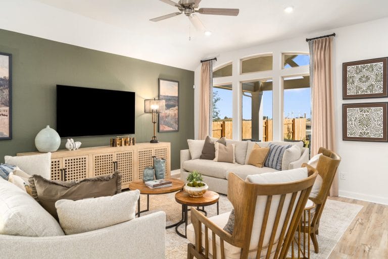 From the quiet curve of a tree-lined street to the golden light flickering behind front porches, every corner of Flora feels like a moment worth settling into. At the heart of it all are the homes—thoughtfully designed, generously sized, and built for life as it’s really lived. With 40’ and 50’ homesites, one- and two-story layouts range from 1,527 to over 3,200 square feet, offering three to four bedrooms and the flexibility to grow, gather, or simply breathe. Open-concept kitchens keep you close to the action, while covered patios, flex spaces, and game room options create room for everything from morning meetings to midnight movies. These are homes that rise to meet you—day after day.