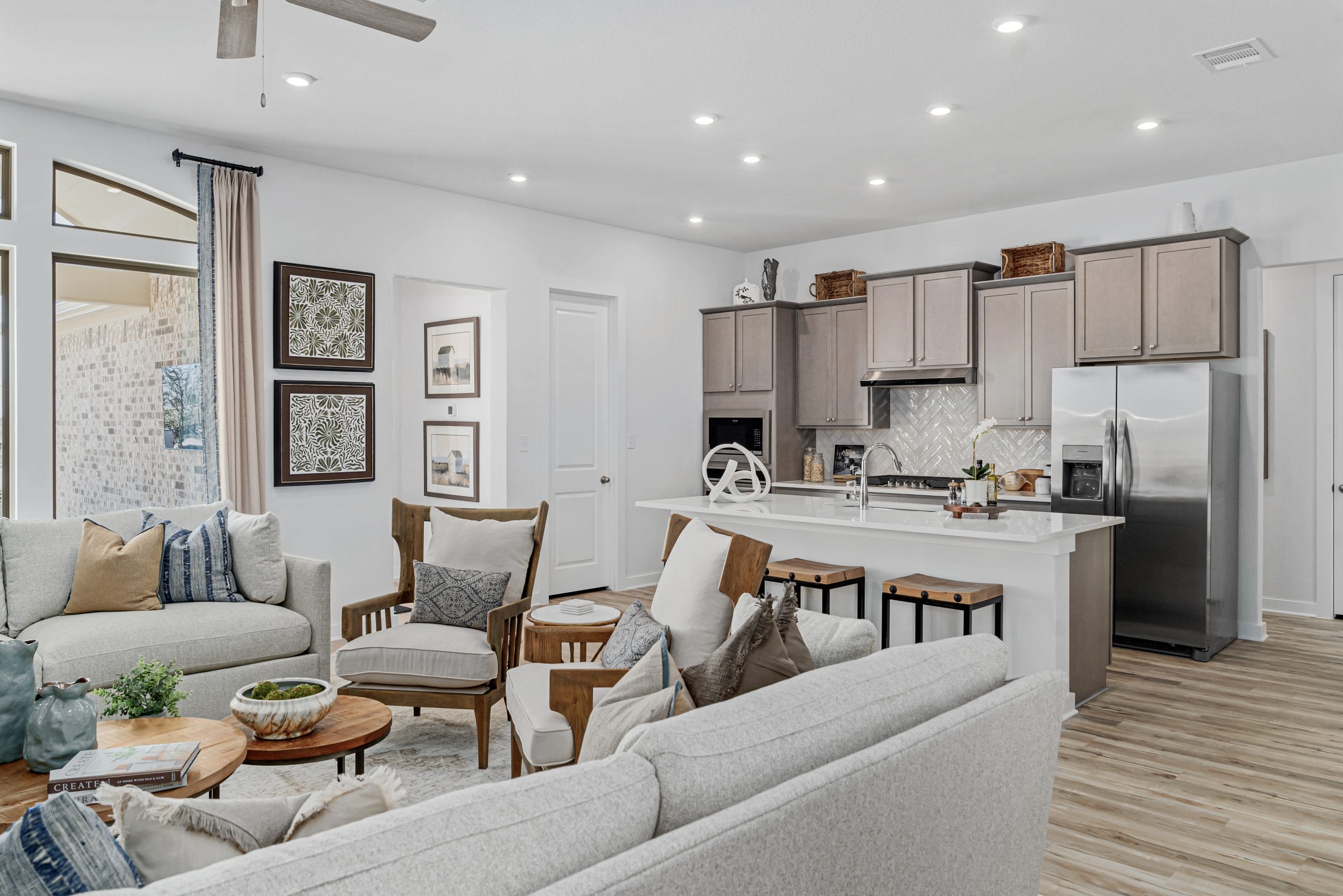 From the quiet curve of a tree-lined street to the golden light flickering behind front porches, every corner of Flora feels like a moment worth settling into. At the heart of it all are the homes—thoughtfully designed, generously sized, and built for life as it’s really lived. With 40’ and 50’ homesites, one- and two-story layouts range from 1,527 to over 3,200 square feet, offering three to four bedrooms and the flexibility to grow, gather, or simply breathe. Open-concept kitchens keep you close to the action, while covered patios, flex spaces, and game room options create room for everything from morning meetings to midnight movies. These are homes that rise to meet you—day after day.