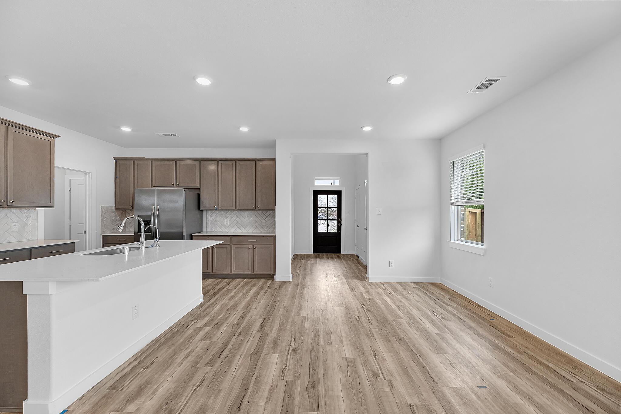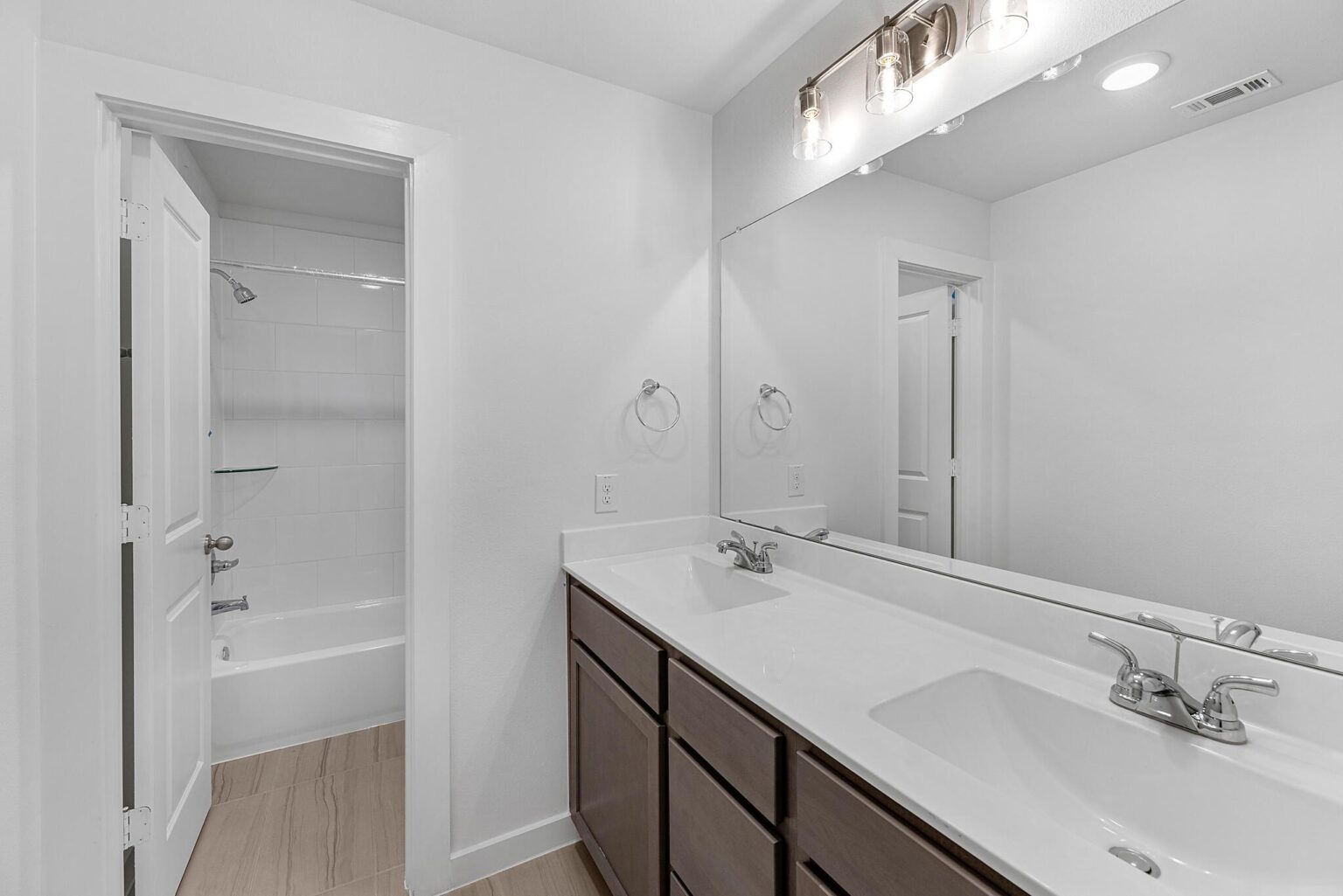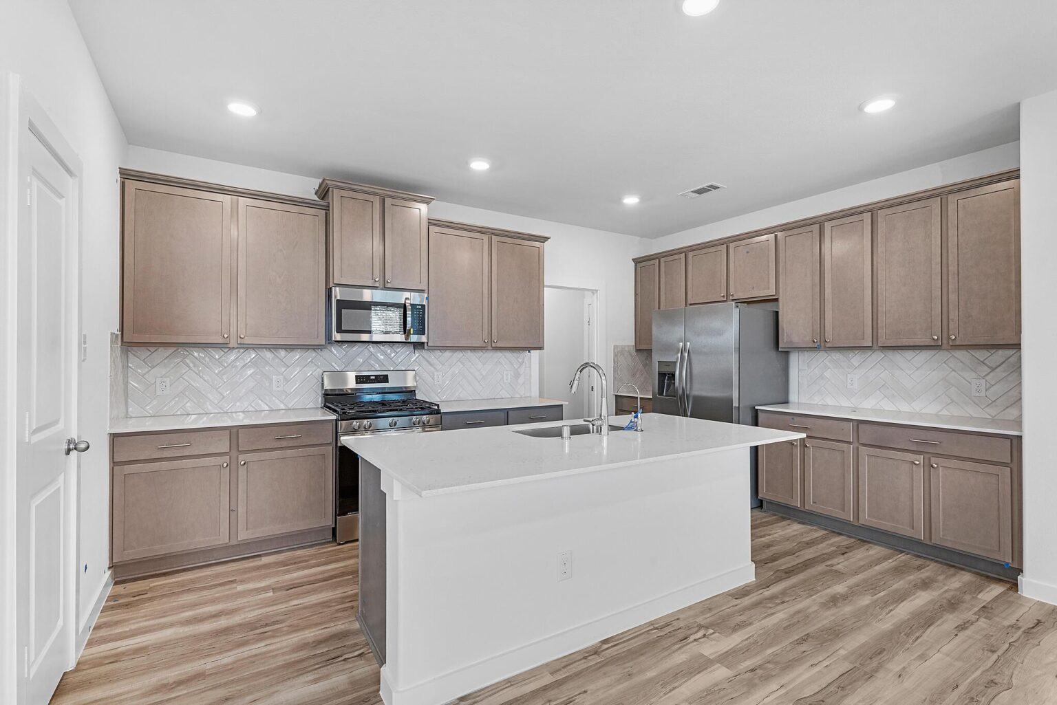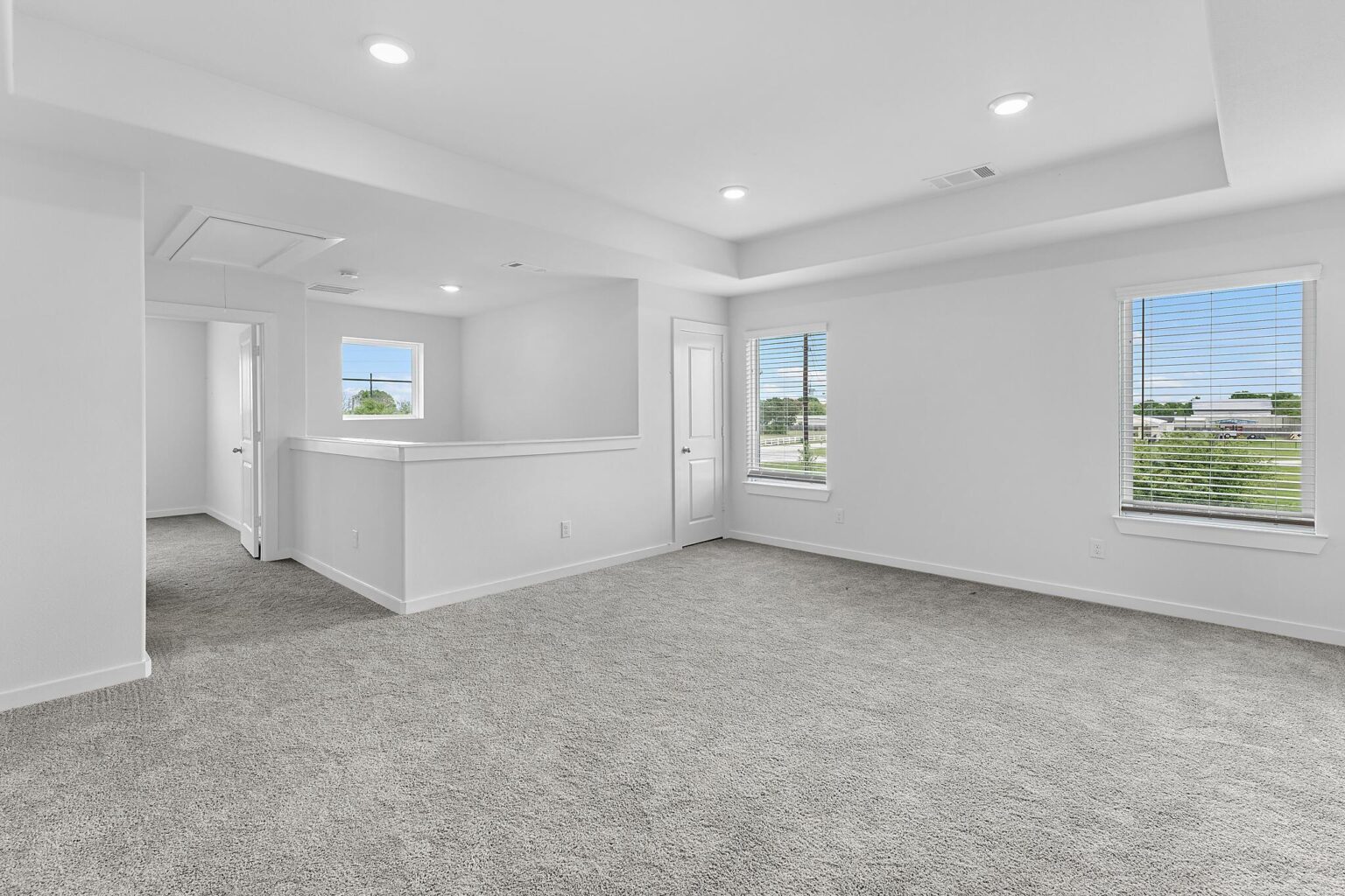 This beautiful 2-story plan features 4 bedrooms, 2.5 bathrooms, and an open-concept dining and family room. The kitchen is adorned with 42-inch cabinets and an abundance of counter space. Additional entertainment is made with ease as with an upstairs oversized game room, media room or out on the covered patio. The primary retreat offers a spa-like ensuite and a spacious walk-in closet, connected to the laundry room for your convenience.