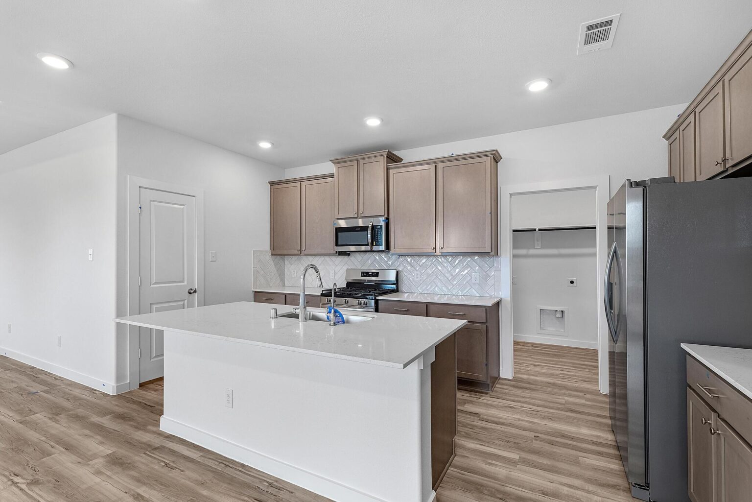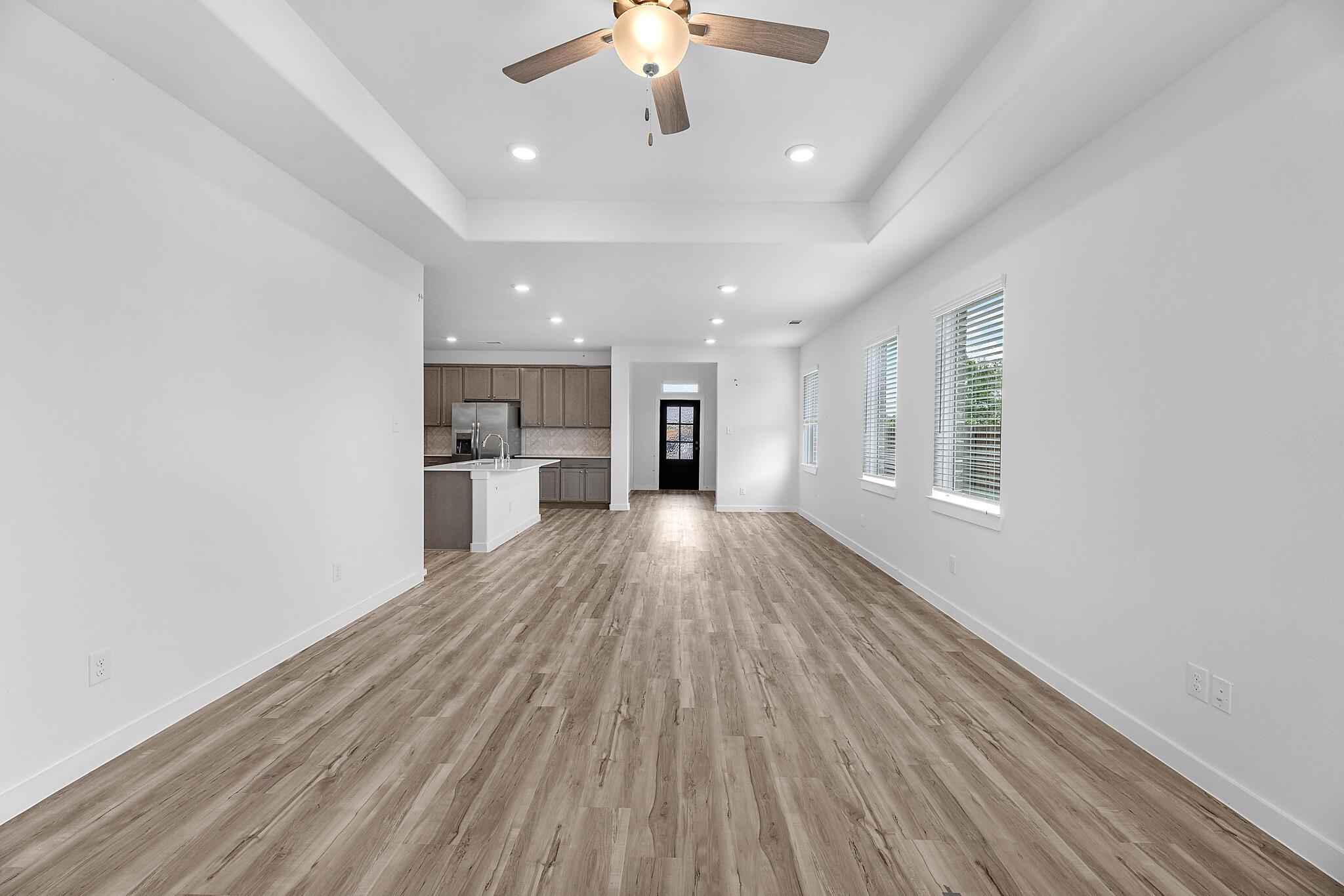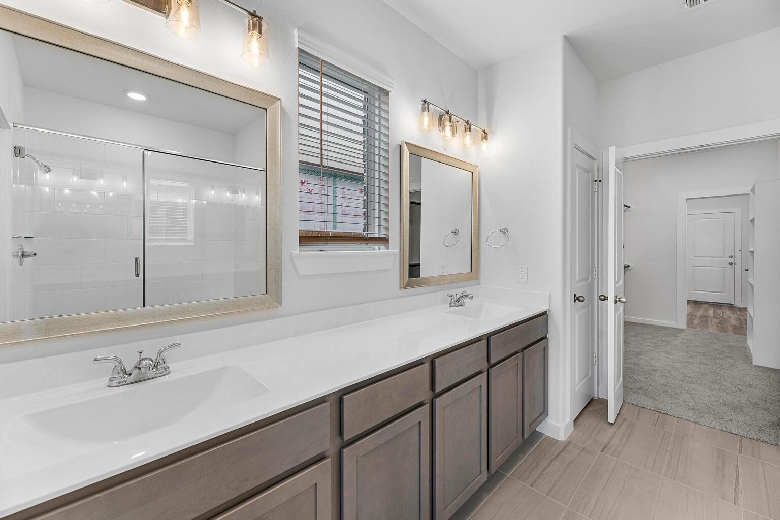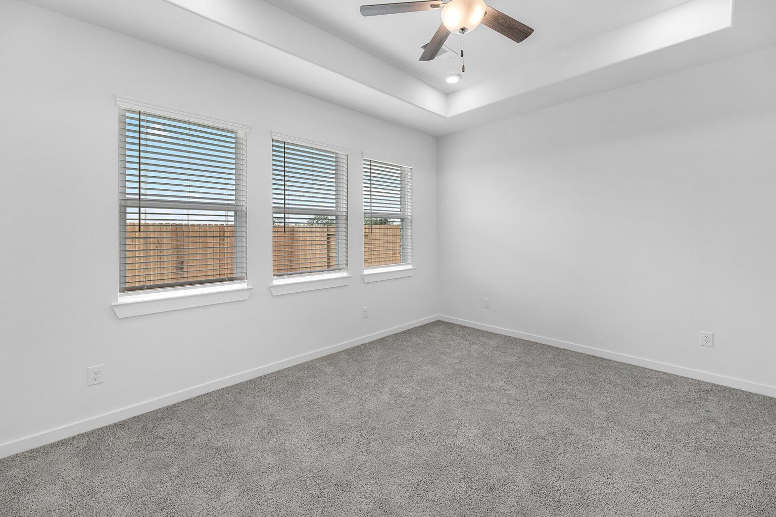 This beautiful 2-story plan features 4 bedrooms, 2.5 bathrooms, and an open-concept dining and family room. The kitchen is adorned with 42-inch cabinets and an abundance of counter space. Additional entertainment is made with ease as with an upstairs oversized game room, media room or out on the covered patio. The primary retreat offers a spa-like ensuite and a spacious walk-in closet, connected to the laundry room for your convenience.