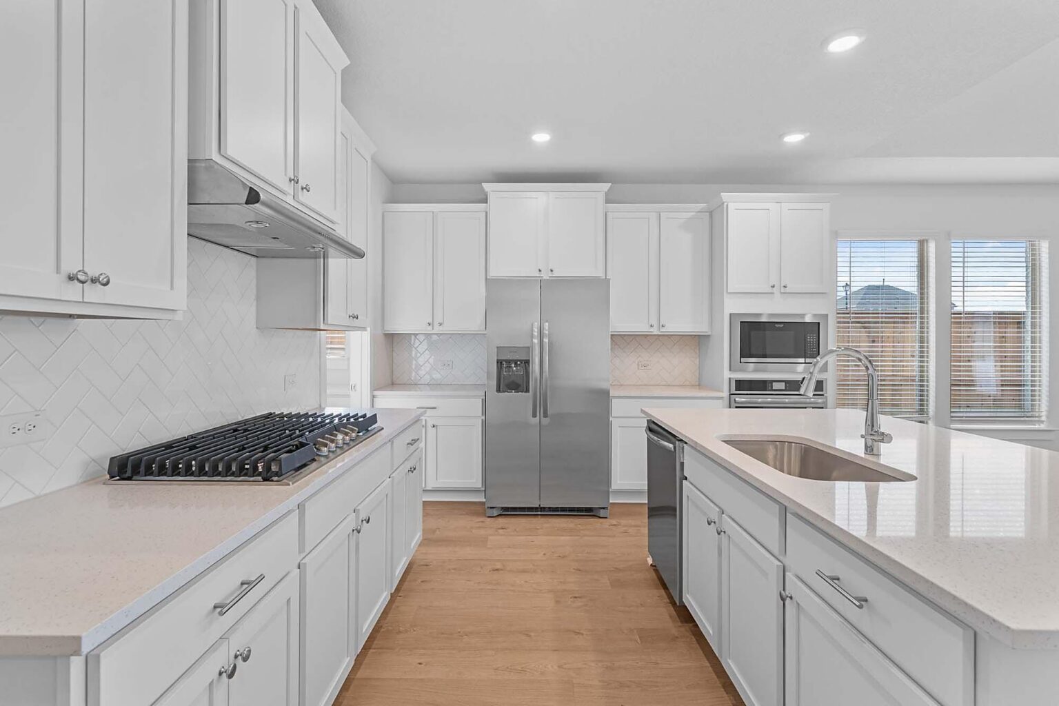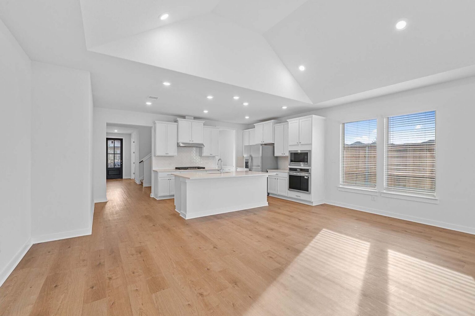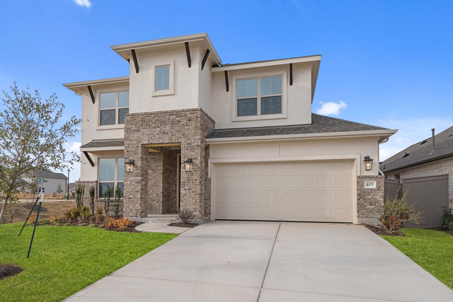 Beautiful 2 story home with 4 bedrooms, 3.5 baths, game room and media room. Soaring ceilings in the main living area, 2 stories at staircase. Large kitchen with coffee bar, butlers pantry, island and built in gas appliances. Corner homesite. This home includes a refrigerator and blinds.