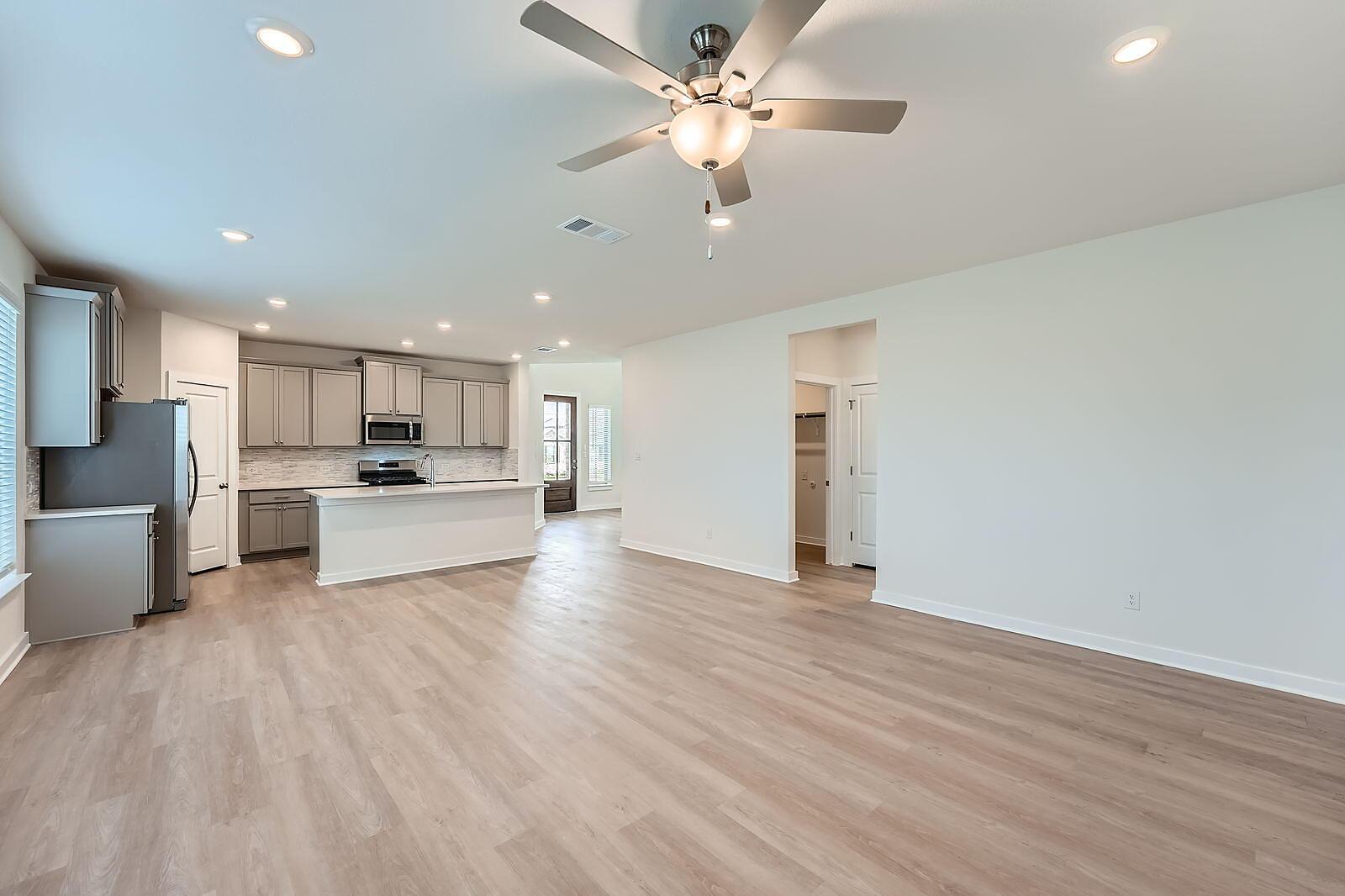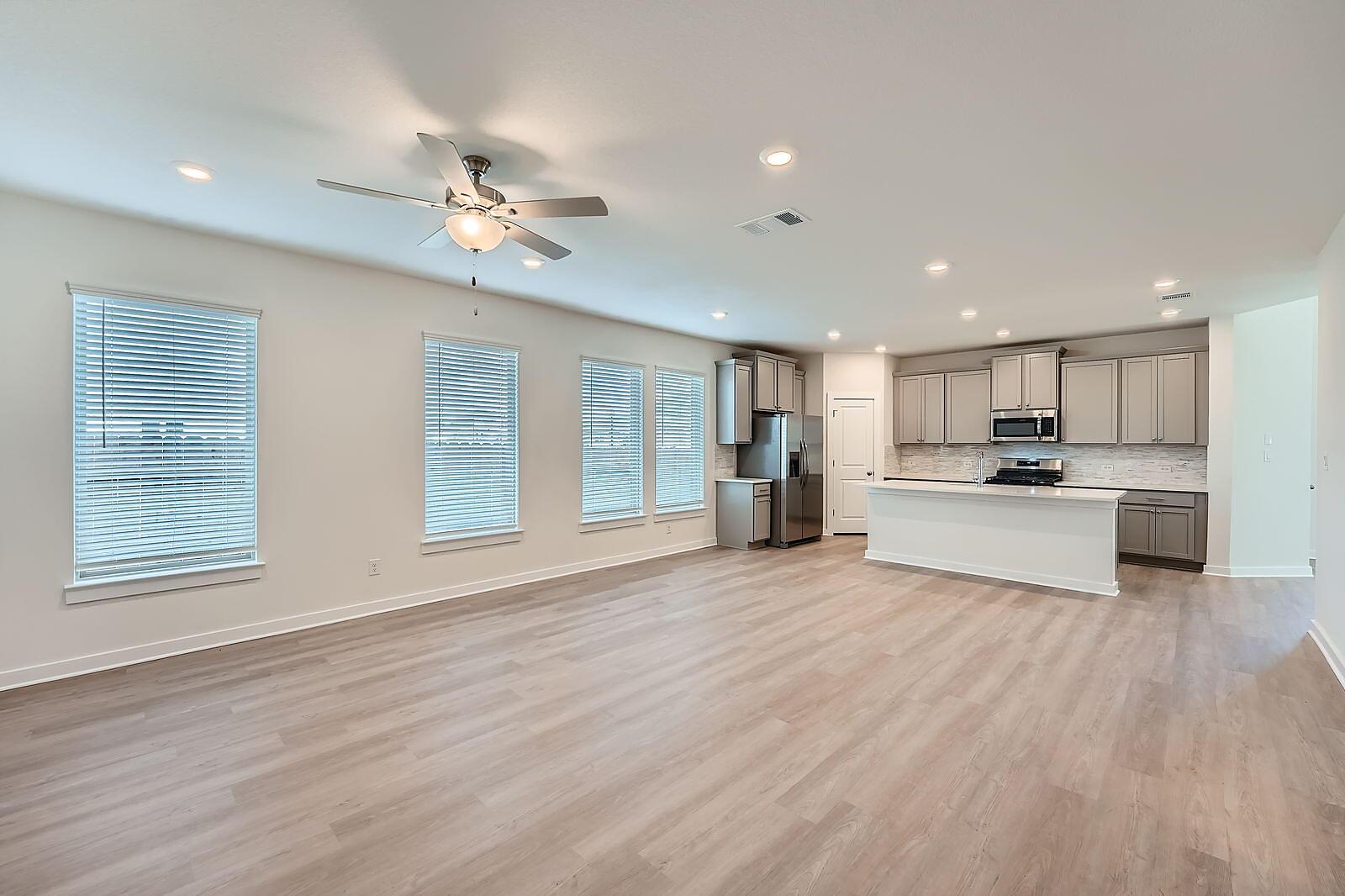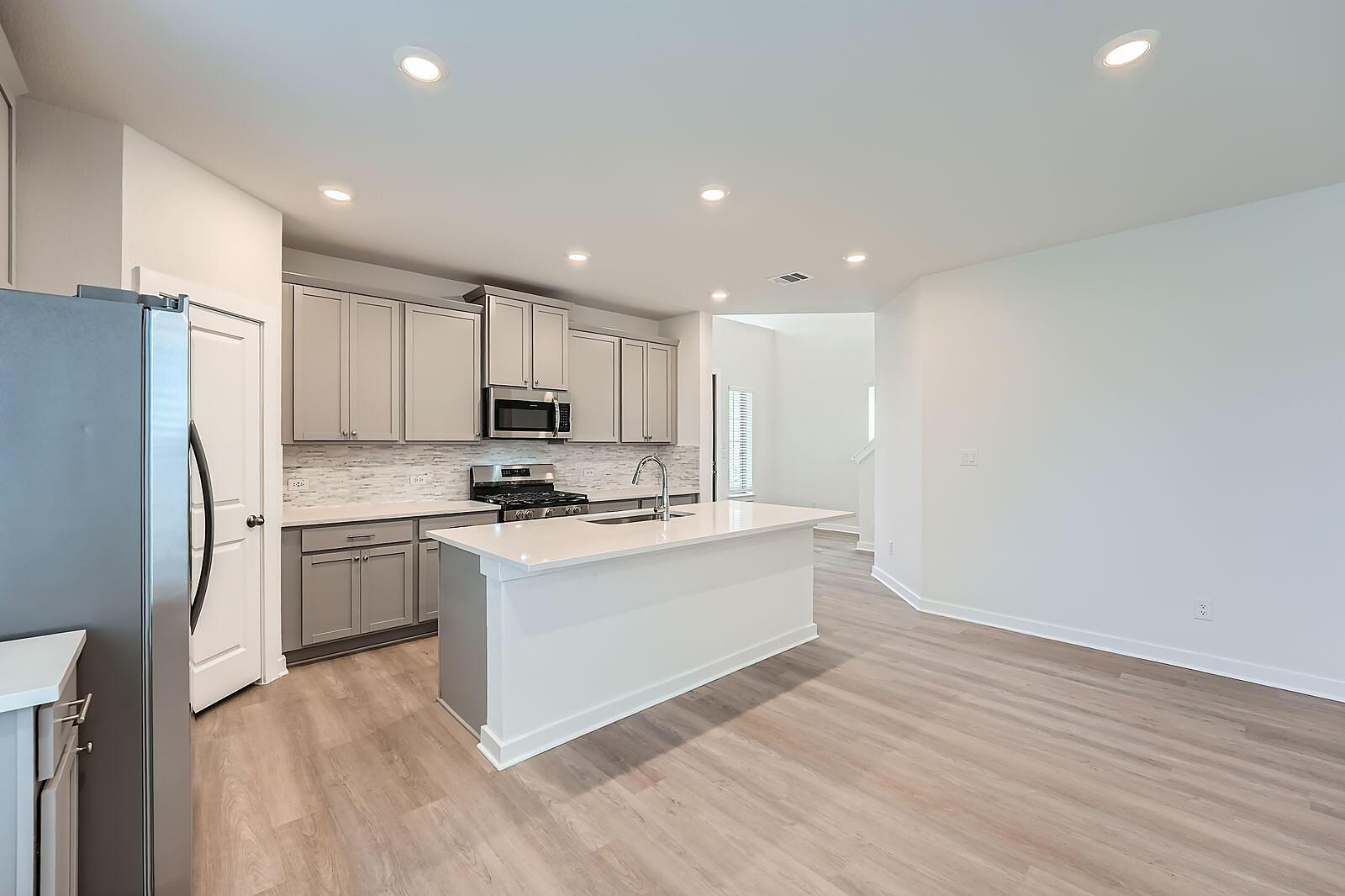 READY NOW! What sets the Gaines apart is its seamless flow and spacious design, featuring 4 bedrooms and 3 full bathrooms. The open kitchen and generous dining area create the perfect setting for both casual meals and entertaining. At the rear, the private primary suite includes a large walk-in closet and an elegant en-suite bath. One additional bedroom and a full bath complete the first floor. Upstairs, a sizable game room, two more bedrooms, and third full bath offer extra space for relaxation or guests. The large covered patio in the backyard is ideal for outdoor dining and entertaining al fresco.