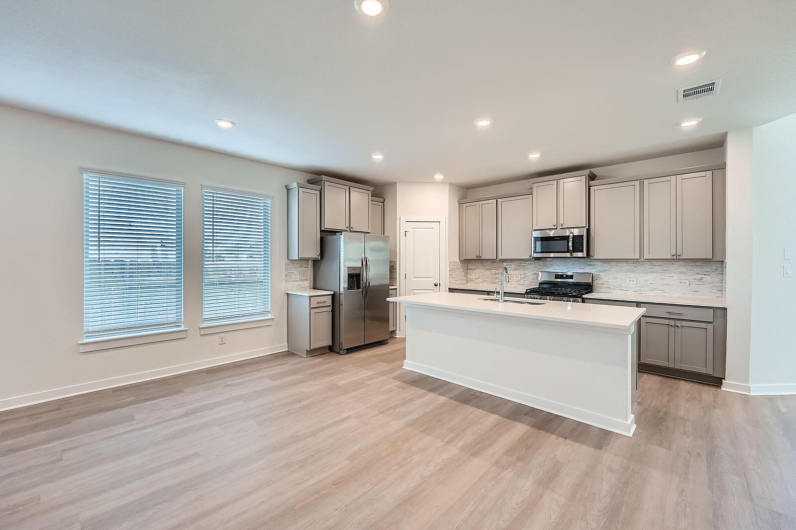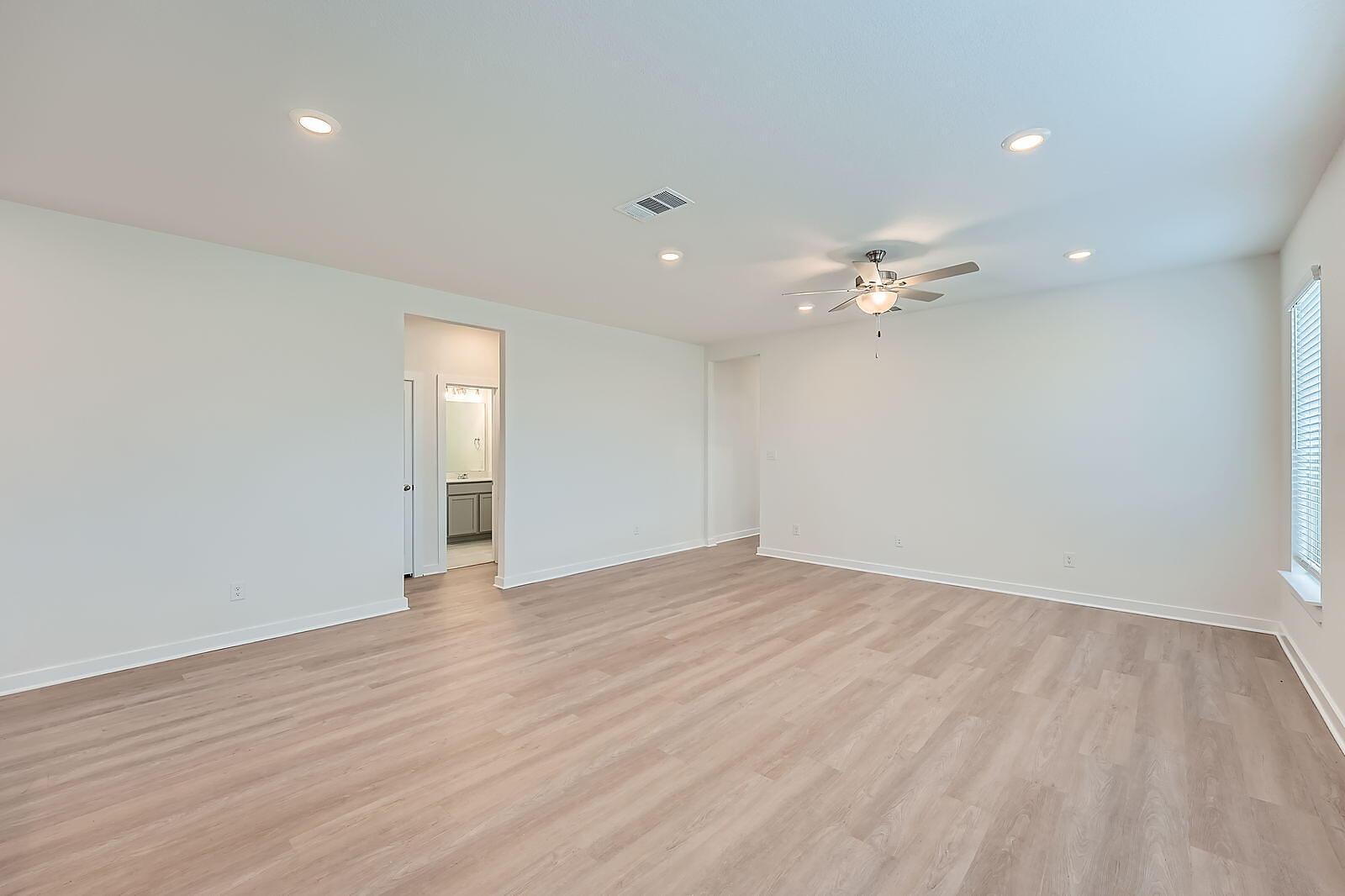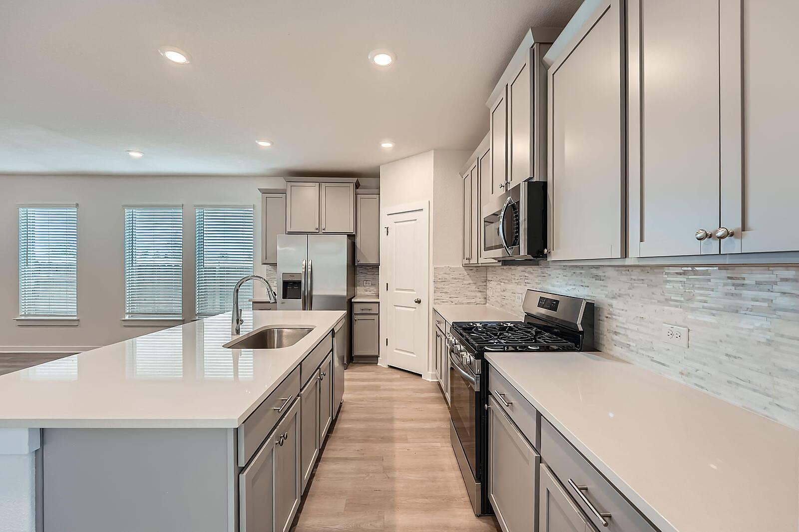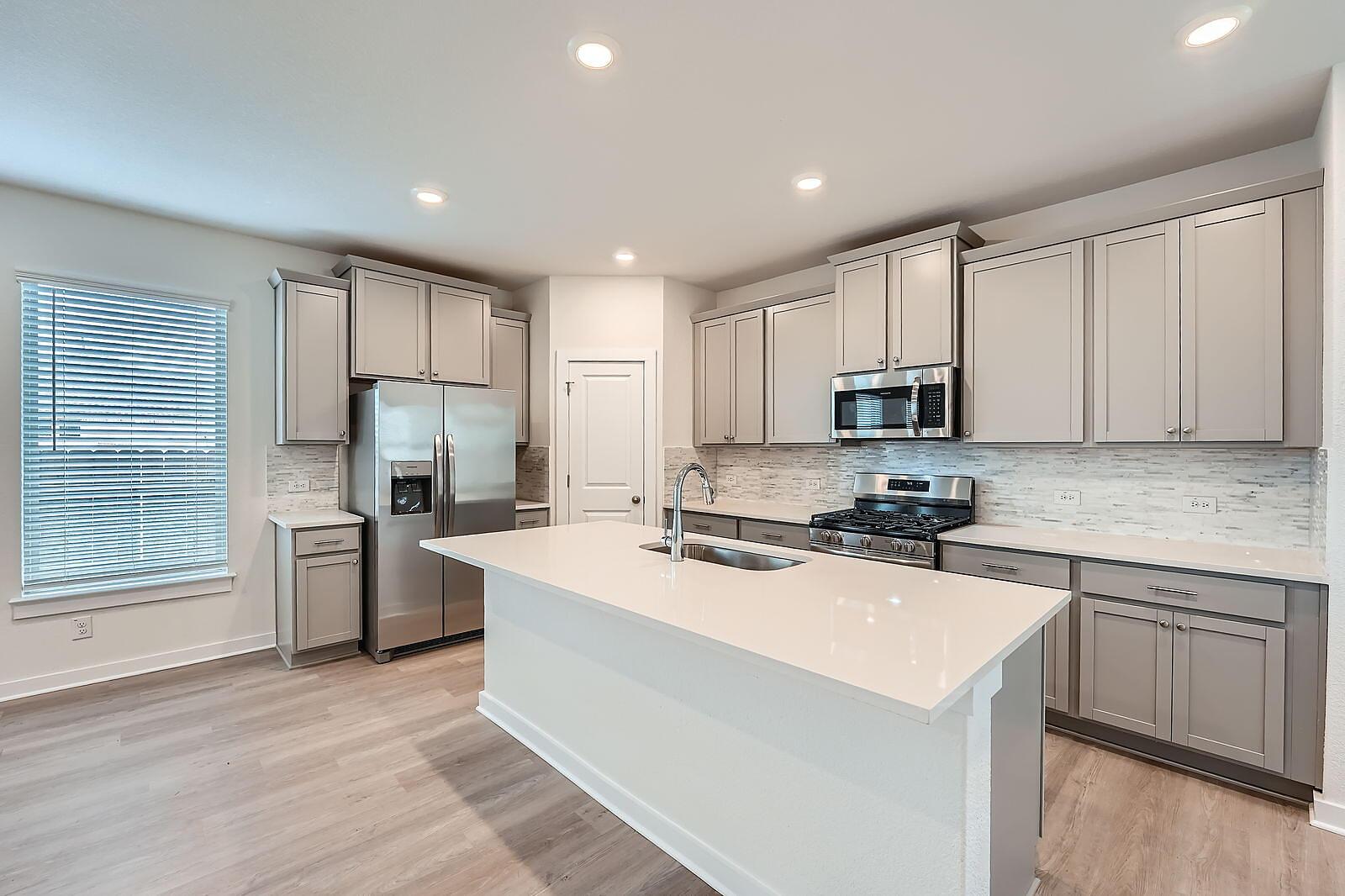 READY NOW! What sets the Gaines apart is its seamless flow and spacious design, featuring 4 bedrooms and 3 full bathrooms. The open kitchen and generous dining area create the perfect setting for both casual meals and entertaining. At the rear, the private primary suite includes a large walk-in closet and an elegant en-suite bath. One additional bedroom and a full bath complete the first floor. Upstairs, a sizable game room, two more bedrooms, and third full bath offer extra space for relaxation or guests. The large covered patio in the backyard is ideal for outdoor dining and entertaining al fresco.