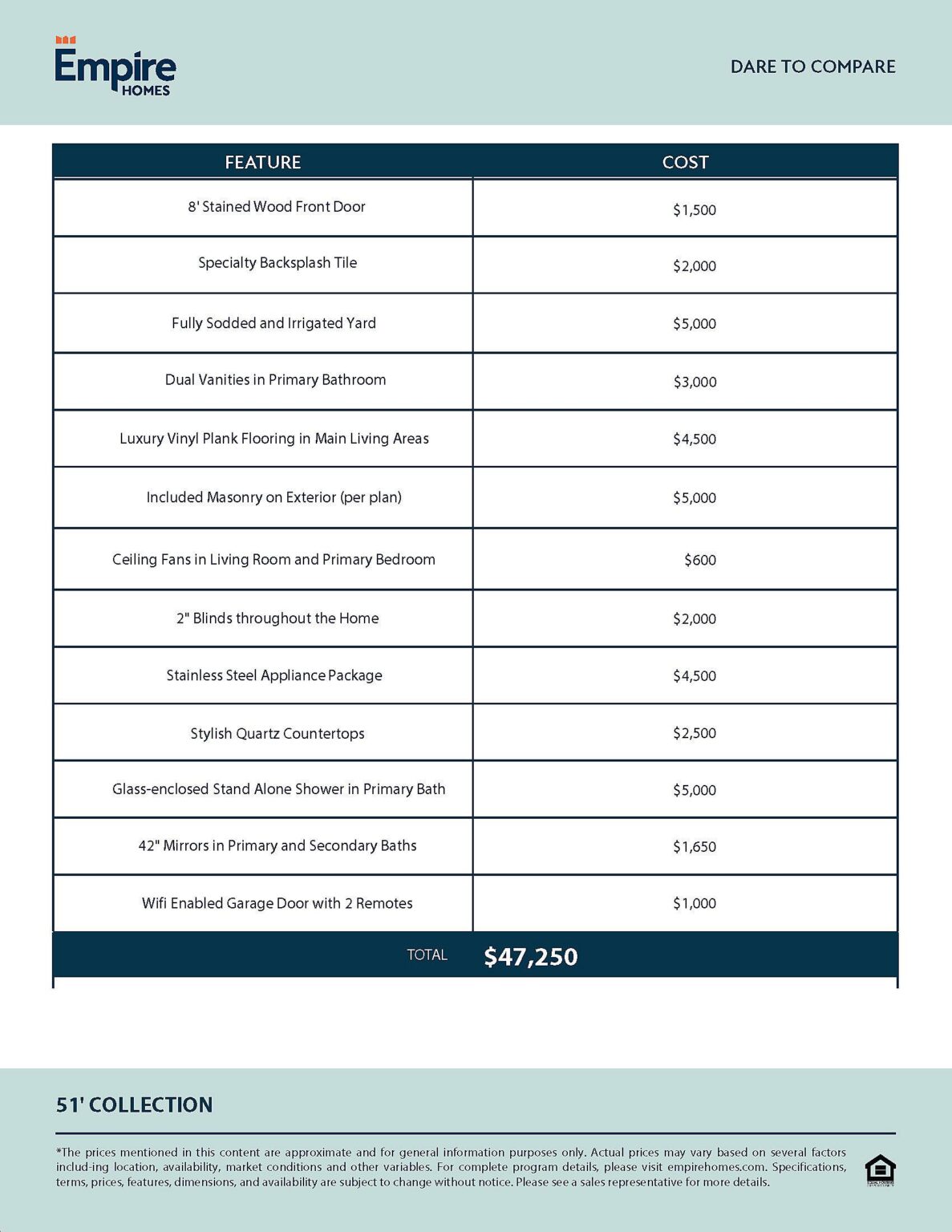 With Empire Homes, you get $50,000 more in standard features without spending more each month. Plus, low rates and closing costs available on select homes for a limited time.