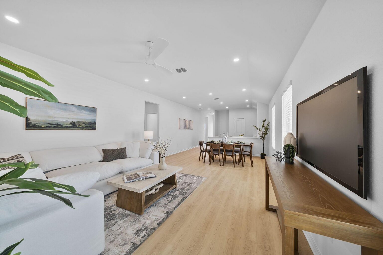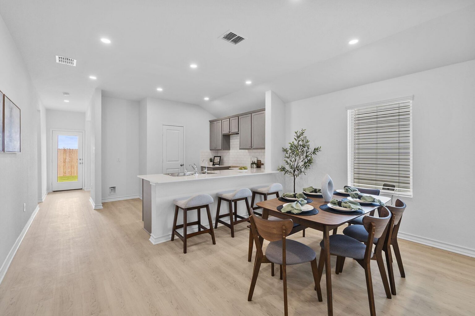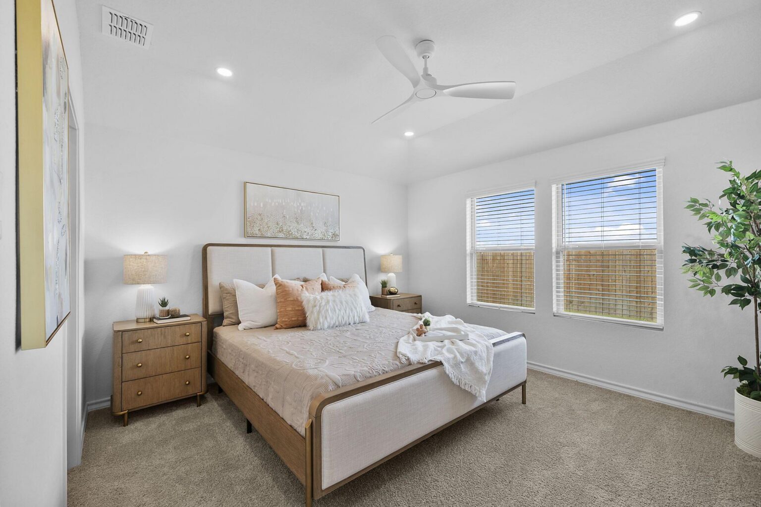 The Medina floor plan was designed to impress. With the spacious living and dining area, which flows seamlessly onto a covered patio, the opportunities for design are endless. This two-story floor plan features four bedrooms and four bathrooms, with an option to upgrade to a 5-bedroom, 5-bathroom model, as well as a study on the main level. The primary bedroom sits tucked away in the back of the home, equipped with a spa-like ensuite and walk-in closet with a perfect view of the backyard. Enjoy outdoor dining with an optional extended covered patio extension that can accommodate parties of any size. Wine connoisseurs will love the optional wine cellar, perfect for storing your favorite drinks. The second floor is where children can come to play with an impressive sized game room, fit for family game nights and hosting friends.