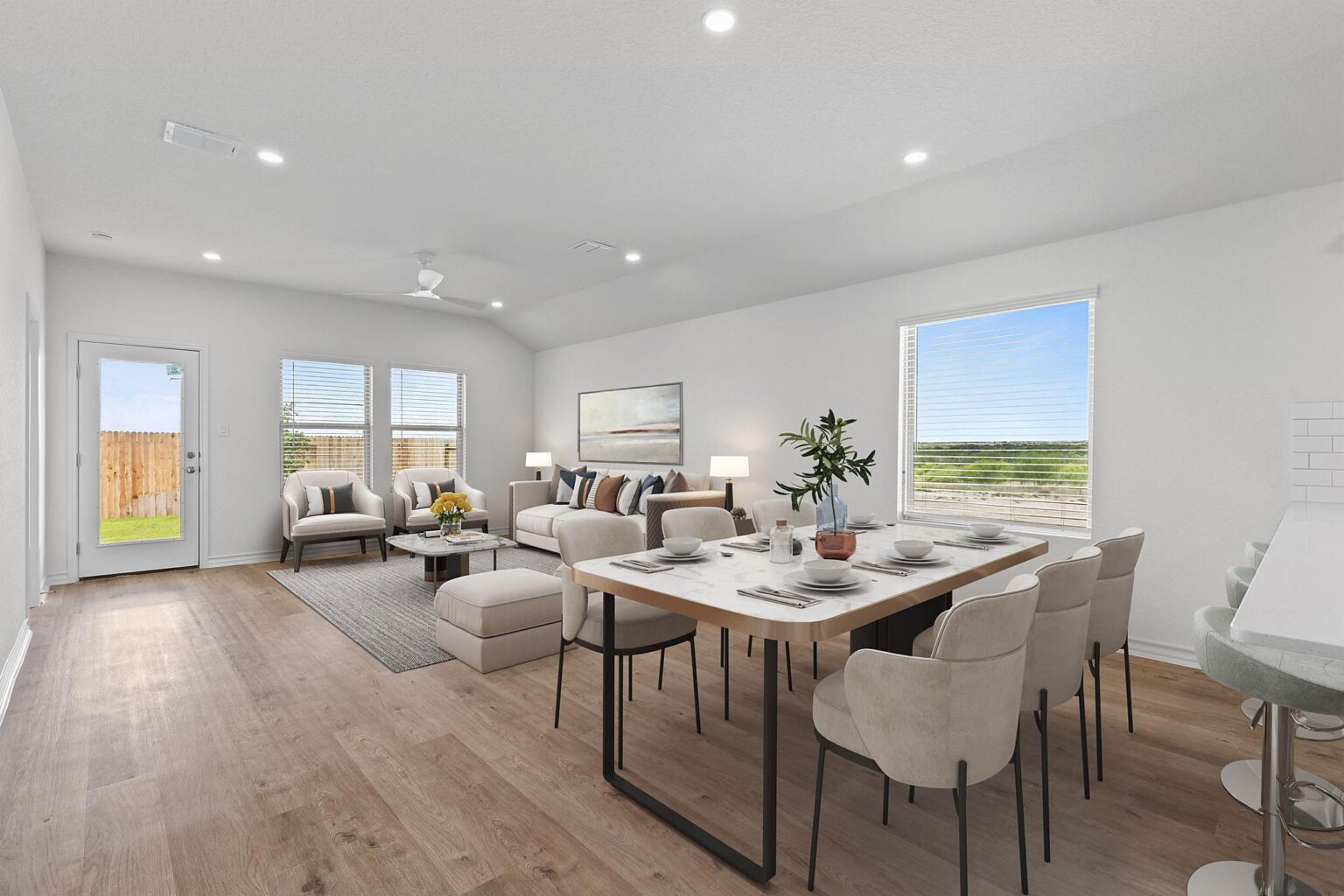 The Val Verde is a thoughtfully crafted 1,501 sq. ft. home designed for both comfort and functionality. Its open-concept layout seamlessly connects the kitchen, dining, and living areas, creating a bright and inviting atmosphere. A flexible front room offers space for a home office or hobby area, adapting to your needs. The private primary suite boasts a spacious walk-in closet and an en-suite bath, while two additional bedrooms share a conveniently located second bath. A covered patio extends the living space outdoors, perfect for relaxing or entertaining.