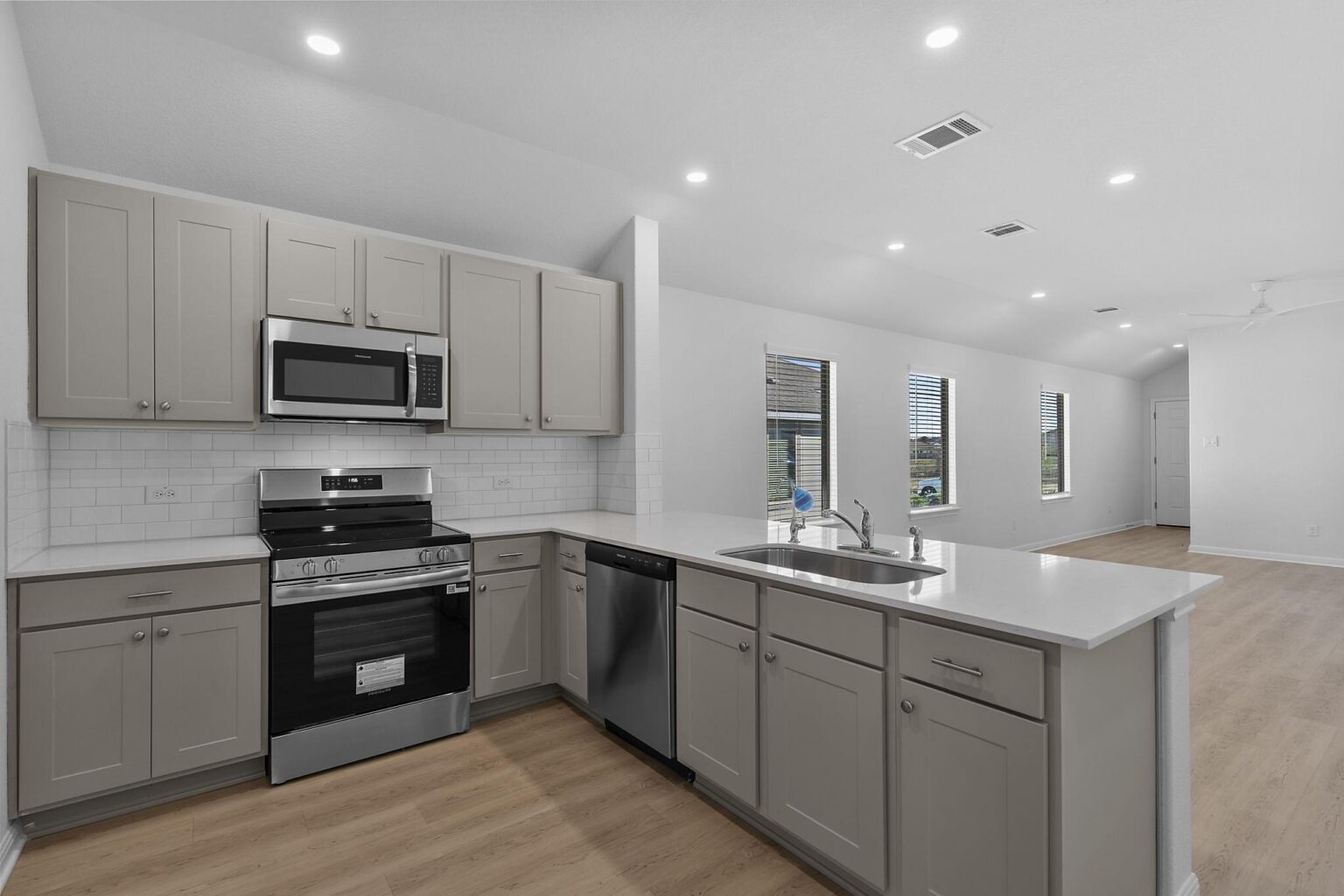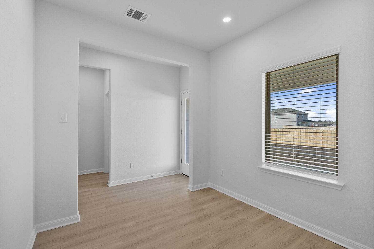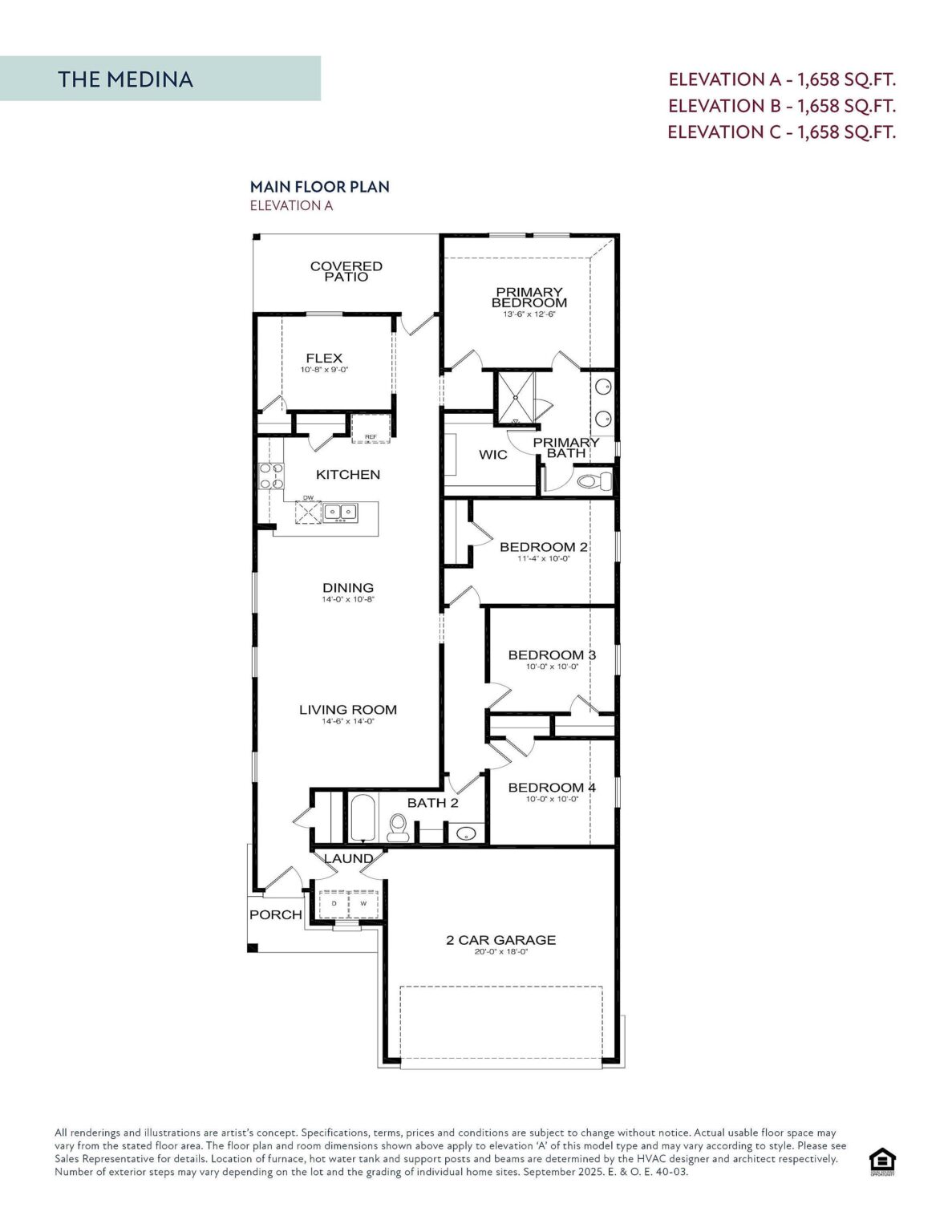 The Medina is a spacious 1,658 sq. ft. home designed to maximize comfort and functionality. Its open-concept design seamlessly connects the living, dining, and kitchen areas, making it perfect for everyday living and entertaining. A flexible bonus space near the kitchen provides room for a study, playroom, or creative workspace. The primary suite offers a private retreat with a walk-in closet and an en-suite bath, while three additional bedrooms ensure plenty of room for family or guests. A covered patio extends the living space outdoors, ideal for relaxing or hosting gatherings.