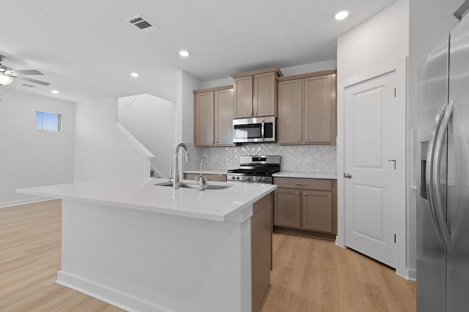 The Burnet floorplan offers 1,749 sq. ft. of versatile two-story living space, ideal for families of all sizes. With four spacious bedrooms and two full baths, this home provides comfort and functionality for everyone. The open-concept main floor features a well-appointed kitchen that flows seamlessly into the dining and living areas, perfect for entertaining or everyday life. The primary suite, located on the second floor, includes a private ensuite bathroom and a generous walk-in closet for added convenience. Three additional bedrooms offer flexibility for family, guests, or a home office. A two-car garage provides secure parking and ample storage space. Thoughtfully designed with modern touches, the Burnet floorplan combines practicality and style to create a welcoming home.