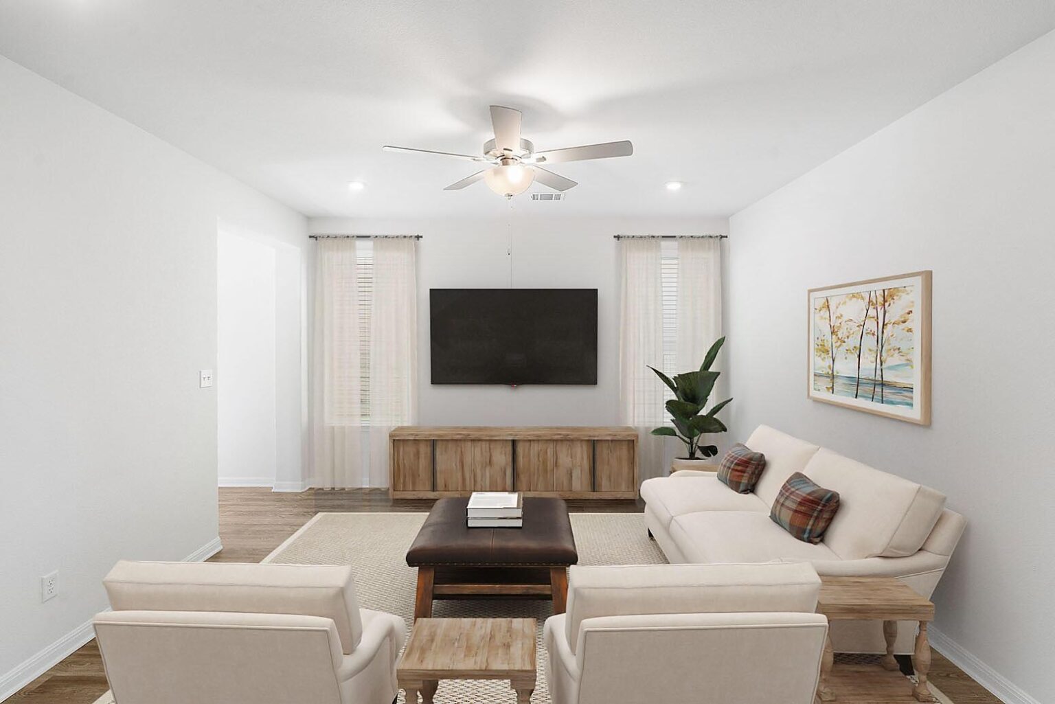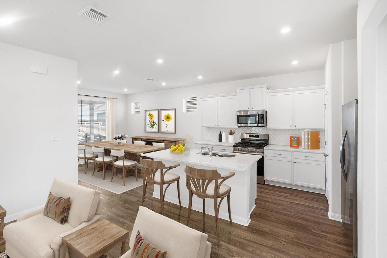 The Riverside floor plan boasts 1,377 sq. ft. of thoughtfully designed living space, perfect for modern living. This charming home features three spacious bedrooms and two full baths, offering comfort and versatility for families or guests. The open-concept layout connects the kitchen, dining, and living areas, creating an ideal space for entertaining or everyday relaxation. The primary suite includes a private ensuite bathroom and ample closet space for added convenience. A two-car garage provides secure parking and additional storage options. With its smart design and stylish finishes, the Riverside floor plan offers a perfect balance of functionality and elegance. It's a welcoming space to call home.