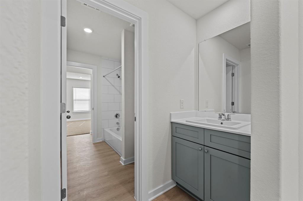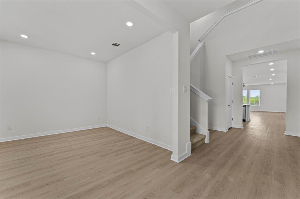 The Windsor is a spacious two-story home offering 3,081 sq. ft. of versatile living space designed for all families. The main floor features a sleek kitchen with a walk-in pantry, a large dining area, and an open living room that leads to a covered patio—ideal for entertaining. A private primary suite is tucked away downstairs with dual vanities, a soaking tub, and a large walk-in closet. Upstairs, a central game room anchors four secondary bedrooms, each with their own walk-in closet for maximum storage. With three full bathrooms, a powder room, and a first-floor flex space perfect for a home office, this layout delivers both comfort and flexibility. A two-car garage, high ceilings, and “open to below” design add an elevated touch to everyday living.