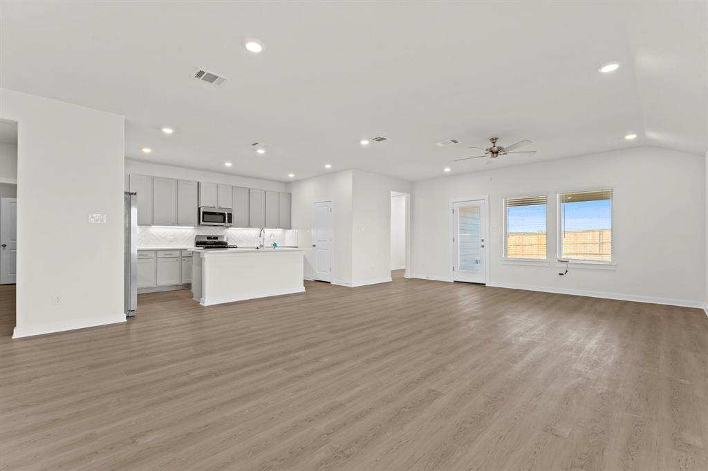 The Killeen floorplan brings 2,246 square feet of single-story comfort and versatility to life, offering four bedrooms, three full baths, and thoughtful open-concept living. At the heart of the home is a modern kitchen featuring a central island, walk-in pantry, and seamless connection to the casual dining and living areas, all leading to a covered patio perfect for relaxing or entertaining. The private primary suite includes a spacious walk-in closet and spa-style bath with a separate shower and dual vanities. A flex space adjacent to the primary bedroom adds extra versatility—perfect for a home office, workout zone, or reading nook. Three additional bedrooms are strategically placed for both privacy and convenience, with two full secondary baths and a centrally located laundry room. Finishes like quartz countertops, sleek tile floors, shaker cabinetry, and Moen® chrome fixtures complement the home’s elevated aesthetic. With energy-efficient upgrades and durable construction, the Killeen is designed for everyday ease and long-term peace of mind.