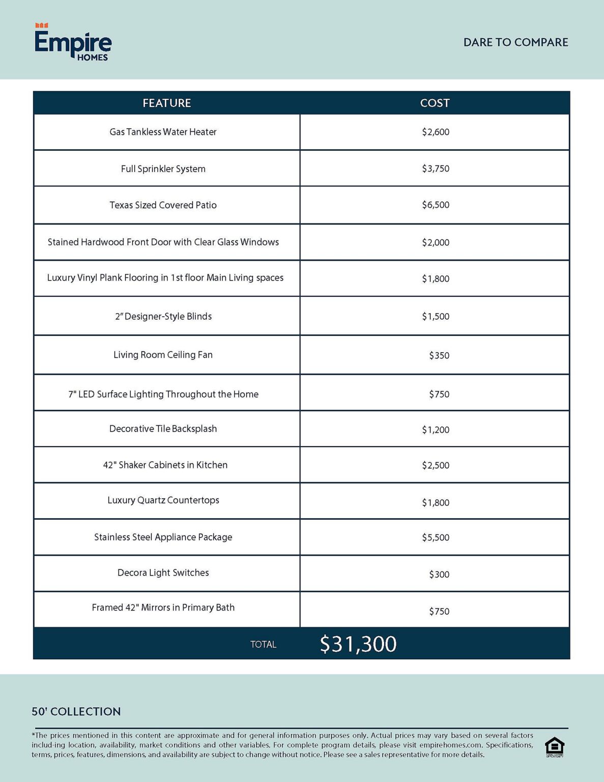 With Empire Homes, you get $50,000 more in standard features without spending more each month. Plus, low rates and closing costs available on select homes for a limited time.