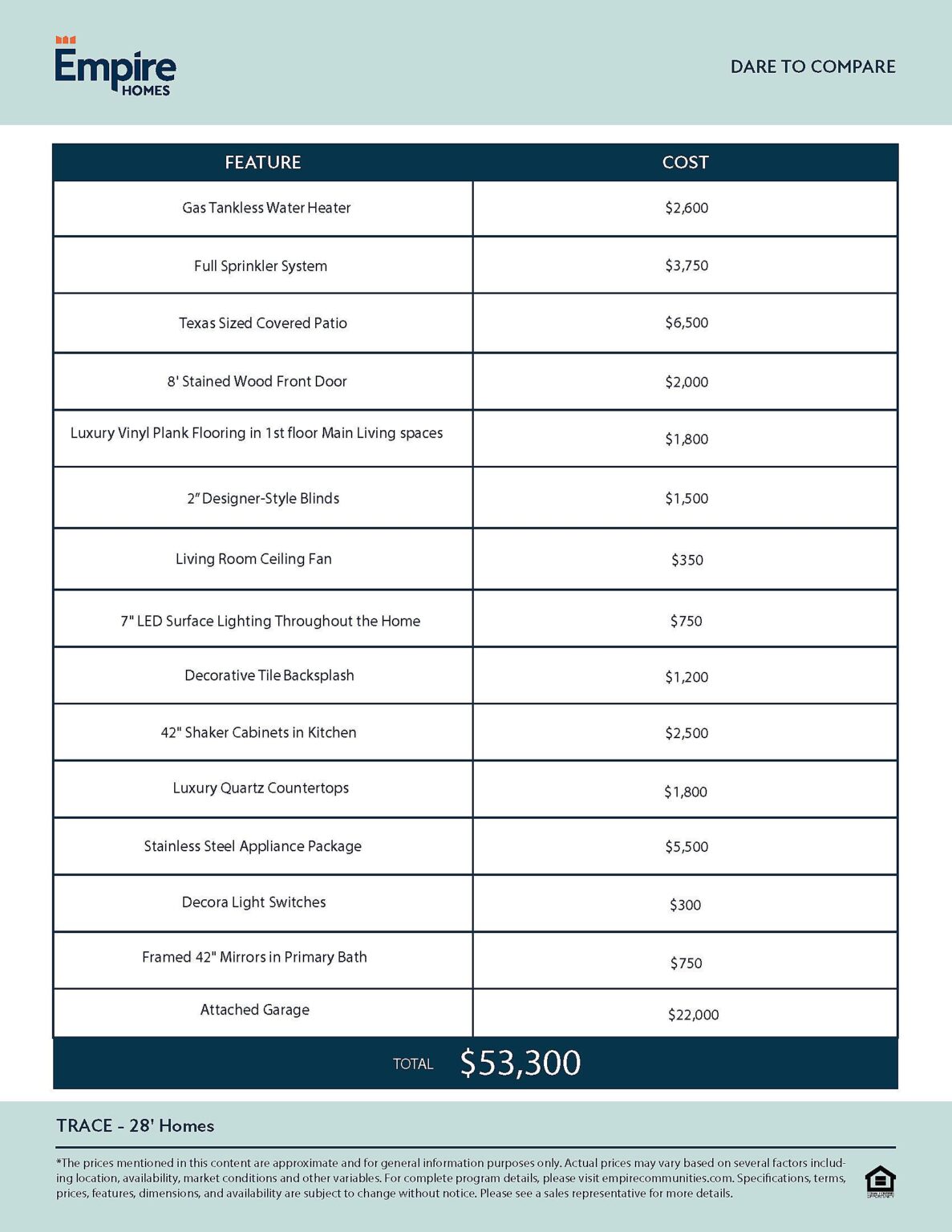 With Empire Homes, you get $50,000 more in standard features without spending more each month. Plus, low rates and closing costs available on select homes for a limited time.