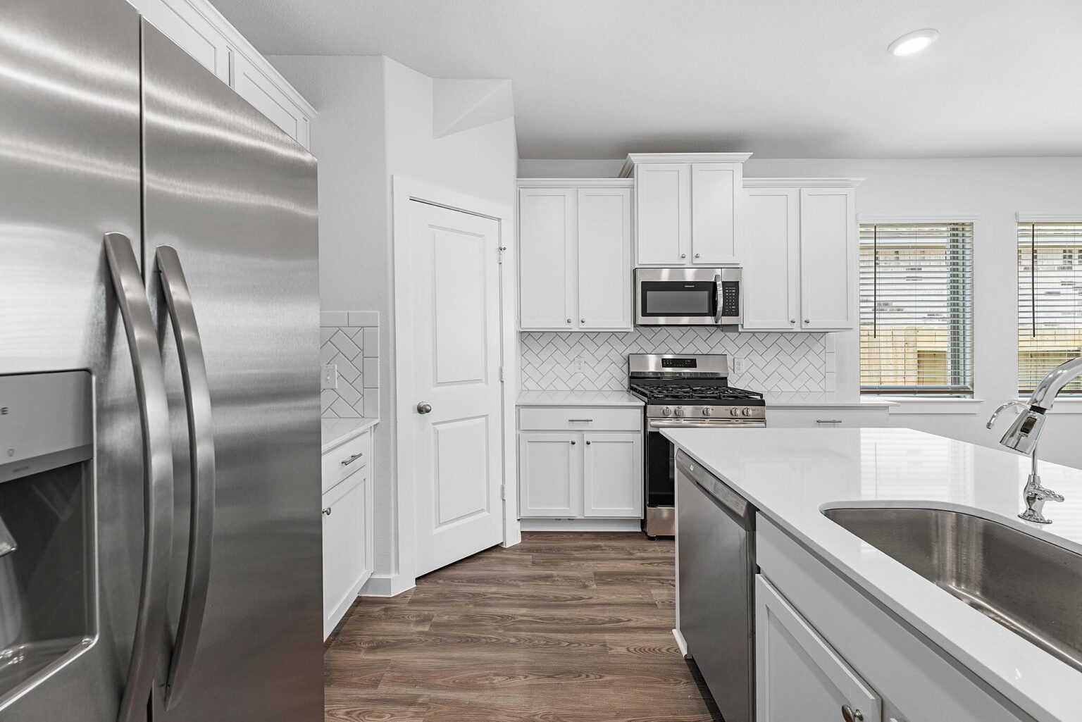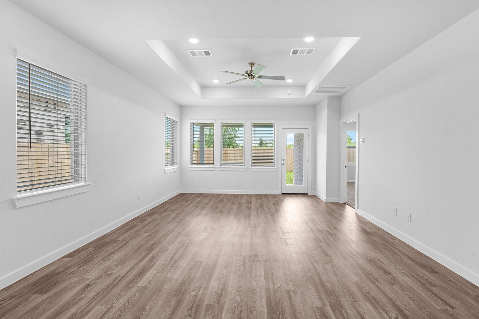 An ease of movement throughout the home is what sets the Gaines floor plan apart from the rest. Featuring 4 bedrooms and 3 full bathrooms, the Gaines has a spacious kitchen with a generous dining area. At the back of the home, a sizable primary retreat offers ample privacy, a spacious walk-in closet and elegant ensuite. The first floor is rounded out by two additional bedrooms and a full bath. The second floor is decked out with a sizeable game room along with the fourth bedroom and third full bath. Those who love to dine or entertain al fresco will love the home’s backyard covered patio.