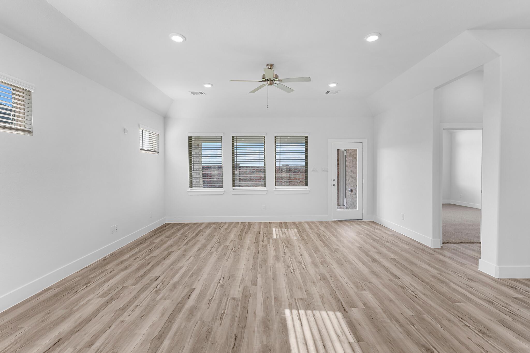 Discover the epitome of comfort and versatility in this stunning single-story residence boasting a captivating 4-bed, 3-bath Aspen floor plan. As you step into the welcoming foyer, a seamless transition unfolds, guiding you into the expansive open-concept living and dining area. The heart of the home, the primary retreat, awaits at the rear, ensuring a tranquil and private haven.