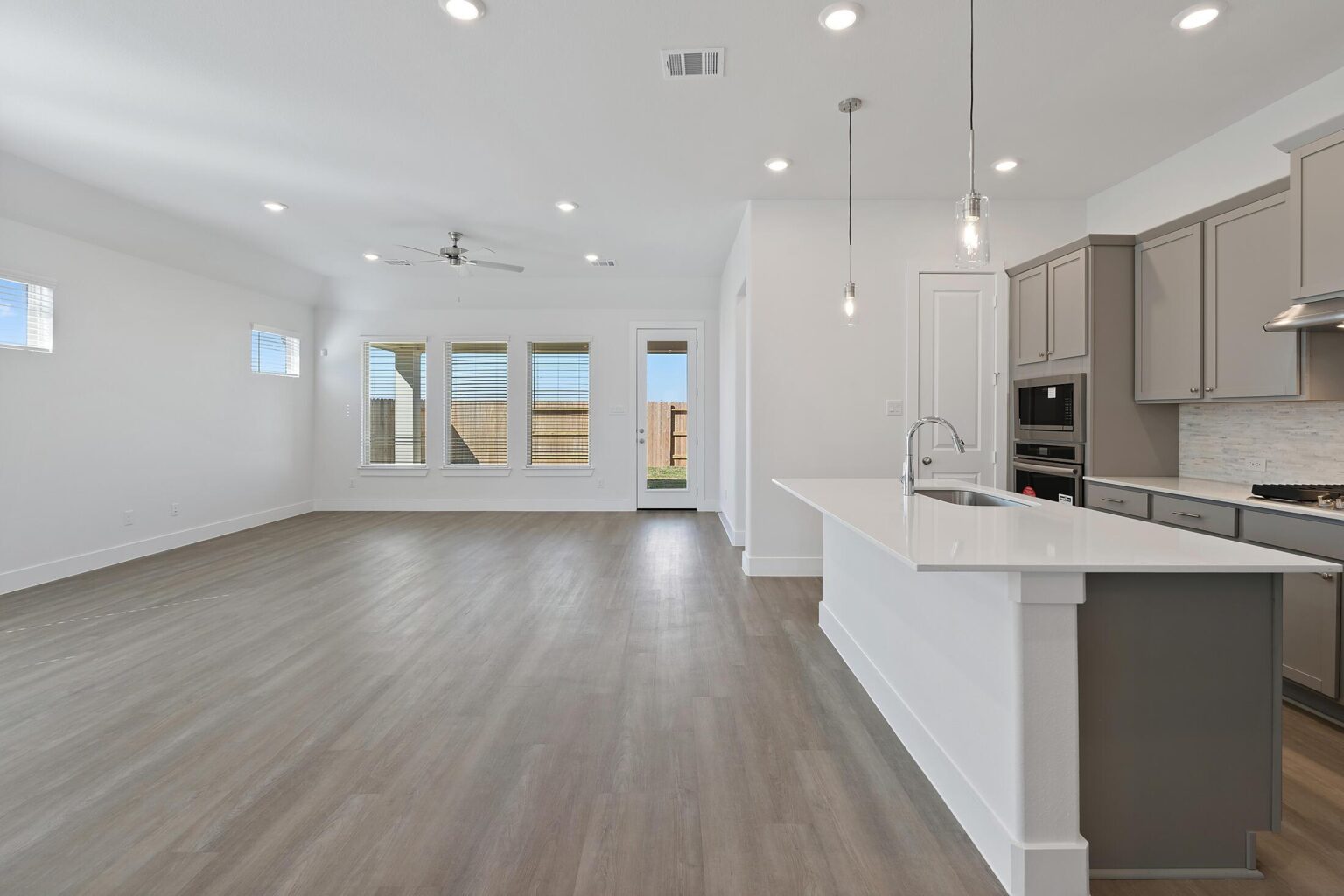Discover the epitome of comfort and versatility in this stunning single-story residence boasting a captivating 4-bed, 3-bath Aspen floor plan. As you step into the welcoming foyer, a seamless transition unfolds, guiding you into the expansive open-concept living and dining area. The heart of the home, the primary retreat, awaits at the rear, ensuring a tranquil and private haven.