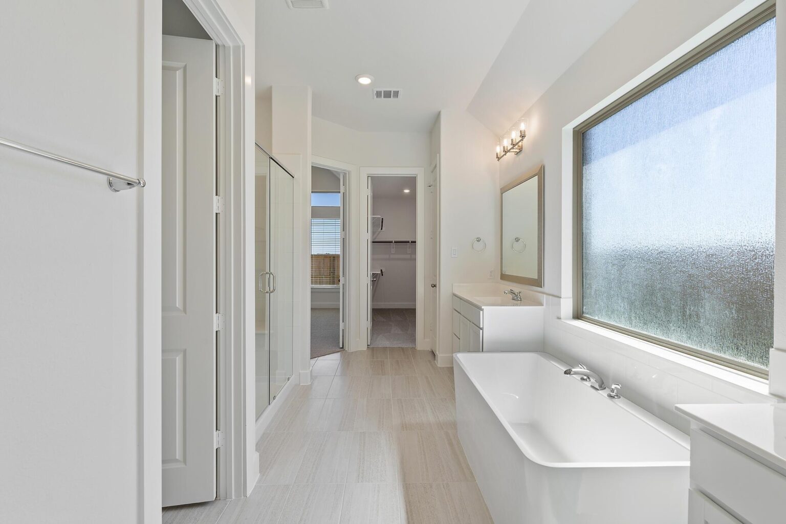 Gated & Security monitored section! Don’t miss this brand-new home in the River Ranch Master-planned Neighborhood, featuring 4 bedrooms, 3 full bathrooms, brick and wood exterior, vinyl and tile flooring, open-concept living, sprinkler system, and 3-car attached garage. The island kitchen is equipped with quartz countertops, tile backsplash, gas range, stainless steel appliances including refrigerator, breakfast bar, soft closing cabinets and drawers, and walk-in pantry. The relaxing primary suite is complete with a vaulted ceiling, walk-in closet, dual vanities, luxurious soaking tub, and separate shower. This Energy Star qualified home boasts Energy Star appliances, a reflective roof, high-efficiency HVAC, insulated windows, attic vents, and more! Community amenities include a crystal lagoon, cabanas, swim-up bar, and walking trails!
