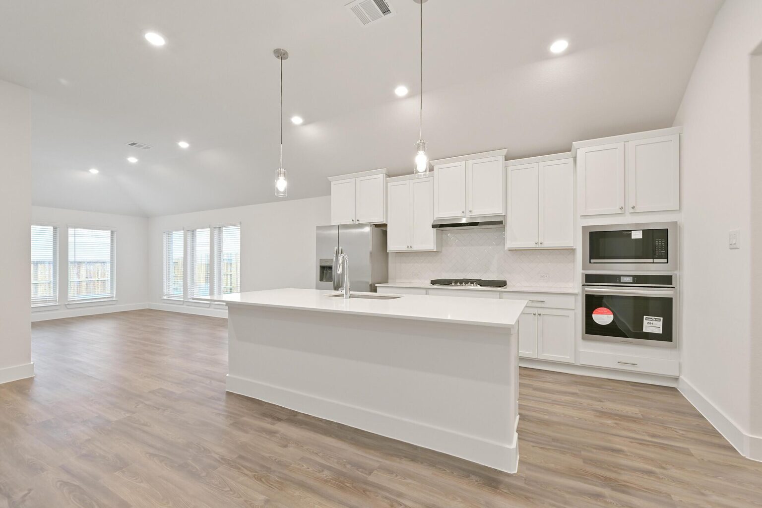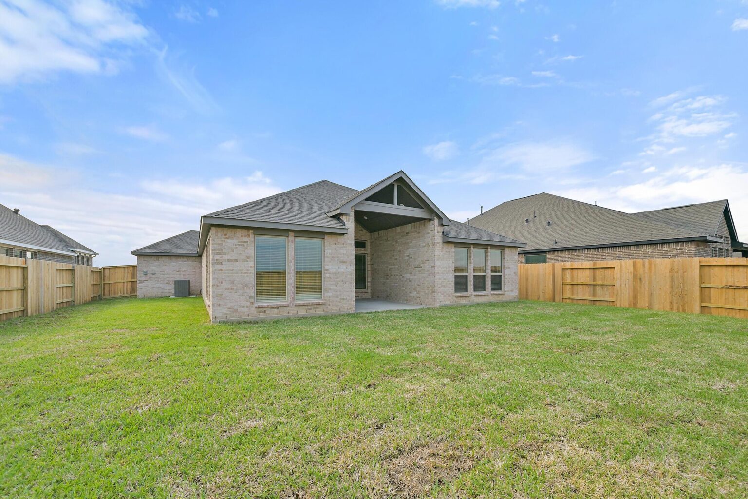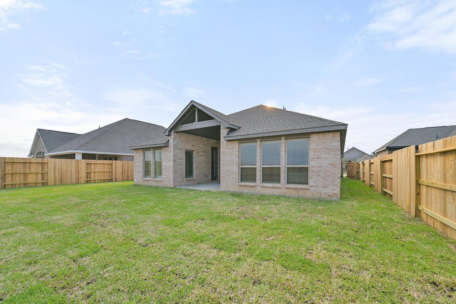 Gated Section! Enjoy every moment spent in this brand-new home with no back neighbors in the Empire River Ranch community, featuring brick and wood exterior, wood-like vinyl and tile flooring, open-concept living, 3 bedrooms, 2 full bathrooms, a masonry fence, covered patio, sprinkler system, and 3-car attached garage. The island kitchen is equipped with quartz countertops, tile backsplash, gas range, stainless steel appliances, breakfast bar, soft closing cabinets and drawers, and walk-in pantry. The serene primary suite is complete with a walk-in closet, double sinks, and oversized shower. This Energy Star qualified home boasts Energy Star appliances, a reflective roof, high-efficiency HVAC, insulated windows, attic vents, and more! Community amenities include a crystal lagoon, cabanas, swim-up bar, and walking trails. Located off US 90 and N Hwy 146, residents are near dining & shopping in central Dayton and Liberty. Zoned to Dayton ISD.
