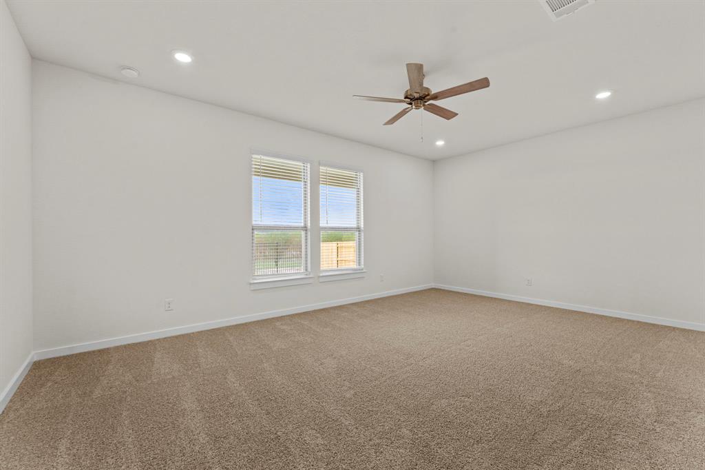 The Windsor is a spacious two-story home offering 3,081 sq. ft. of versatile living space designed for all families. The main floor features a sleek kitchen with a walk-in pantry, a large dining area, and an open living room that leads to a covered patio—ideal for entertaining. A private primary suite is tucked away downstairs with dual vanities, a soaking tub, and a large walk-in closet. Upstairs, a central game room anchors four secondary bedrooms, each with their own walk-in closet for maximum storage. With three full bathrooms, a powder room, and a first-floor flex space perfect for a home office, this layout delivers both comfort and flexibility. A two-car garage, high ceilings, and “open to below” design add an elevated touch to everyday living.
