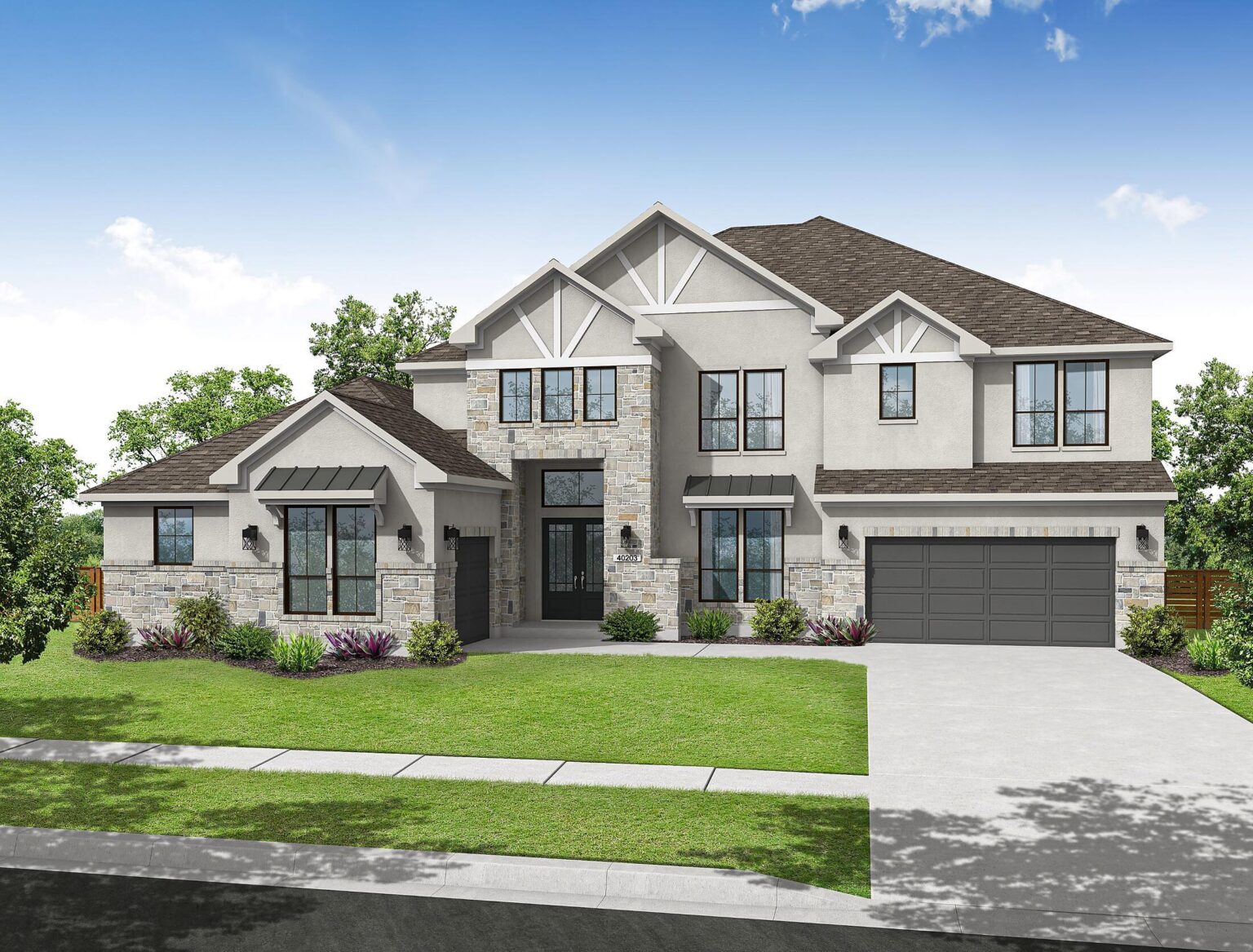 The Amherst delivers elegance, and flexibility across 4,741 sq. ft. of gorgeously planned living space. A sweeping curved staircase greets you in the grand foyer, flanked by a private study and formal dining room. The heart of the home opens to a bright and expansive kitchen, complete with quartz countertops, a wine grotto, and chef-grade Electrolux® appliances, all flowing into the casual living area and Texas-sized covered patio. The main floor primary suite is your personal escape—featuring a spa-inspired bath with freestanding tub, dual Delta® showerheads, and a walk-through designer closet connecting to the laundry room. A secondary bedroom with full bath sits quietly in its own wing, perfect for guests or extended family. Upstairs, three more bedrooms join a game room, media room, and a covered balcony that makes a statement of its own. Prewired surround sound, Energy Star® certification, and thoughtful tech-ready finishes make this home as smart as it is stunning. The Amherst is luxury that actually lives well.