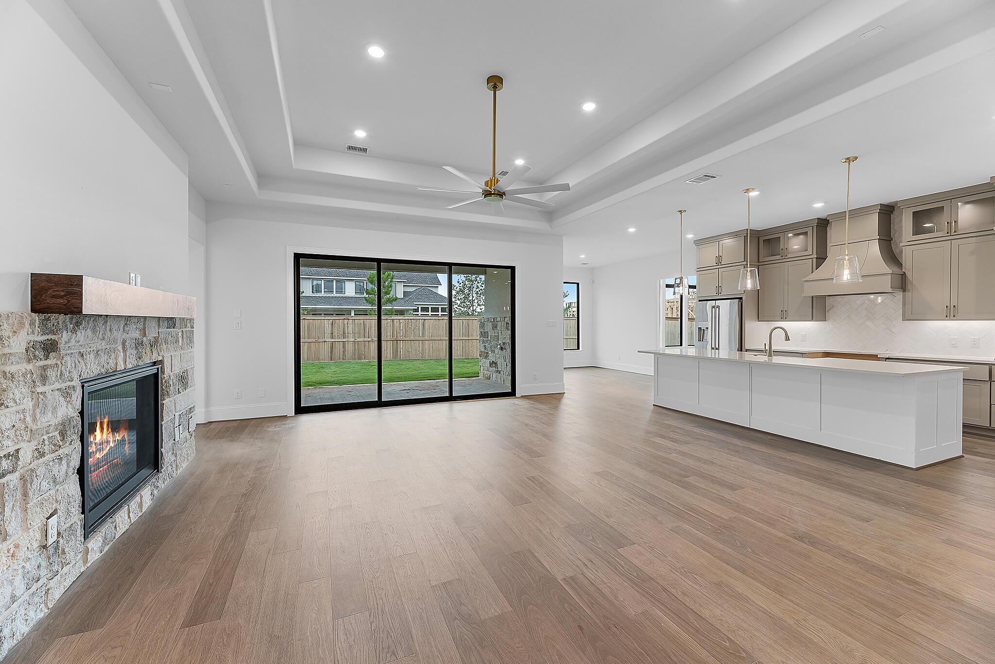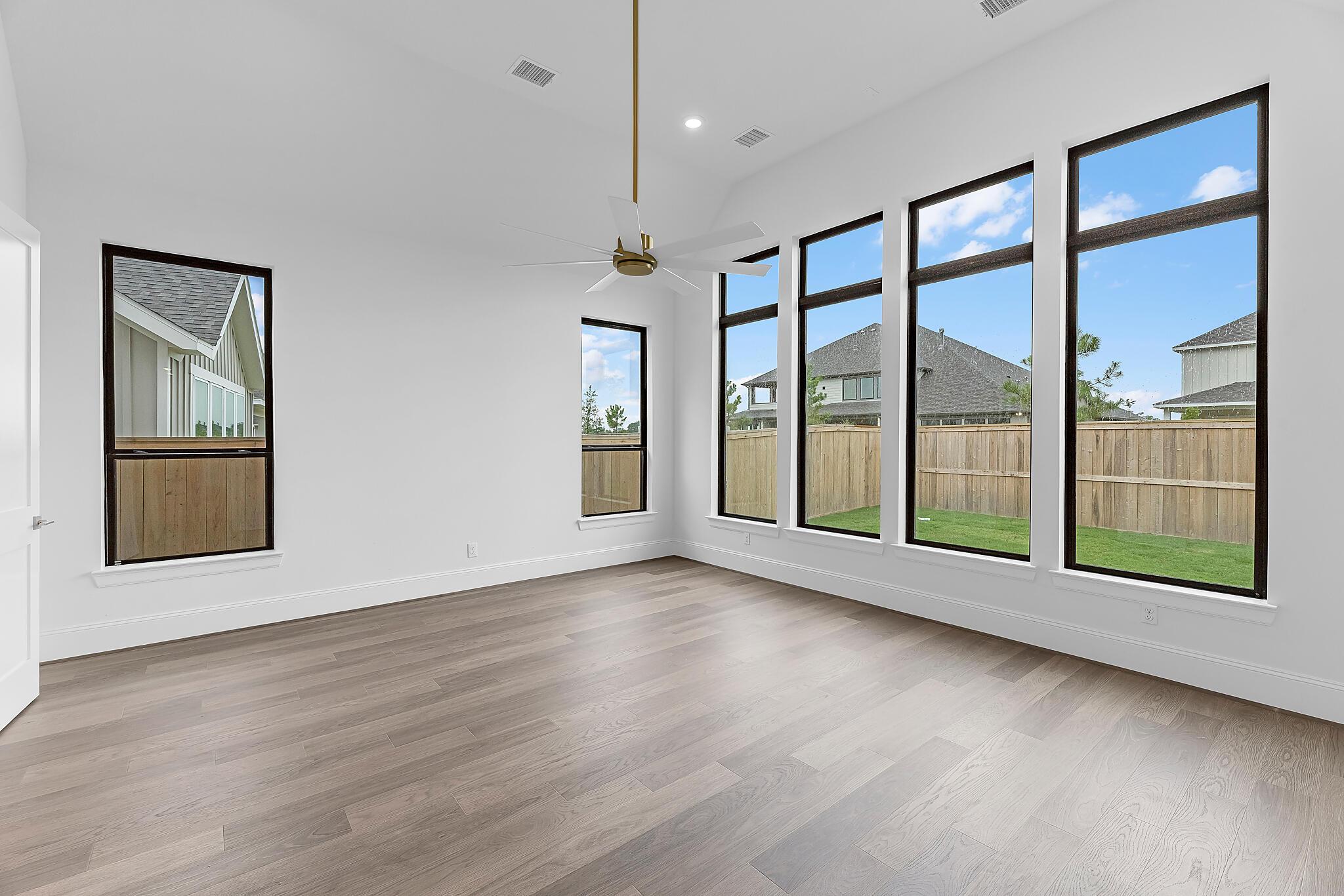 The Canyon floor plan in Fulshear Lakes offers 3,893 sq. ft. of expertly crafted living space with 4 bedrooms, 4.5 baths, and a private-entry casita with a sitting area—ideal for guests or multigenerational living. The expansive living room features a custom wine grotto with a bar sink, wine fridge, and under-cabinet lighting, opening to a Texas-sized covered patio with 12’-16’ sliding glass doors and outdoor kitchen pre-plumbing. A chef-inspired kitchen includes Benedettini® soft-close cabinetry, quartz countertops, a 36” 6-burner cooktop, double oven with built-in air fryer and sous vide, and a French-door refrigerator. The luxurious primary suite boasts a freestanding tub, dual Delta® showerheads, and an oversized frameless glass shower. The game room includes a beverage center and opens to a covered balcony. Energy Star® certified and built with high-efficiency Lennox® HVAC, Tech Shield® radiant barrier, and LED lighting throughout, this home is as energy-smart as it is stylish. Additional highlights include smart home prewiring, dual garages with optional swing-in layout, and designer finishes throughout.
