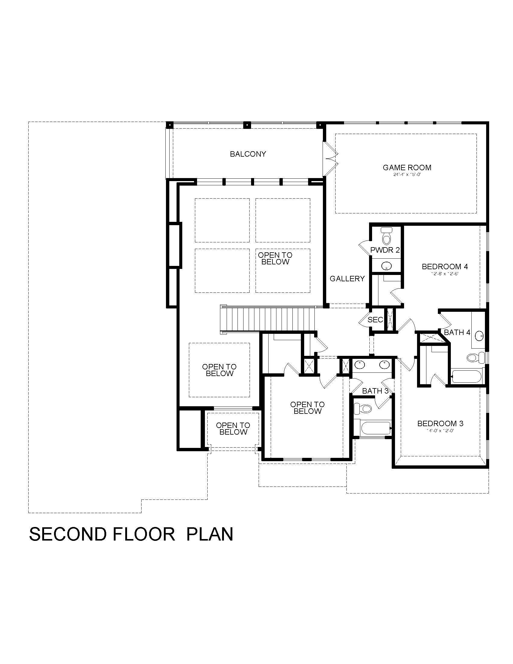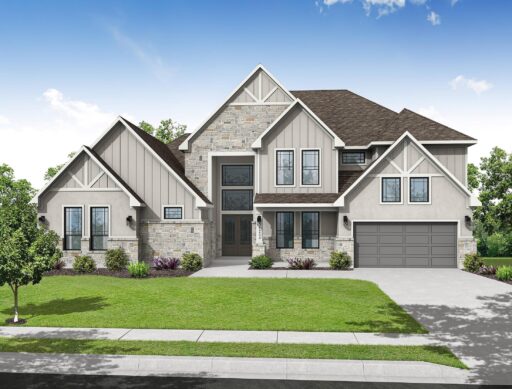 The Bridgeport floorplan delivers an impressive 4,475 sq. ft. of elevated design and everyday function across two beautifully crafted stories. The first level centers around an expansive open-concept living space, anchored by a gourmet kitchen with quartz countertops, Benedettini® cabinetry, and a 36″ 6-burner cooktop. A casual dining area opens to the Texas-sized covered patio—ideal for indoor-outdoor entertaining—while a dramatic two-story study and wine grotto add charm and sophistication. The private first-floor primary suite features a spa-inspired bath with a freestanding tub, dual Delta® showerheads, and a walk-in closet that dreams are made of. Upstairs, the layout shines with three spacious bedrooms, two full baths, a game room with balcony access, and an open gallery overlooking the main living space below. With five total bedrooms, five bathrooms, and thoughtful additions like a morning bar, porte-cochère, and energy-saving tankless water heater, the Bridgeport perfectly blends bold architecture with livable luxury. Whether hosting guests or enjoying quiet moments, this home is designed to meet every need—stylishly.