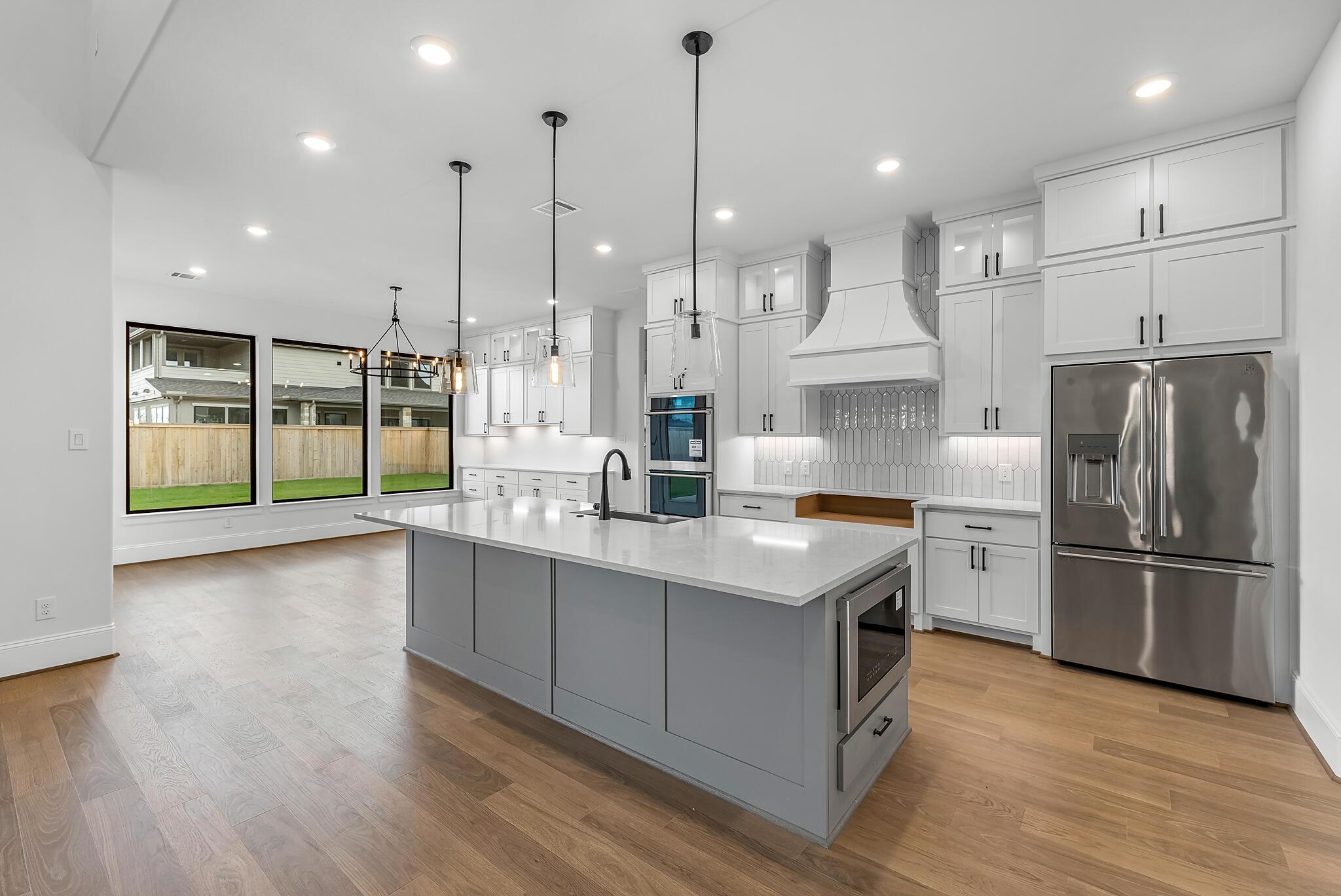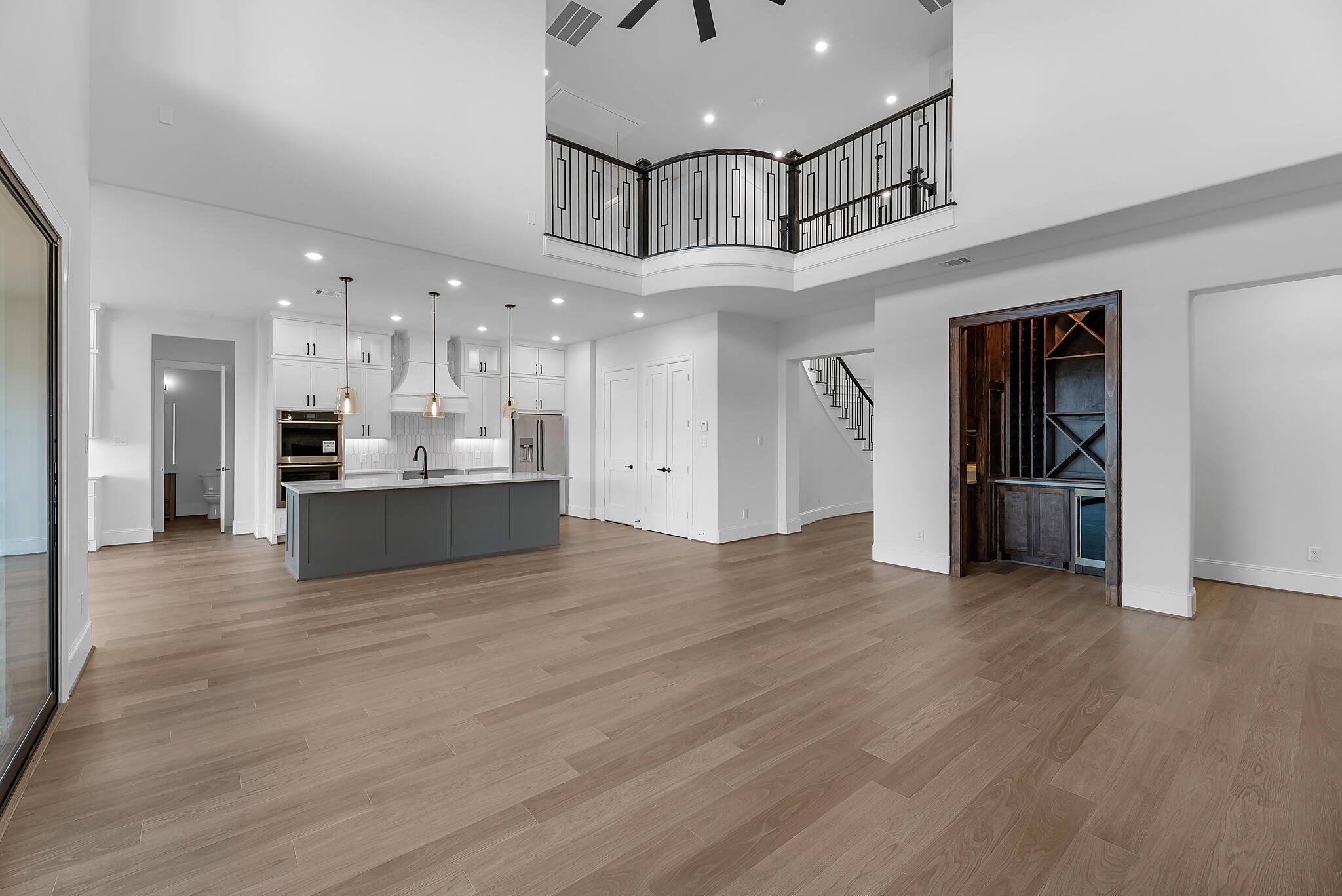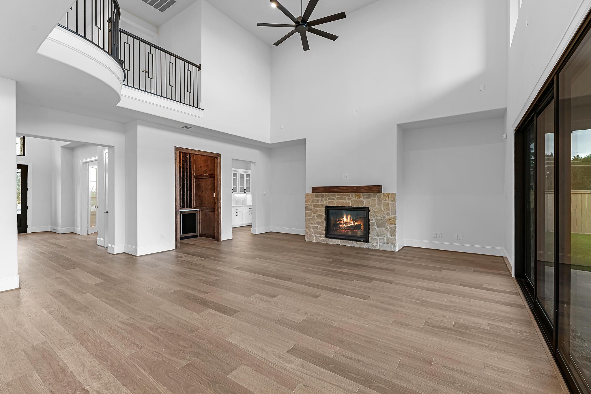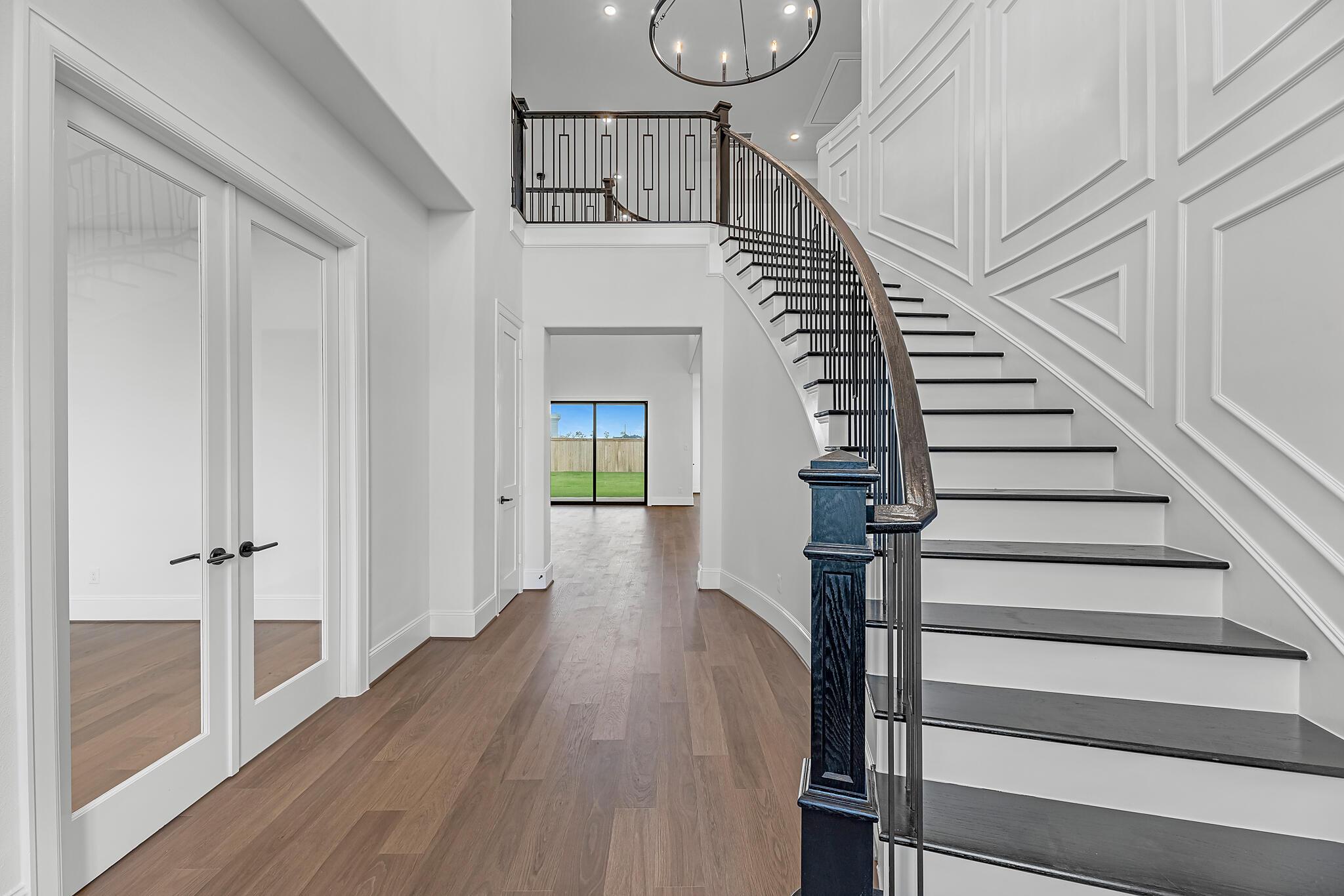 The Kingsville floorplan is a stunning two-story home offering 4,008 sq. ft. of smart, stylish living. This thoughtfully designed layout centers around an expansive open-concept living area that flows effortlessly into the kitchen and casual dining space, perfect for entertaining or everyday comfort. The private first-floor primary suite feels like a retreat, featuring a spa-inspired bath, oversized walk-in closet, and even a convenient morning bar. Upstairs, a dramatic curved staircase leads to a spacious game room, three secondary bedrooms, and a covered balcony—all connected by an open gallery overlooking the main living space. A dedicated study, wine grotto, and the three-car garage with a porte-cochère adds elegance and function throughout. The gourmet kitchen includes quartz countertops, Electrolux® appliances, and soft-close Benedettini® cabinets, while energy-efficient details like LED lighting and a tankless water heater bring everyday comfort and savings. With a layout that blends open space with private escapes, Kingsville offers the perfect balance of luxury and livability.