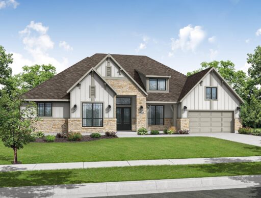 The Sanderson floorplan offers a thoughtful and spacious single-story design with 3,888 sq. ft. of functional elegance. At the heart of the home is a wide open-concept living area that flows seamlessly into the kitchen and casual dining space, ideal for both everyday living and entertaining. The kitchen is equipped with a 36" 6-burner cooktop, double ovens with air fryer and sous vide, as well as a quartz-topped island perfect for gatherings. The primary suite is privately tucked in the back corner with direct patio access, a spa-like bath featuring a freestanding tub and frameless glass shower, and a custom walk-in closet. Three secondary bedrooms are strategically placed—two near the front with a shared bath and one in its own wing with a full bath nearby—ideal for guests or multi-generational living. A formal dining room, private study, and a versatile game or media room provide both quiet retreats and entertainment spaces. Outdoors, a Texas-sized covered patio with sliding glass doors invites easy indoor-outdoor living, and the home’s tankless water heater and LED lighting add everyday efficiency. Every room is placed with purpose, creating a smooth, intuitive flow that supports a variety of lifestyles.