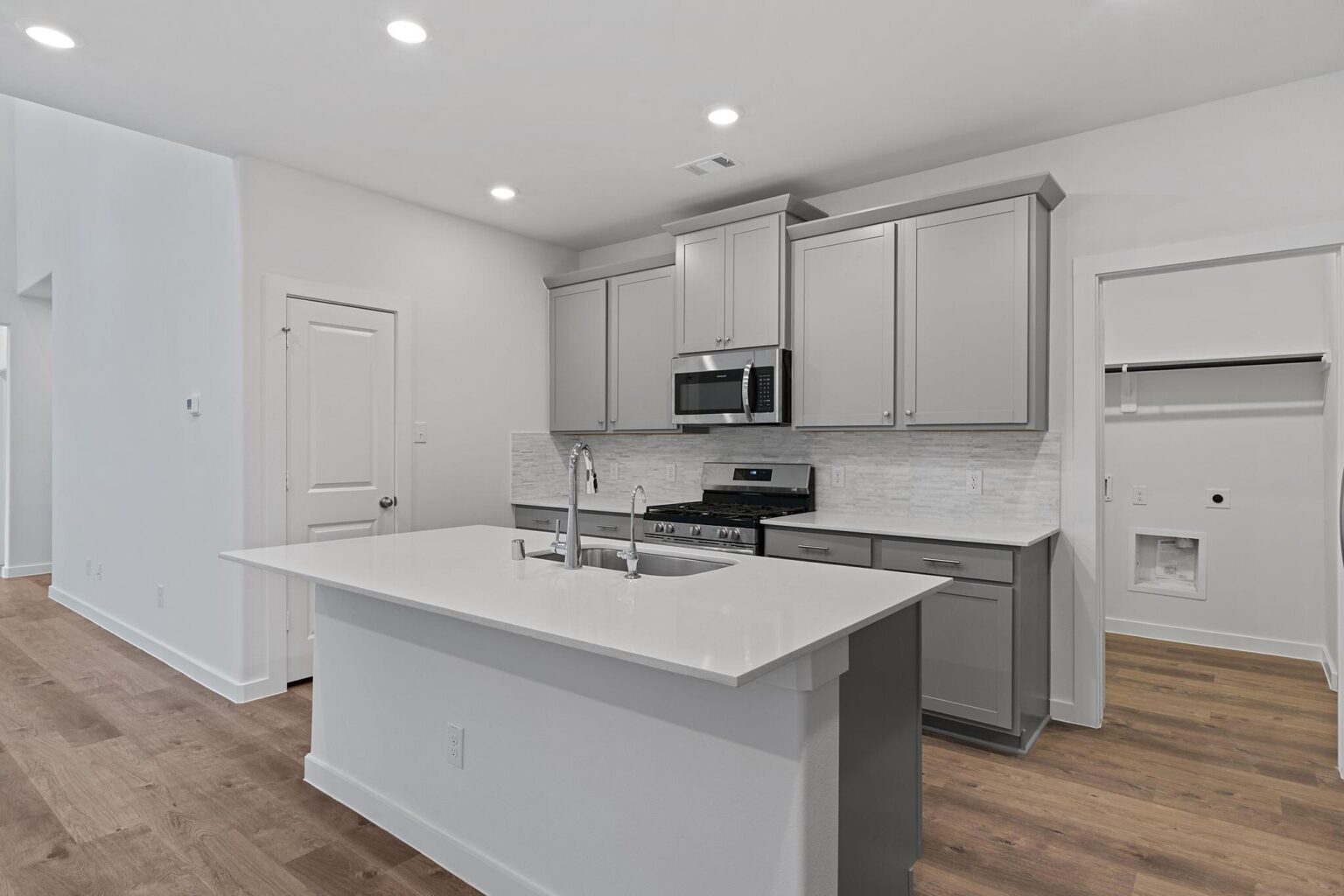 This stunning 2-story home boasts 4 bedrooms and 2.5 bathrooms, designed with an open-concept dining and family room for effortless living. The kitchen showcases elegant 42-inch cabinets and ample counter space, perfect for culinary adventures. Enjoy additional entertainment options in the expansive upstairs game room or on the inviting covered patio. The primary suite features a luxurious en-suite bath and a generous walk-in closet, conveniently connected to the laundry room for your convenience.