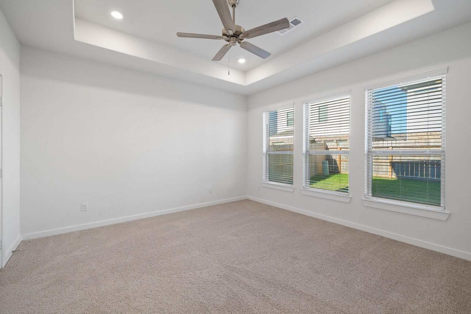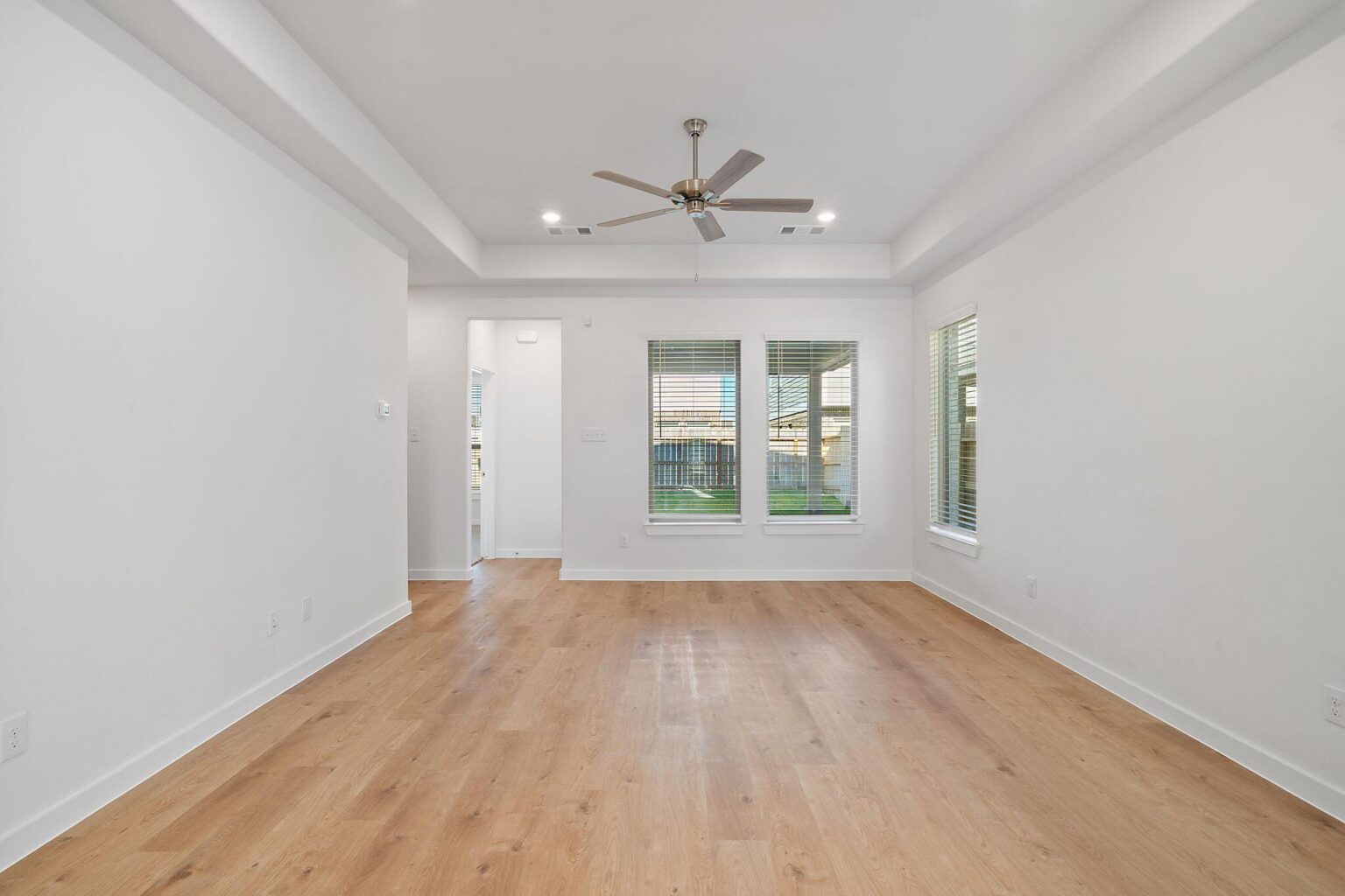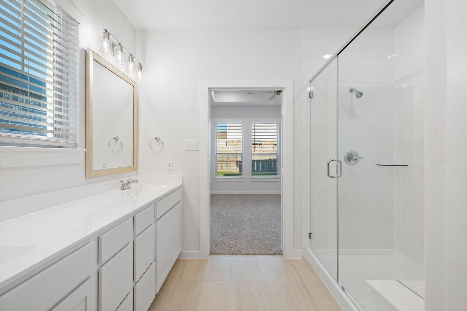 This stunning 2-story home boasts 4 bedrooms and 2.5 bathrooms, featuring an inviting open-concept design that seamlessly connects the dining and family rooms. The kitchen is enhanced with elegant 42-inch cabinets and ample counter space, making meal preparation a breeze. Entertain effortlessly in the expansive upstairs game room or media room, or enjoy the outdoors on the covered patio. The primary suite serves as a luxurious retreat, complete with a spa-like en-suite bath and a generous walk-in closet, conveniently connected to the laundry room for added ease.
