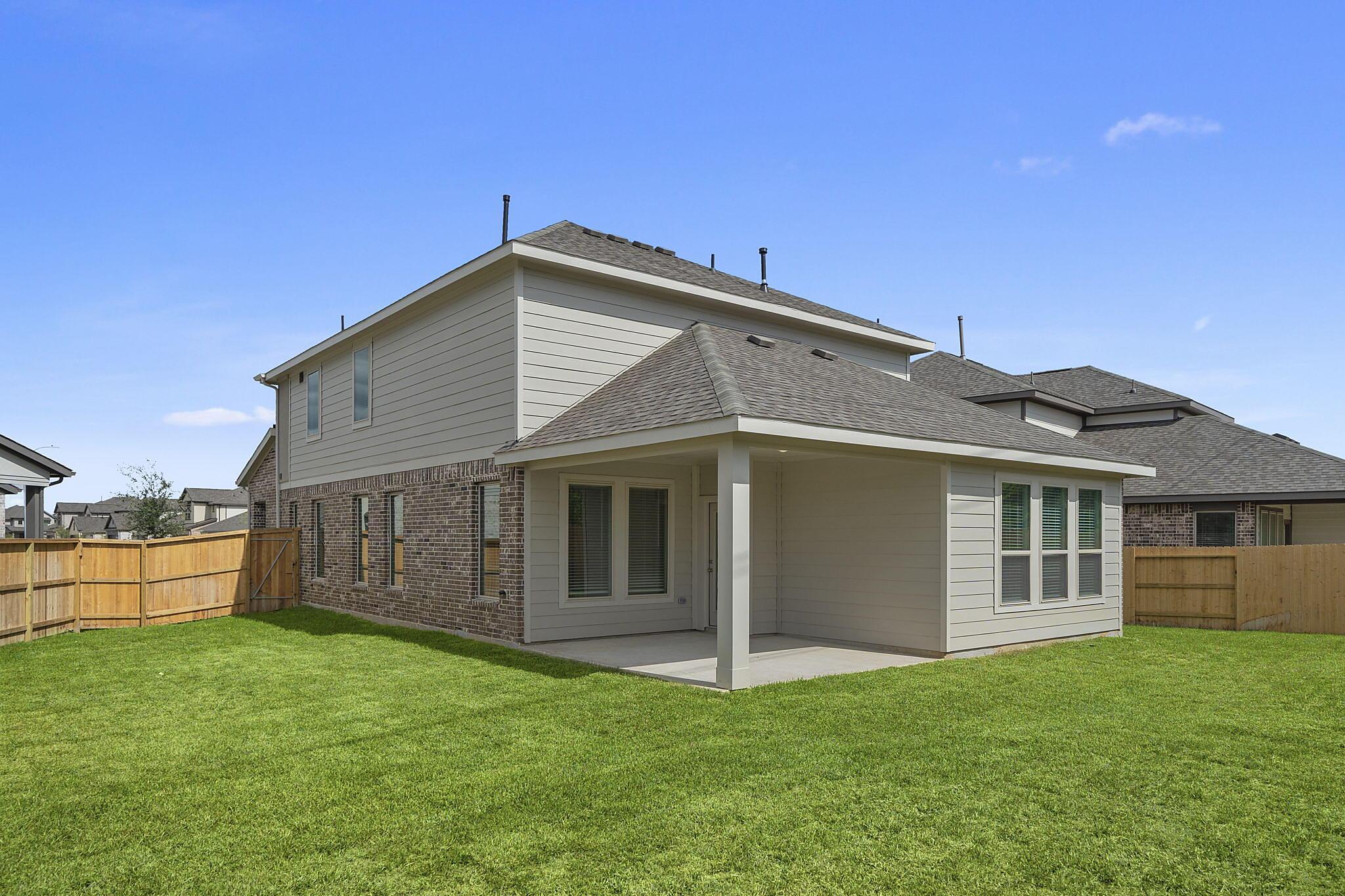 This stunning 2-story home boasts 4 bedrooms and 2.5 bathrooms, featuring an inviting open-concept design that seamlessly connects the dining and family rooms. The kitchen is enhanced with elegant 42-inch cabinets and ample counter space, making meal preparation a breeze. Entertain effortlessly in the expansive upstairs game room or media room, or enjoy the outdoors on the covered patio. The primary suite serves as a luxurious retreat, complete with a spa-like en-suite bath and a generous walk-in closet, conveniently connected to the laundry room for added ease.
