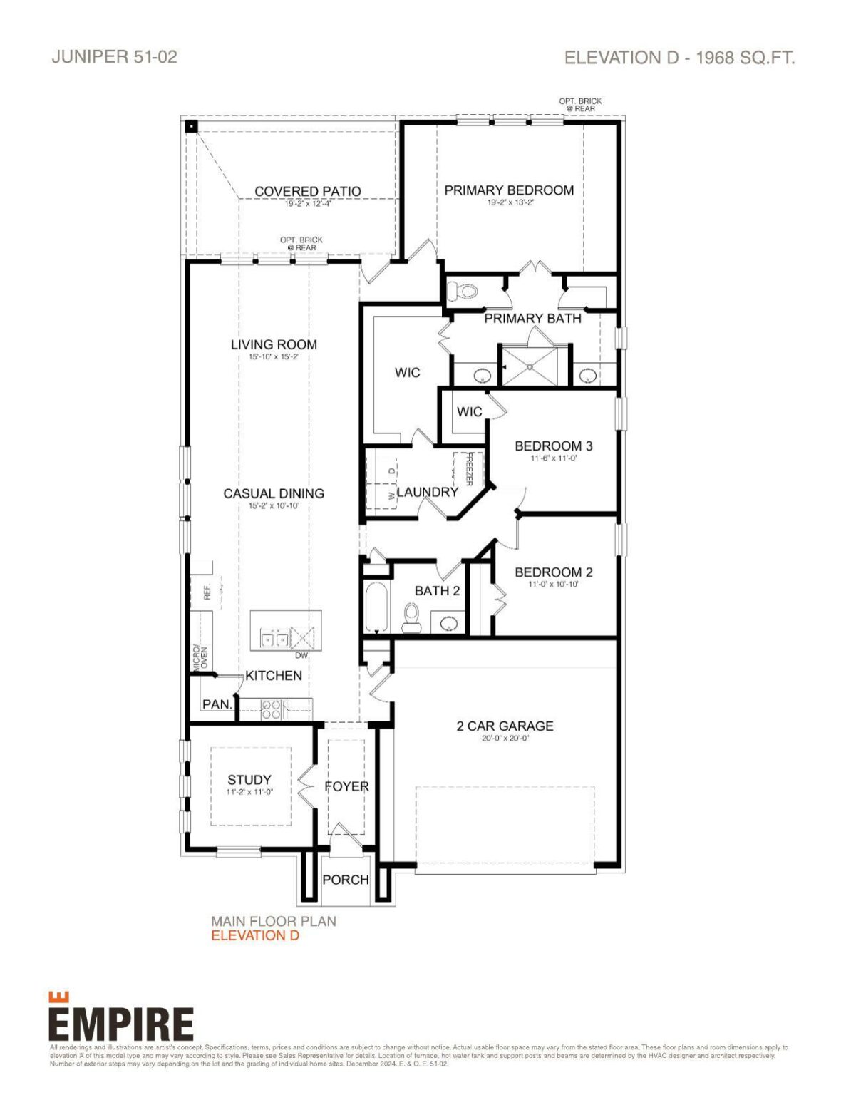 The spacious Juniper floor plan has everything you need to enjoy everyday life, from large study and spaces to a grand kitchen, living and dining area and a sizable primary retreat tucked neatly away at the back of the home. As a single-story home, the Juniper floor plan offers the convenience of seamless accessibility throughout its well-designed layout.