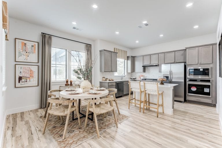 At Zephyr, thoughtfully crafted townhomes blend classic character with modern convenience. Open-concept interiors are designed for seamless living, featuring oversized kitchen islands, private suites, and versatile layouts that adapt to your lifestyle. Sunlit spaces, bespoke finishes, and covered patios create a warm and welcoming atmosphere, while community greenspaces, gravel paths, and shady trees encourage relaxation just outside your door. Two-car side-by-side garages add convenience for those commuting for work or escaping the city for a weekend getaway.