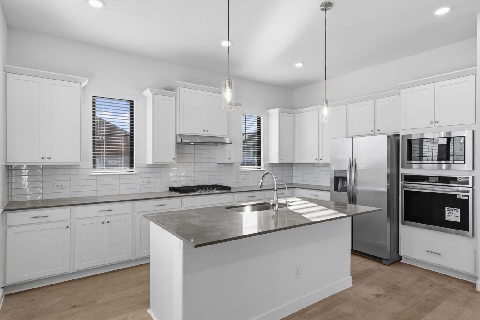 The Cardinal offers an expansive 2,181 square feet of flexible living space across two stories, thoughtfully designed for comfort and flow. The main floor features a spacious open-concept kitchen and dining area, complete with a walk-in pantry and oversized island, seamlessly connecting to the living room and a covered patio—perfect for entertaining. The private primary suite is also located downstairs and includes a large walk-in closet and a luxurious en suite with dual vanities and a glass-enclosed shower. Upstairs, a bright loft anchors three secondary bedrooms, each with easy access to two full bathrooms and a central gallery-style hallway. With finishes like quartz countertops, vinyl plank flooring in common areas, LED lighting, and energy-efficient systems, the Cardinal combines style with smart functionality. Every detail—from the WiFi-enabled garage door to the elegant 8' entry door—reflects the upscale standards of the Indigo community