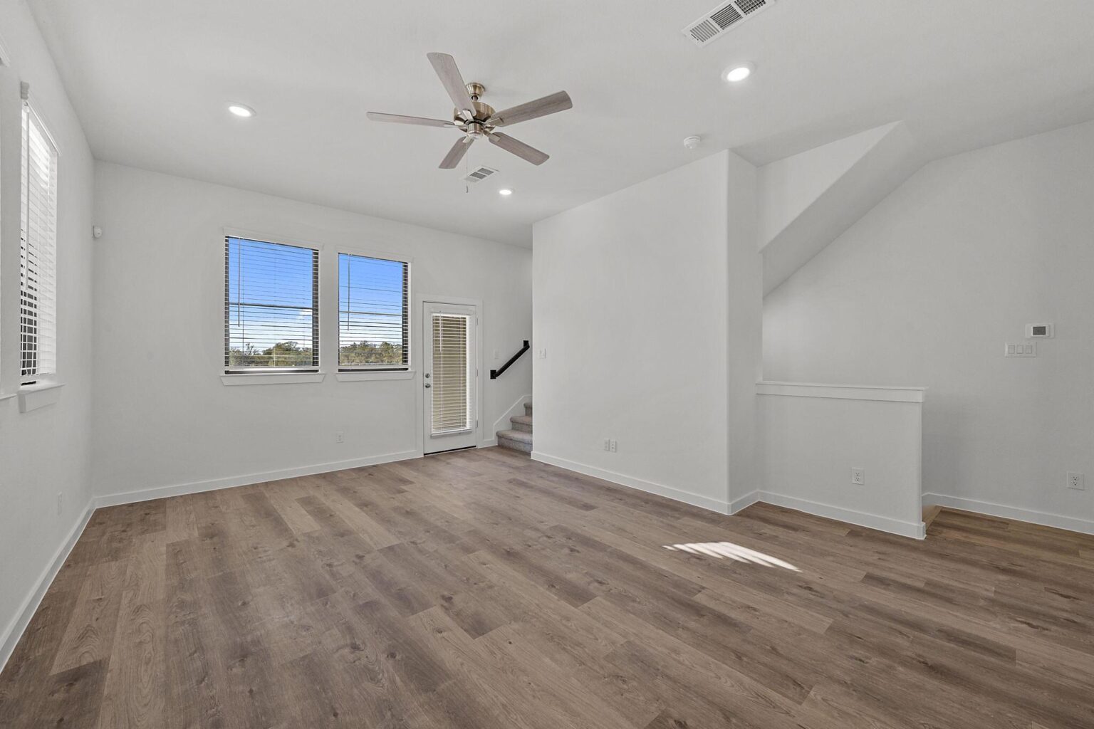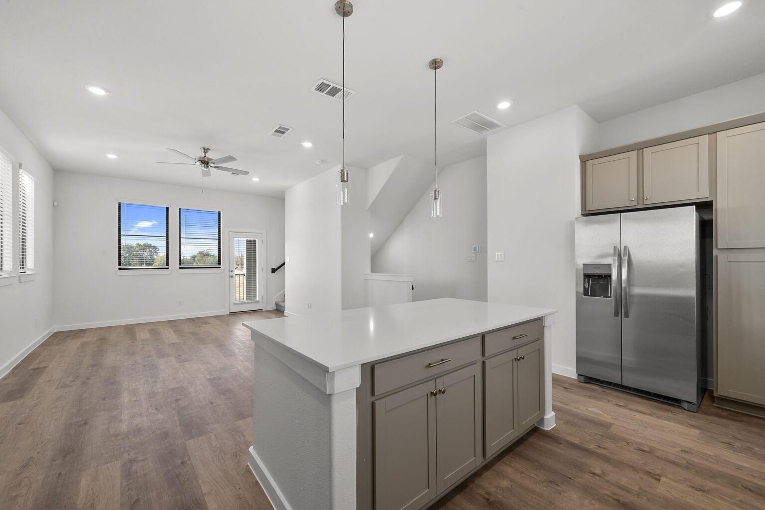 The Cedar floorplan offers 1,566 sq. ft. of modern living across three thoughtfully designed levels. The main floor includes a welcoming foyer, a private bedroom with a full bath, and a two-car garage, making it ideal for guests or a flexible living setup. On the second floor, an open-concept kitchen flows seamlessly into the living and dining area and extends to a private deck, perfect for entertaining or relaxing outdoors. The third floor features a spacious primary suite with a walk-in closet and a well-appointed bath, along with a secondary bedroom and full bath. A centrally located laundry area enhances everyday convenience. With its efficient layout, multiple living zones, and contemporary design, the Cedar plan delivers comfort and functionality in a low-maintenance home.