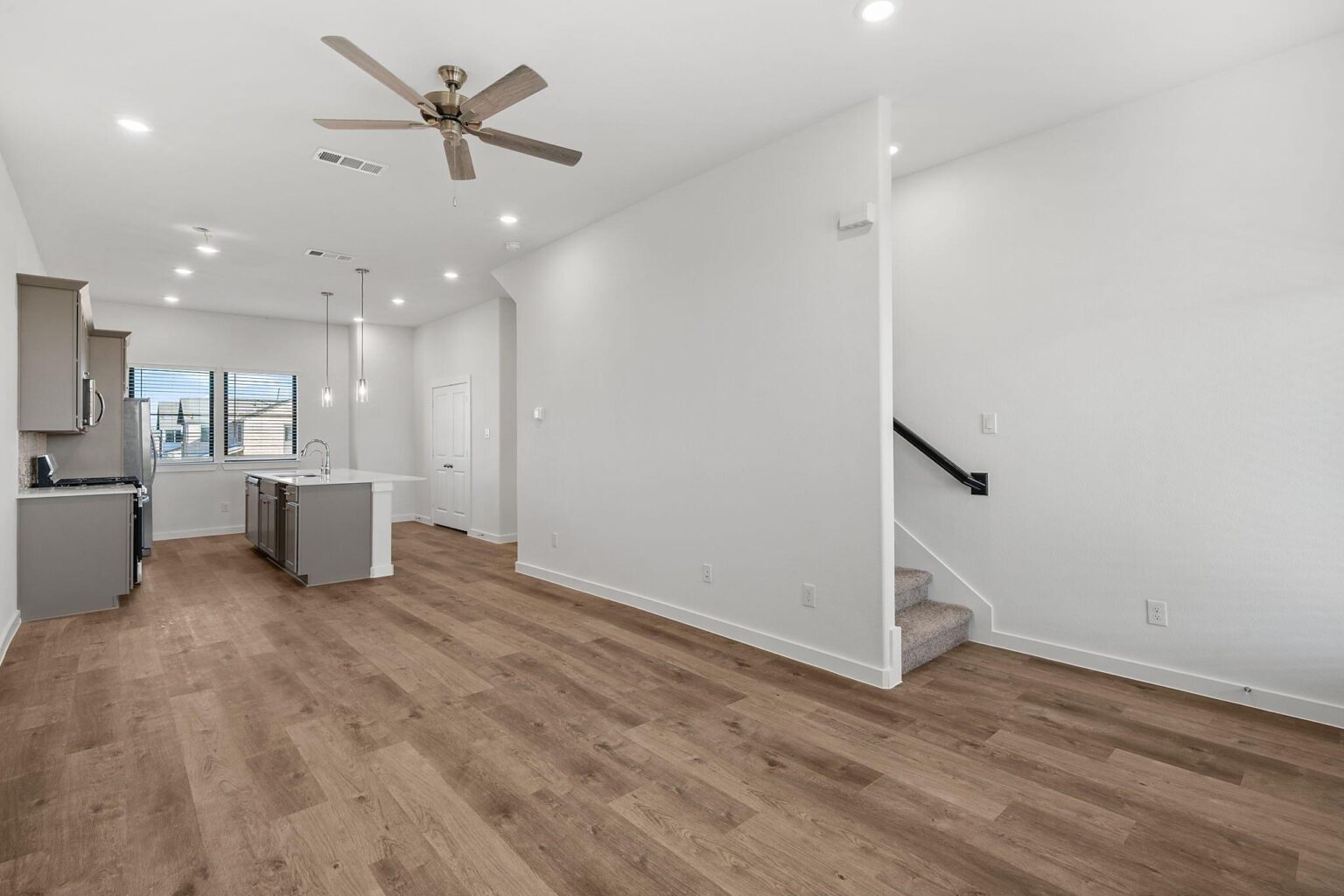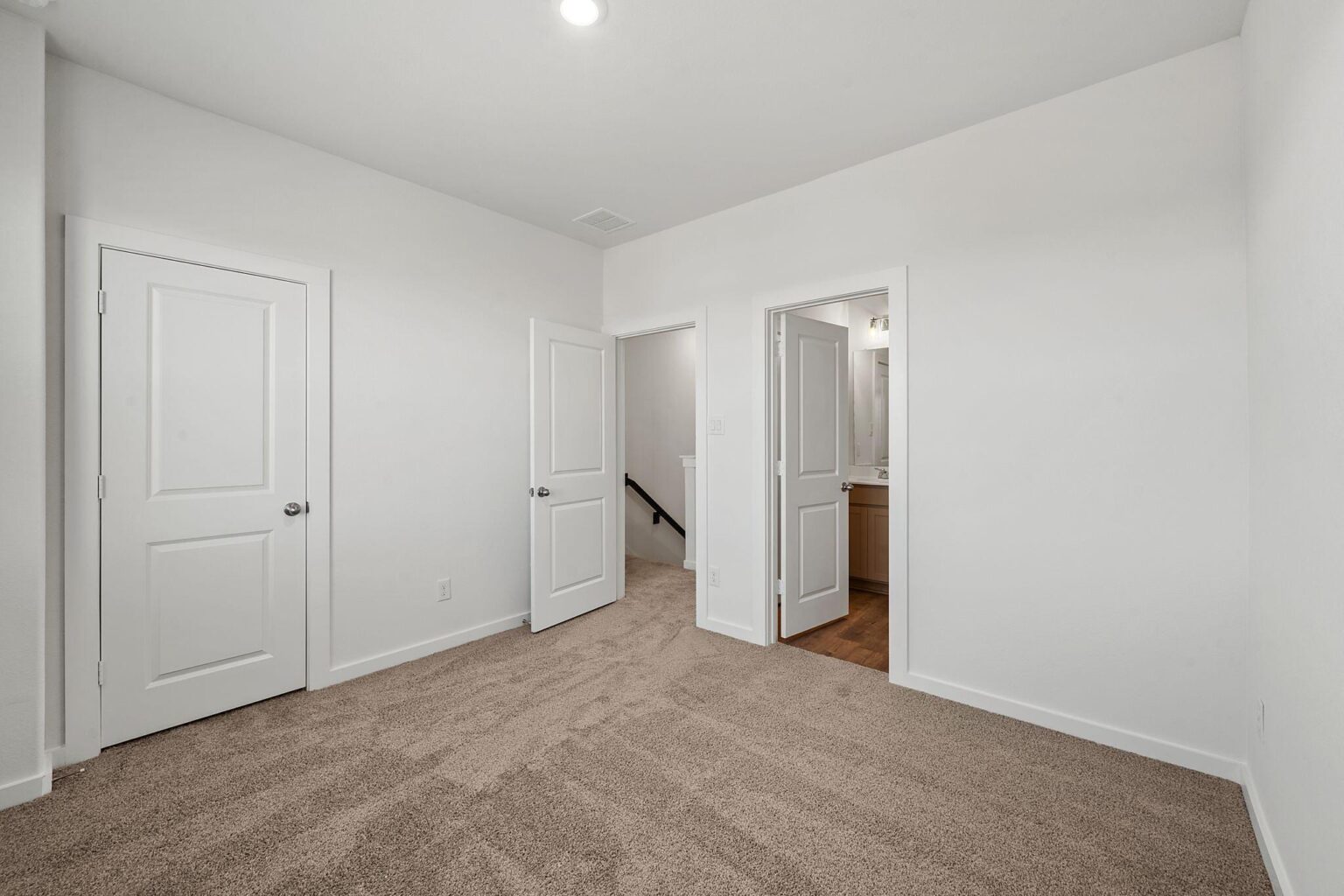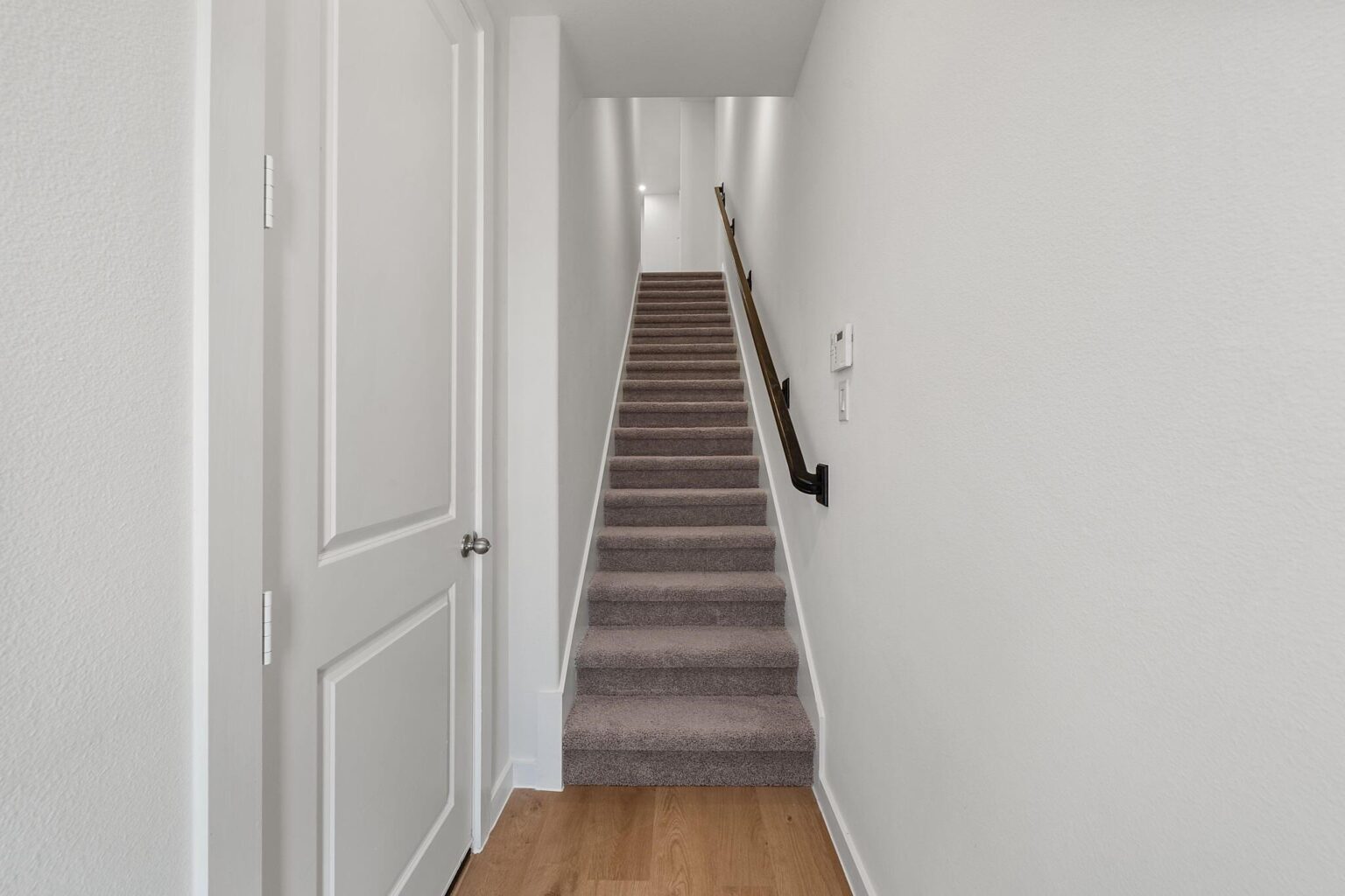 The Cypress floorplan is a smartly designed 1,231 sq. ft. townhome-style layout offering three levels of modern, efficient living. The first floor features a deep two-car garage with extra storage space and a welcoming foyer entry. On the second floor, an open-concept kitchen, living, and dining area creates a bright and flexible space, complete with a private deck for outdoor enjoyment. The top floor includes a well-appointed primary suite with a spacious bath, along with a secondary bedroom featuring its own walk-in closet and adjacent full bath. A conveniently located laundry area adds everyday ease. With its thoughtful layout and contemporary flow, this plan is ideal for those seeking low-maintenance living without sacrificing style or comfort.