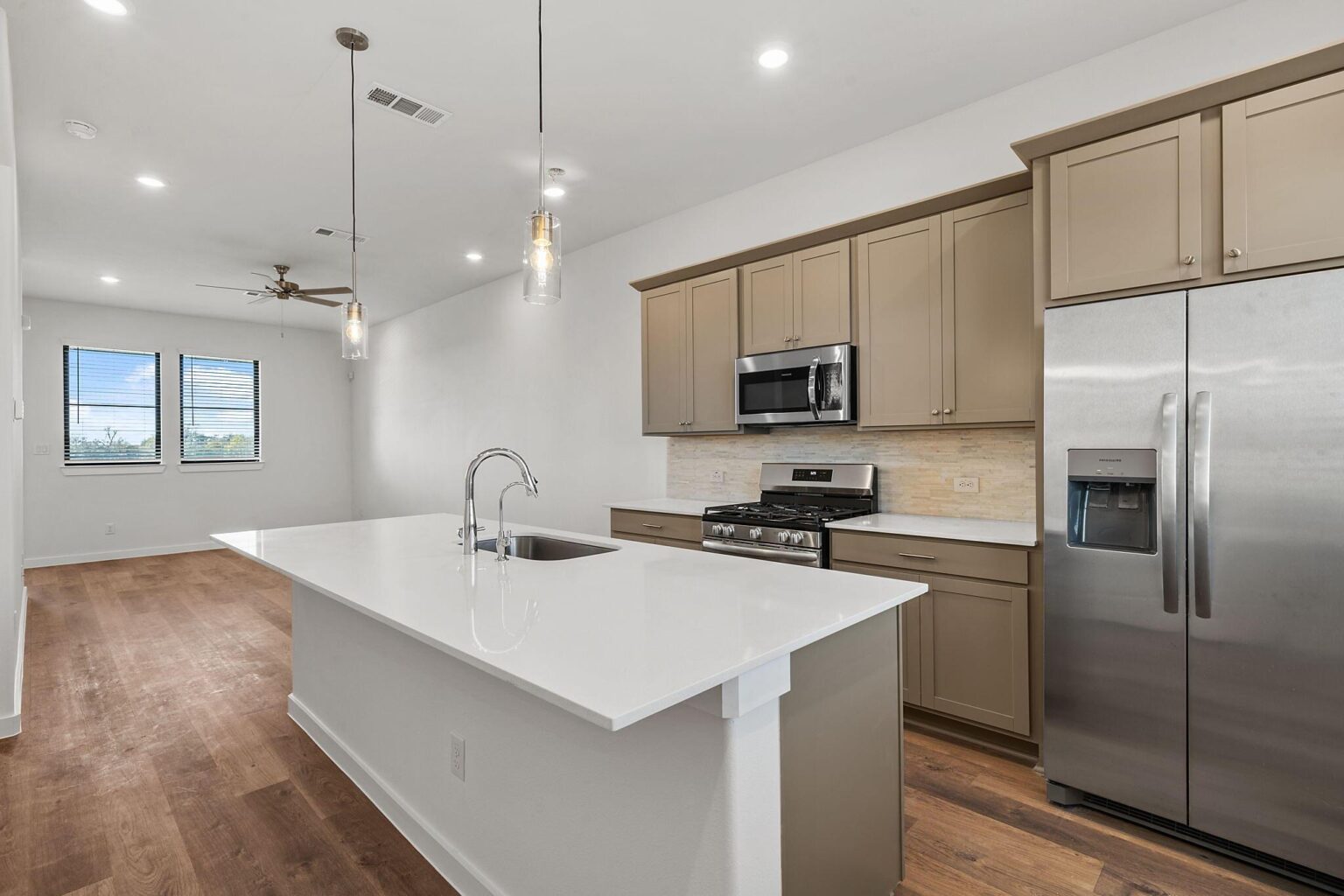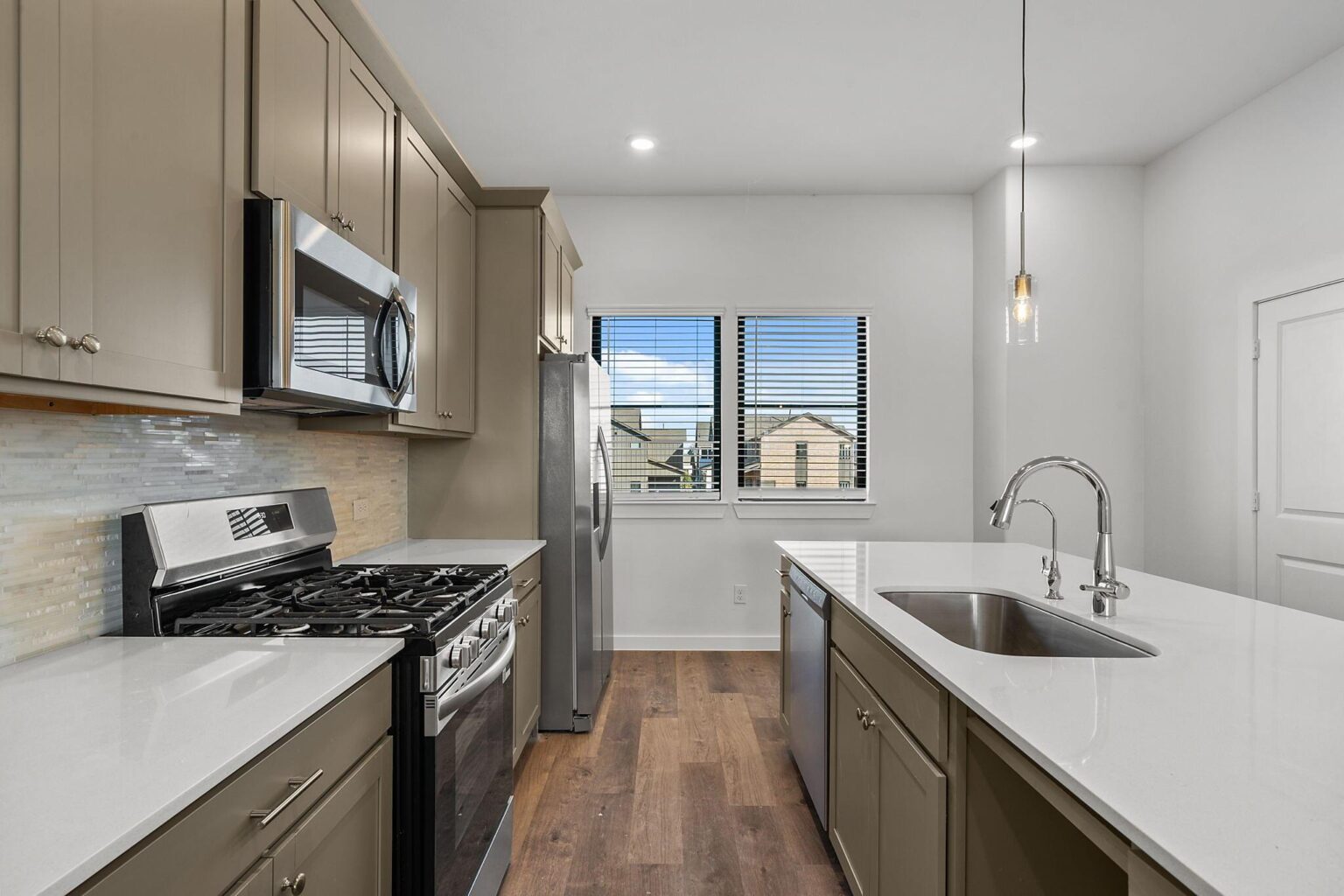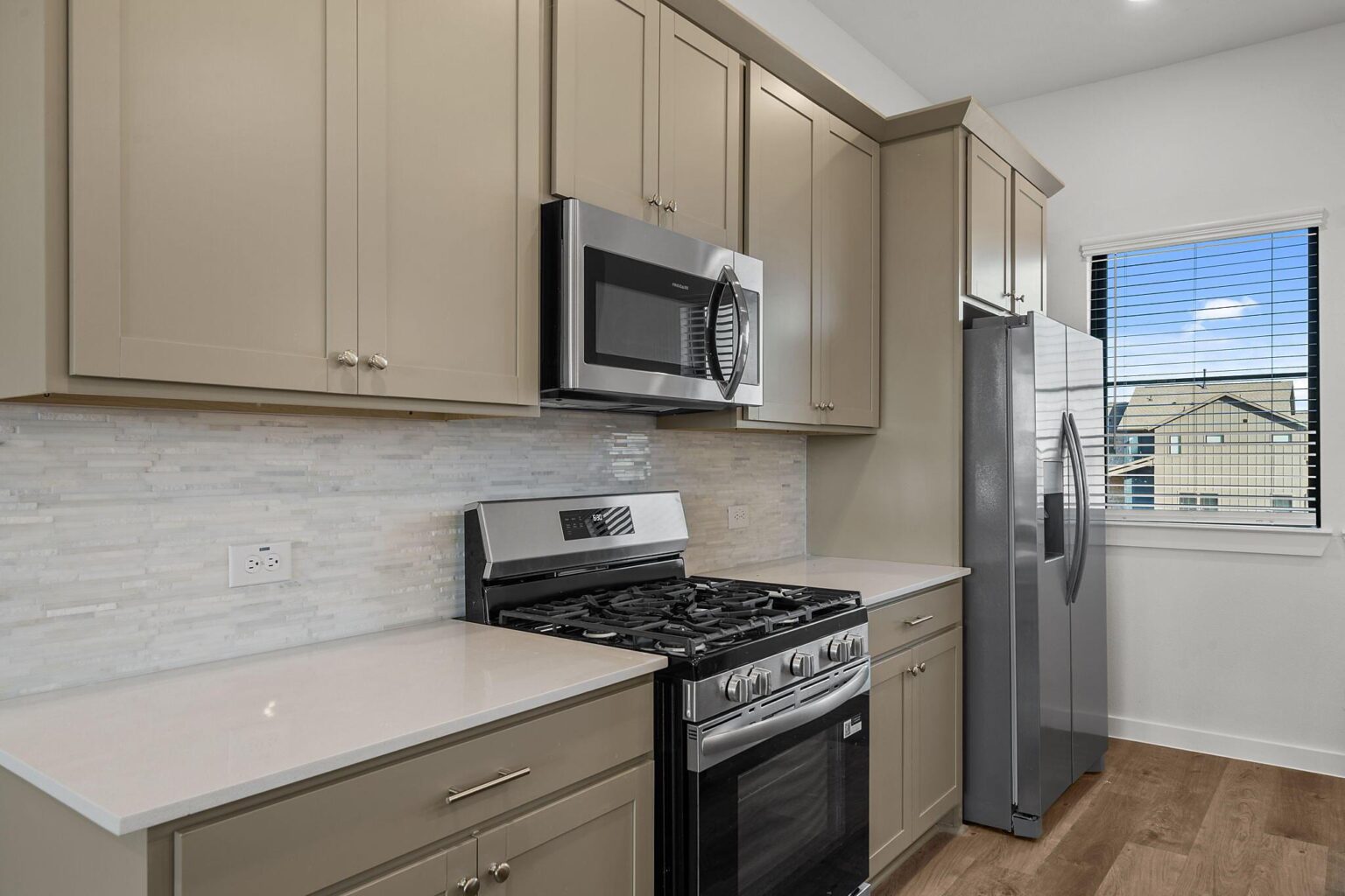 The Cypress floorplan is a smartly designed 1,231 sq. ft. townhome-style layout offering three levels of modern, efficient living. The first floor features a deep two-car garage with extra storage space and a welcoming foyer entry. On the second floor, an open-concept kitchen, living, and dining area creates a bright and flexible space, complete with a private deck for outdoor enjoyment. The top floor includes a well-appointed primary suite with a spacious bath, along with a secondary bedroom featuring its own walk-in closet and adjacent full bath. A conveniently located laundry area adds everyday ease. With its thoughtful layout and contemporary flow, this plan is ideal for those seeking low-maintenance living without sacrificing style or comfort.