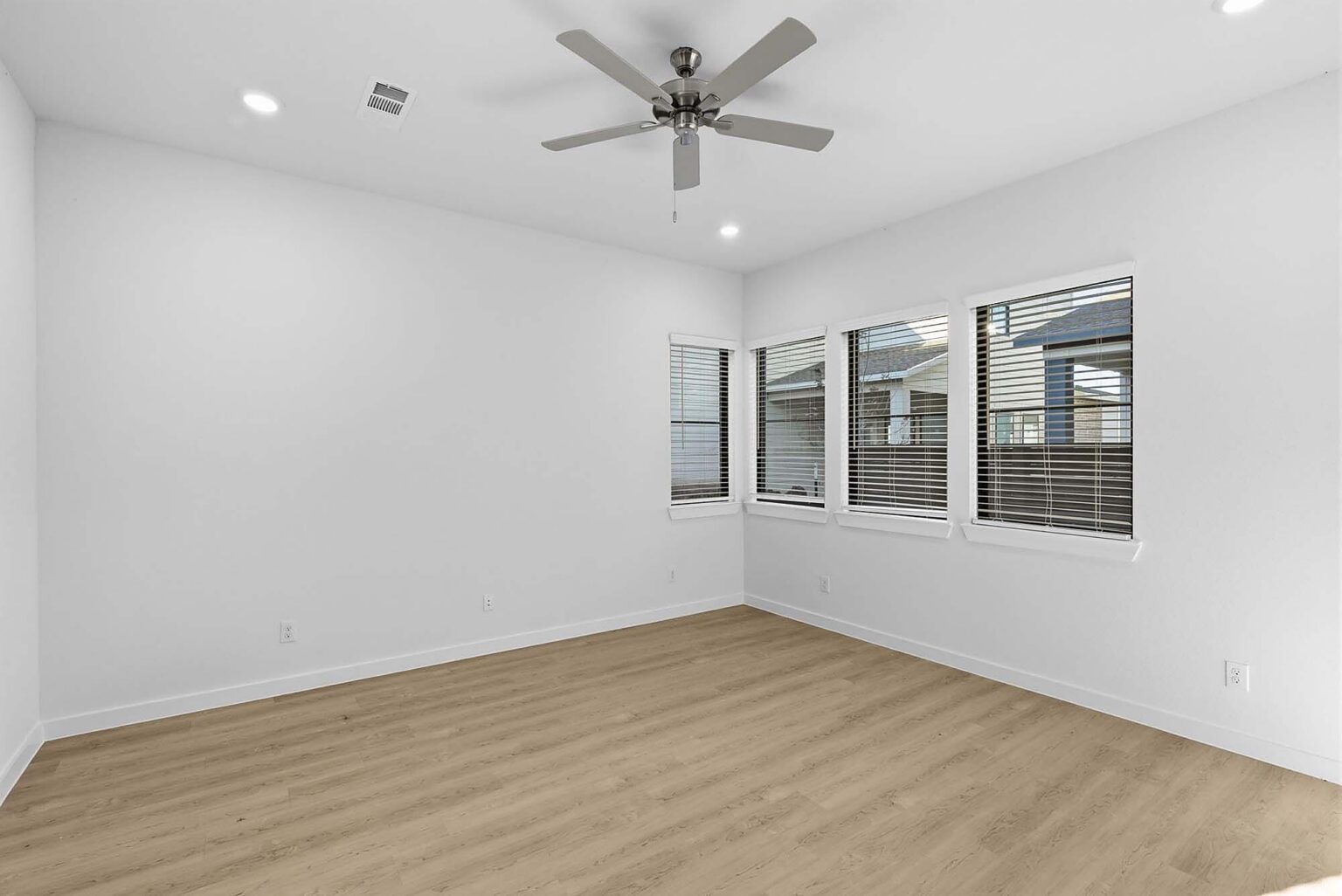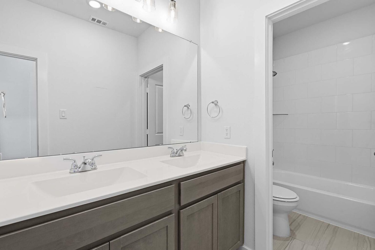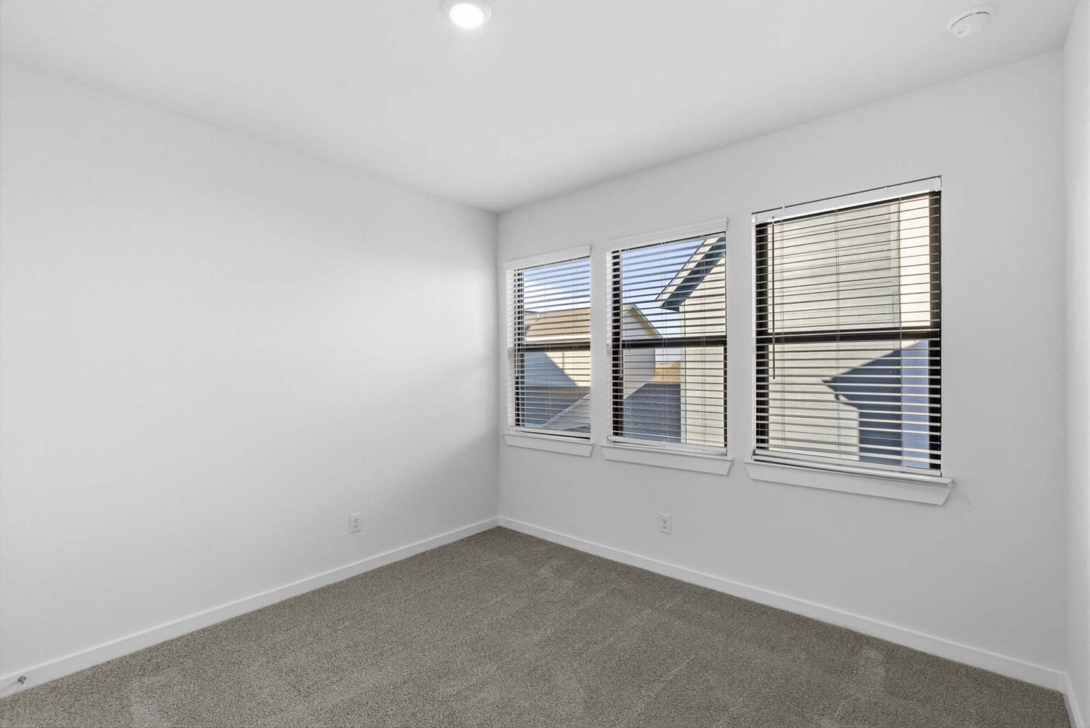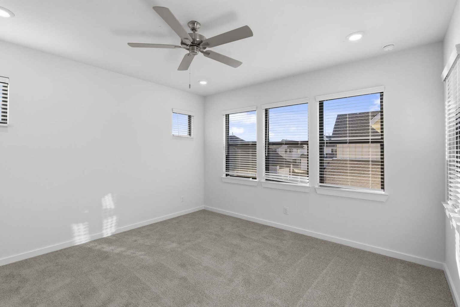 The Ember showcases 2,218 square feet of smart, stylish living with four bedrooms, three full bathrooms, and plenty of flexible space across two stories. The main floor features a spacious open-concept kitchen with an oversized island, walk-in pantry, and casual dining area that flows into a bright living room and a covered patio—perfect for entertaining or relaxing outdoors. A first-floor bedroom and full bath offer a convenient guest suite or home office setup tucked privately away. Upstairs, a central loft connects the remaining three bedrooms, including a luxurious primary suite with a massive walk-in closet and spa-inspired bath. A full-size laundry room and two additional secondary bedrooms with easy access to a shared bath round out the upper level. Elegant finishes like quartz countertops, vinyl plank flooring, LED lighting, and energy-efficient systems are all included, delivering everyday comfort and upscale living in the Indigo Clusters community