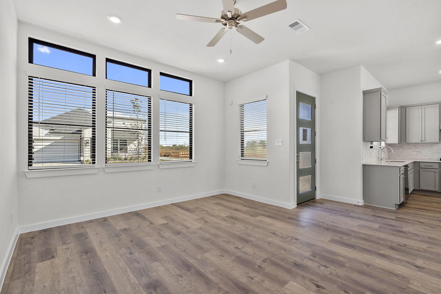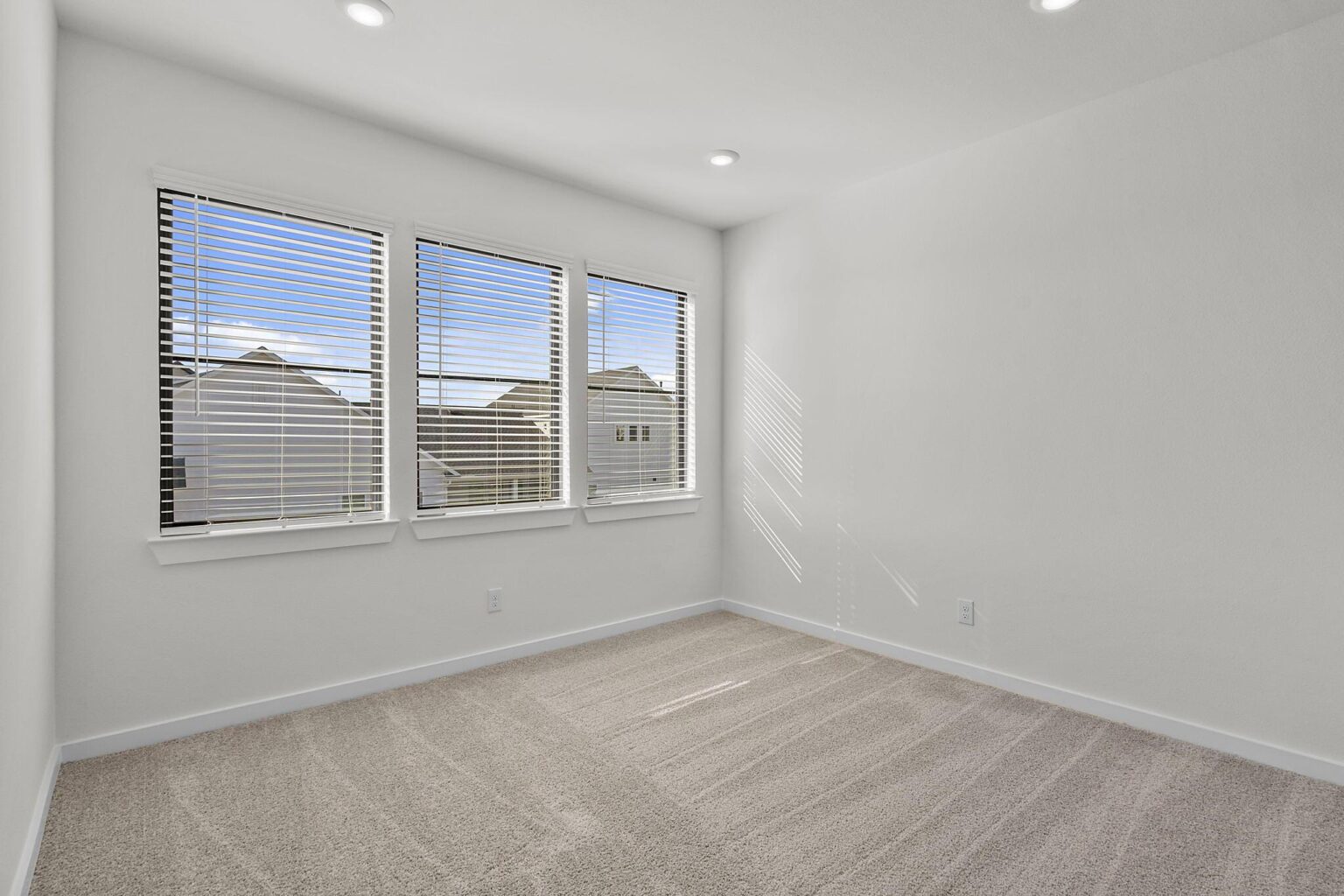The Emerald Duet floorplan is a well-balanced two-story home offering 1,711 sq. ft. of thoughtfully planned living space. The main floor features an open-concept kitchen, casual dining, and living area that flows effortlessly to a covered patio, ideal for indoor-outdoor living. A first-floor secondary bedroom with a nearby full bath adds flexibility for guests or a private workspace, while the two-car garage includes convenient pantry and storage access. Upstairs, the primary suite provides a spacious retreat with a walk-in closet and a well-appointed en-suite bath. An additional bedroom, full bath, and centrally located laundry room complete the second level. Designed for efficiency and comfort, this plan delivers modern living with smart space utilization and everyday convenience.