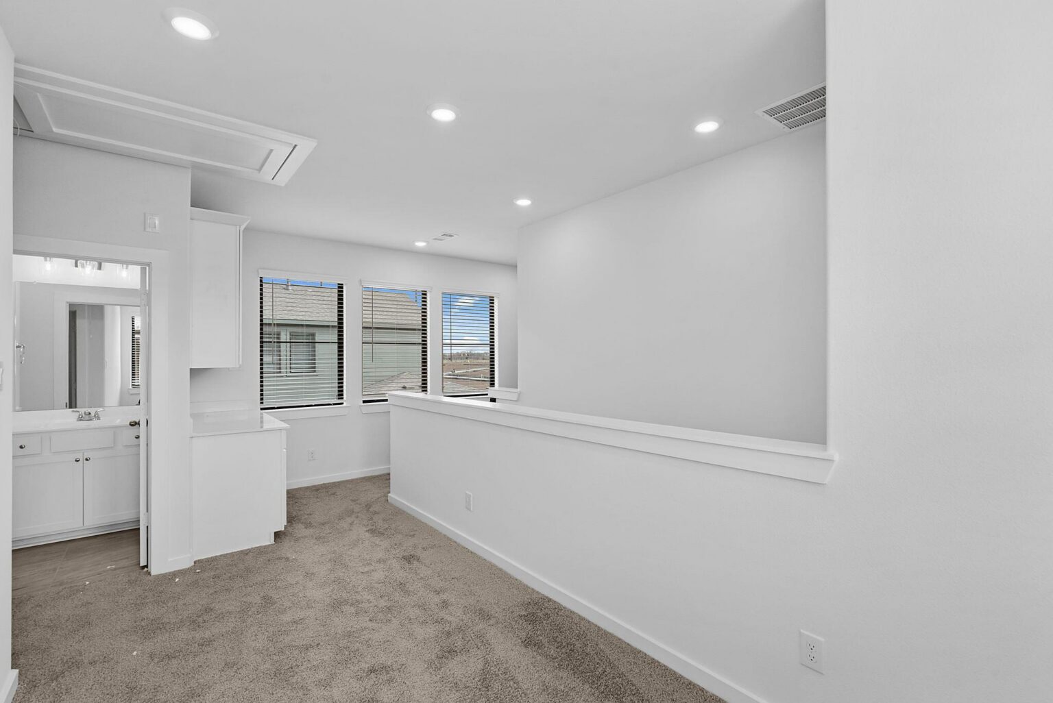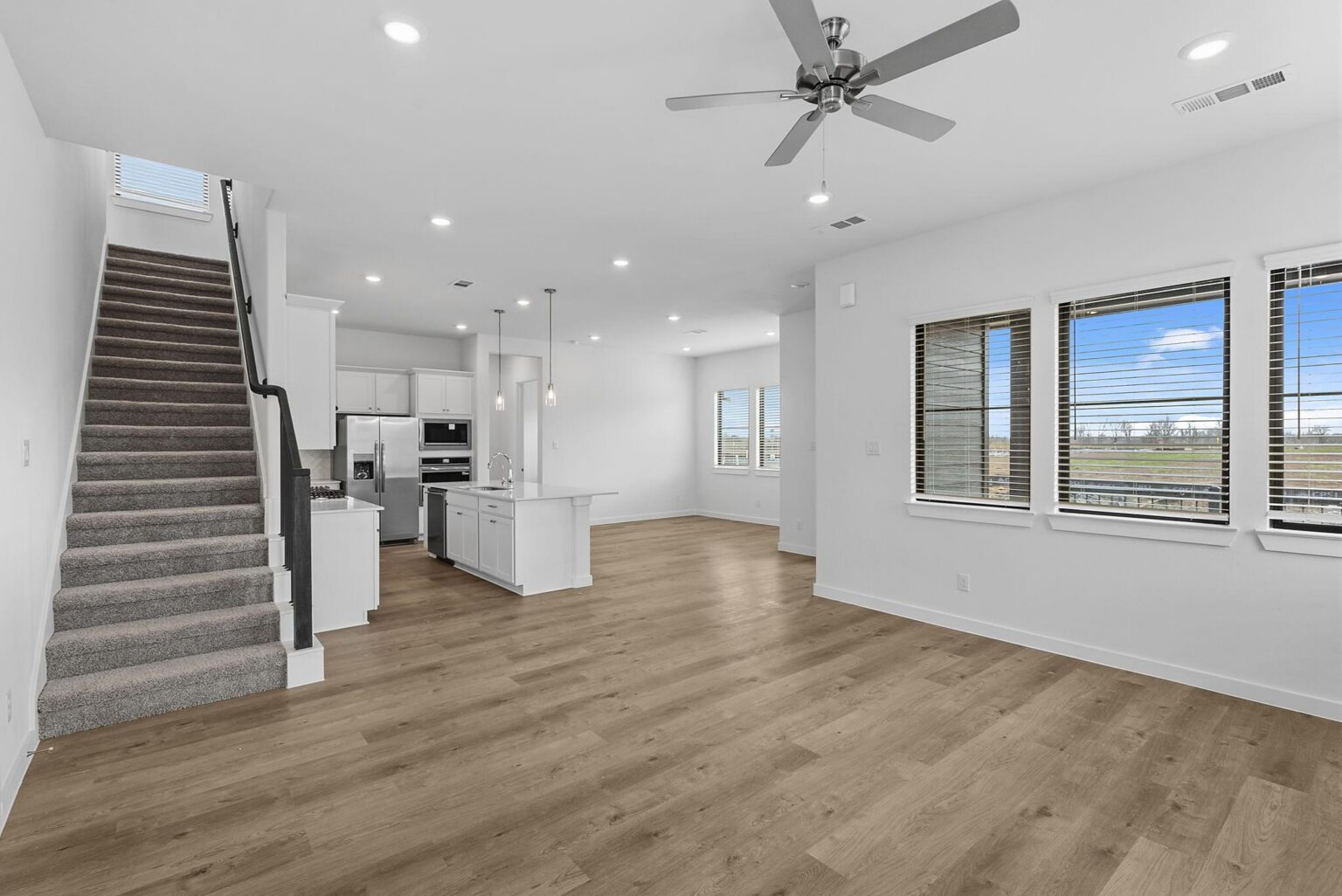 The Heron floorplan blends function and comfort across 1,970 square feet, featuring three bedrooms, three full bathrooms, and an open-concept layout ideal for everyday living. The main floor centers around a spacious kitchen with a central island and overlooks both the dining and living areas, seamlessly connecting to a covered patio perfect for outdoor entertaining. A full bedroom and bathroom on the main level offer flexible living for guests or multi-generational households. Upstairs, a versatile loft and convenient coffee bar sit between the two remaining bedrooms, including a private primary suite with dual walk-in closets and a spa-style bathroom. The design also includes a dedicated laundry room and a two-car garage with smart WiFi-enabled access. Finishes like quartz countertops, luxury vinyl plank flooring, and LED lighting reflect the quality craftsmanship showcased in the Indigo Clusters community.