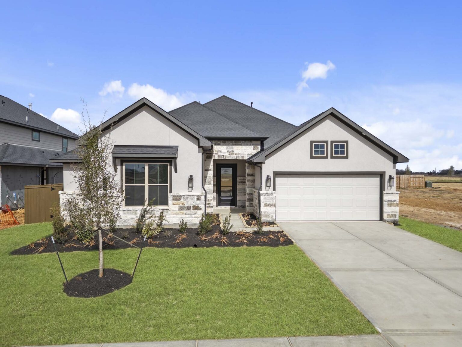 The Breton floor plan delivers 2,670 sq. ft. of versatile living space with three bedrooms, two-and-a-half baths, and a three-car garage. Its open-concept design features a spacious kitchen with a walk-in pantry, a casual dining area, and a large living room that opens to the covered patio for seamless indoor-outdoor living. The private primary suite includes a spa-like bath with dual sinks, a soaking tub, and a generous walk-in closet. A dedicated study near the foyer provides the perfect space for a home office or flex room. Secondary bedrooms with walk-in closets share a full bath, making this layout ideal for families or hosting guests. Thoughtfully designed with both style and functionality, the Breton blends everyday convenience with modern comfort.